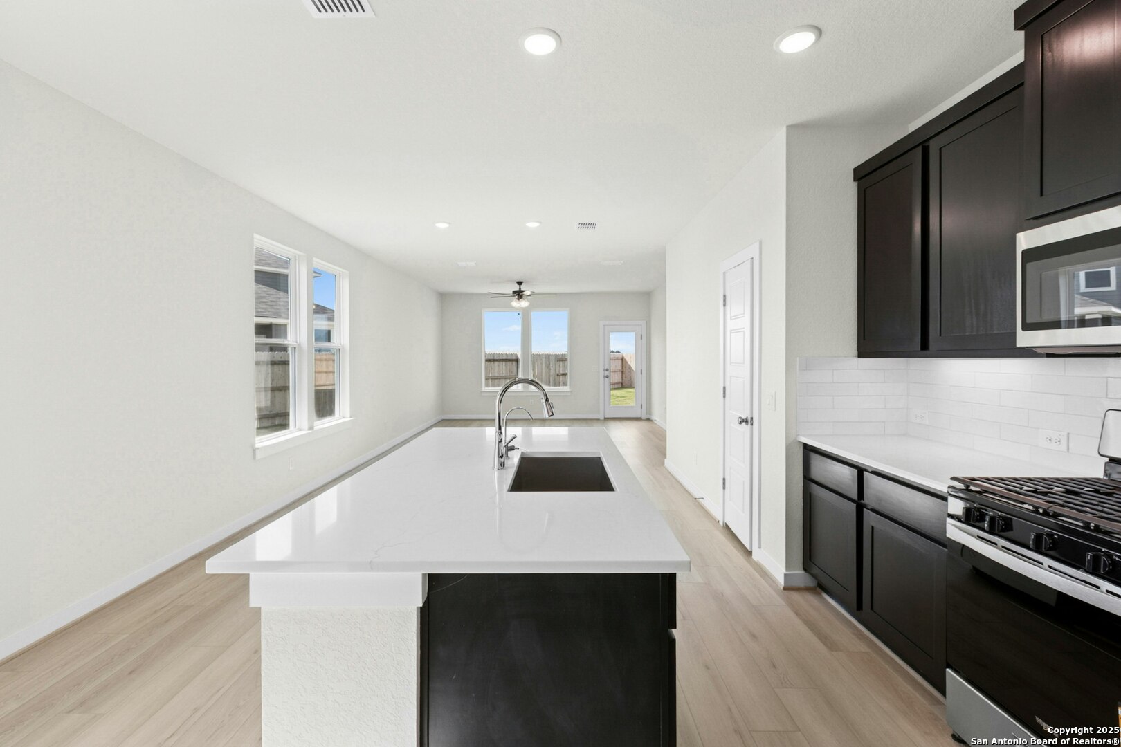 ZERO DOWN USDA FINANCING AVAILABLE!! Over $26,000 in upgrades added to this fantastic South facing Inverness SF one story home with a covered patio for outdoor relaxation. There are 3 bedrooms and 2 bathrooms. The kitchen features stainless appliances, a great island for entertaining, space for bar stools and easy breakfast seating, and wide open to the spacious family room and dining area. Primary suite features a walk in shower/ large walk in closet, and dual undermount sinks. Irrigation system in front and sides. Full privacy fence at rear.