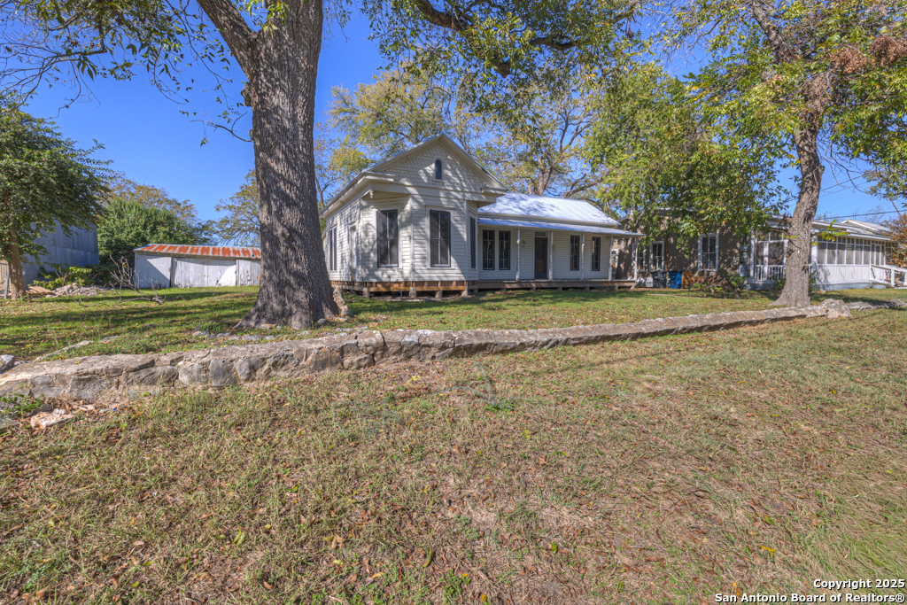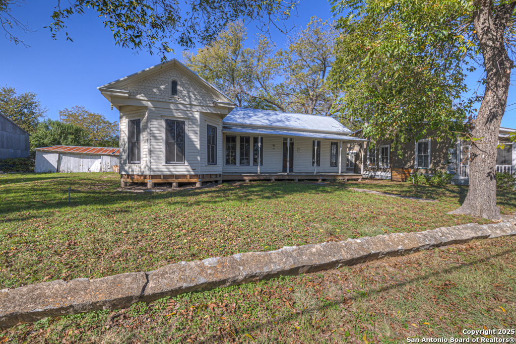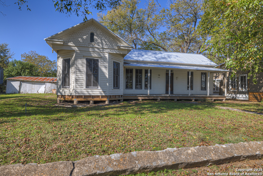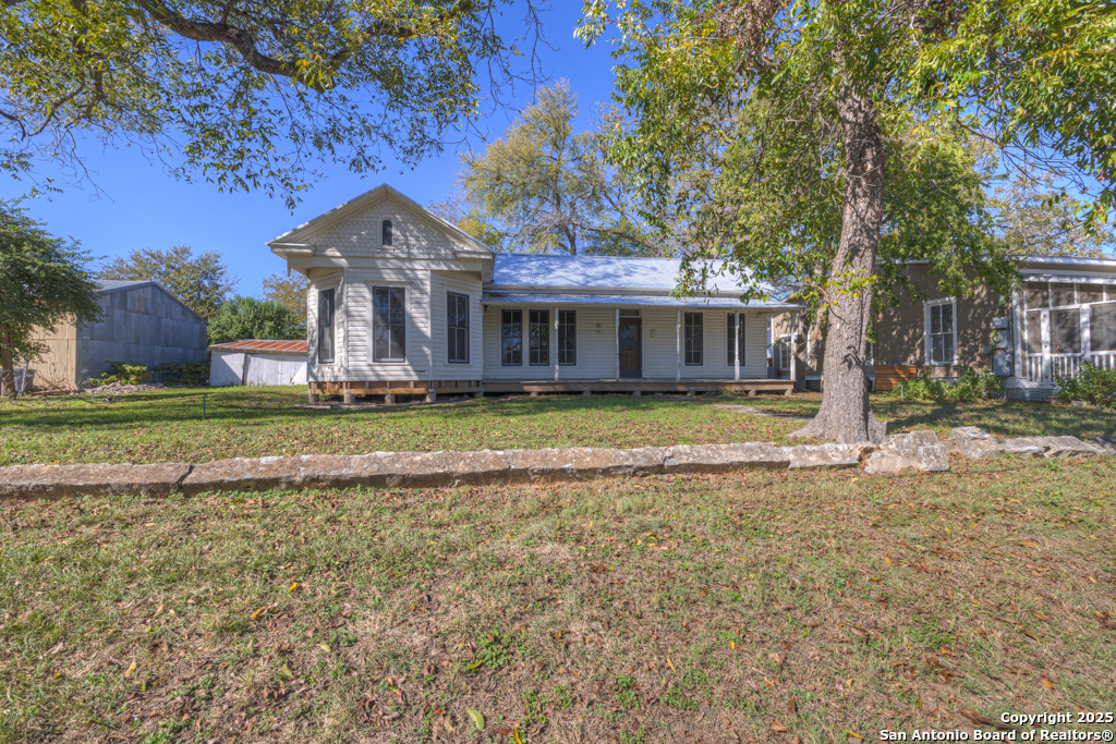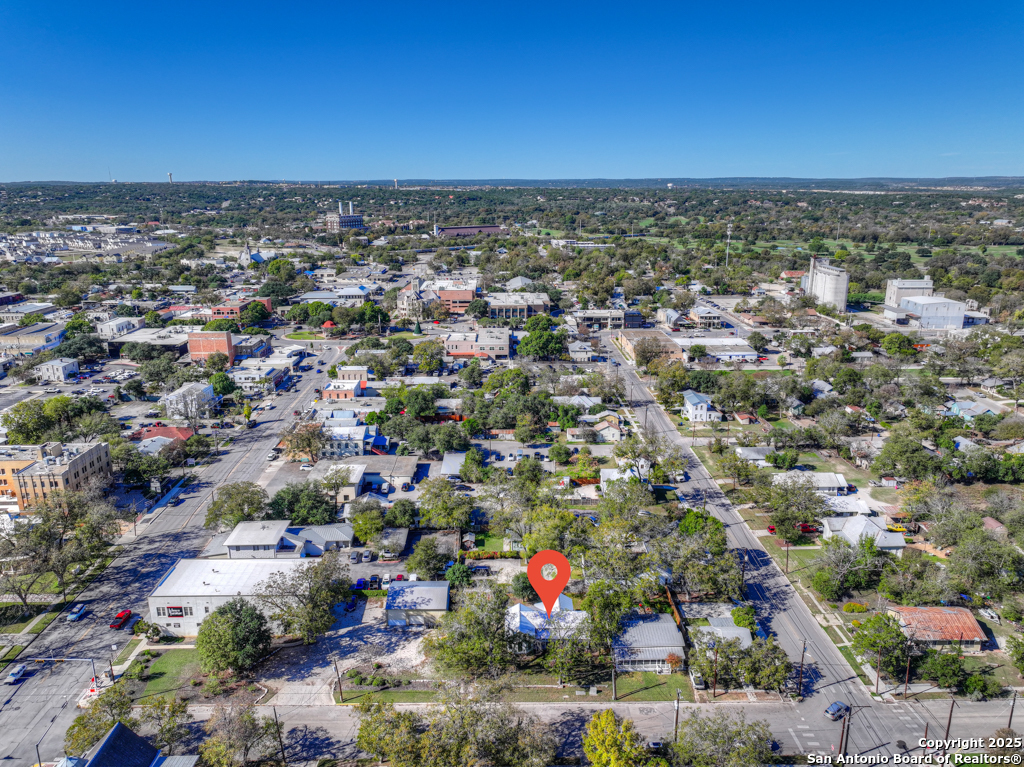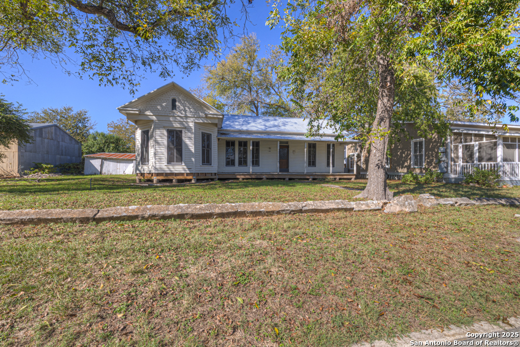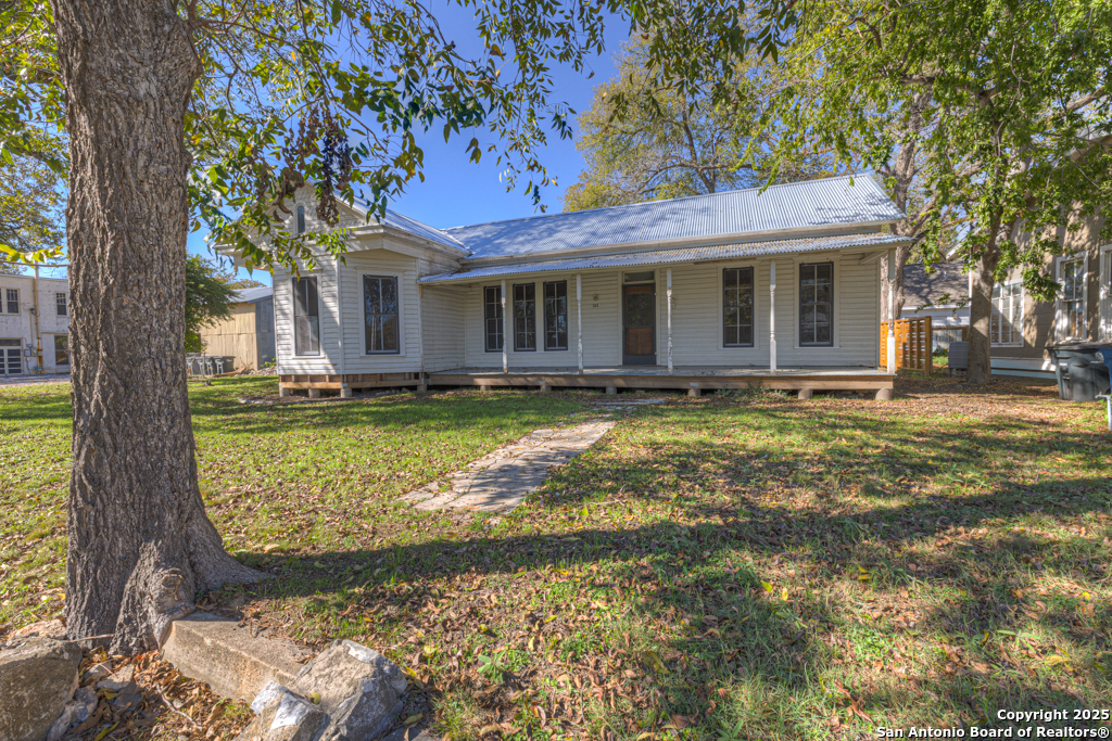 This Commercially C-2 zoned property is located on Coll Street and just one property off of Seguin Avenue, one of New Braunfels main arterial roads. This property is located in a City classified Historic District where many of the other neighboring properties are also designated and are being used for Commercial purposes (primarily small businesses and offices). This specific .21-acre lot and home was designated on May 9, 2011, as the Stock Historic District. There are a total of 5 lots located in the specific historic district. The building structure was originally used as a home that was built in 1907. The layout of the building offers a welcoming and uniquely large covered front porch. Entering through the front door, you step into a large foyer area that could serve as a reception area. Located on both sides of the entry area are a total of 5 rooms that are larger than average size. The entry doors to these offices have the original doors and frames accented with transom overhead windows. There are two rooms that could serve as a kitchen/kitchenette and a utility/breakroom. In addition to these rooms are two areas that could serve as a restroom/s. The exterior windows are original and have been refurbished with the counterweights working well. Besides the entry door, there is a door at the backside of the building and another door on the side of the structure closest to the driveway. The interior of the building is composed of original shiplap wood. The foundation of this building has been reconstructed with recently installed cement piers and the building has been leveled. The roof was also recently installed with a new metal roof. The condition of the building is in remarkably good condition. The owner has prepared the building so that the next owner can design and finish out the electrical, plumbing and interior finish out for their specific needs. This is an opportunity to own a historic property that is located in the heart of New Braunfels and perfect for many business uses.