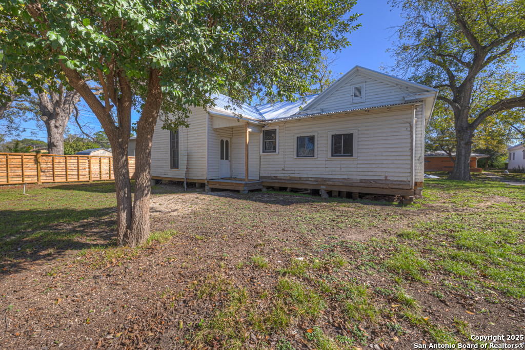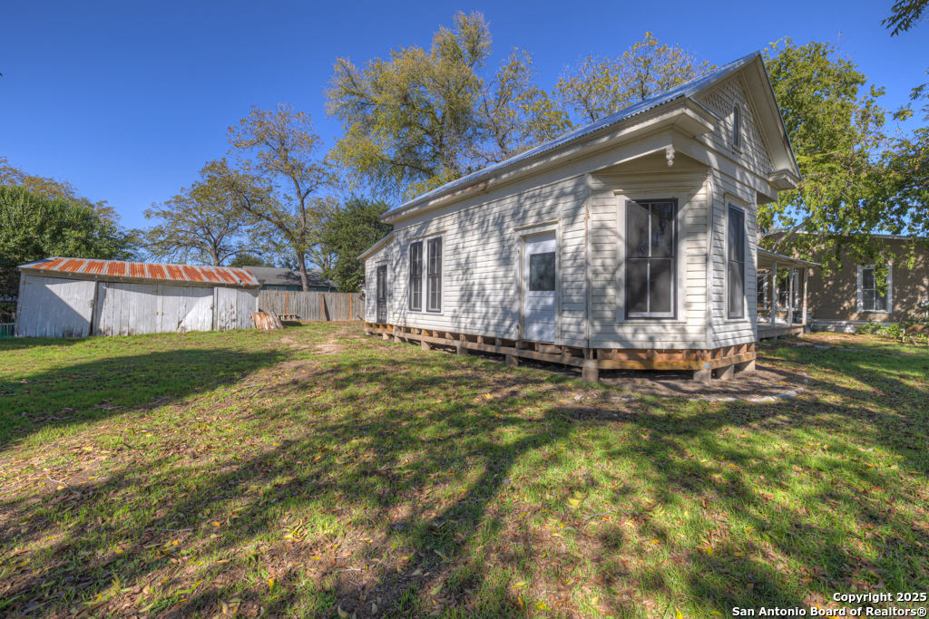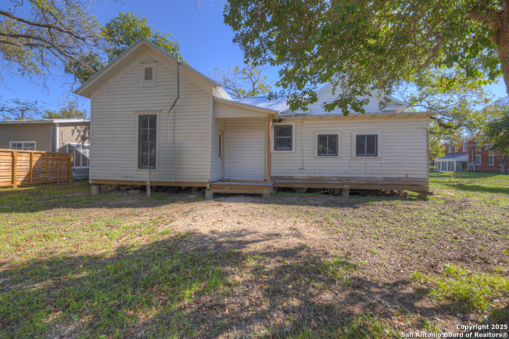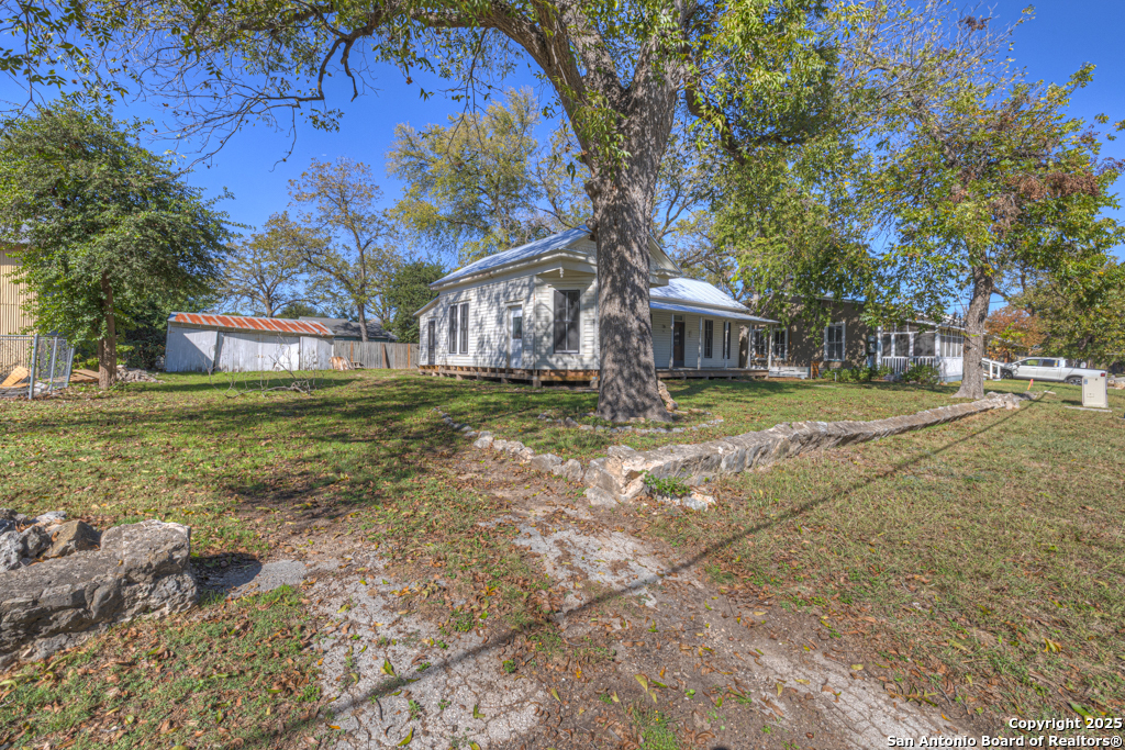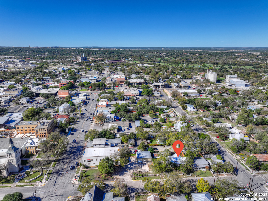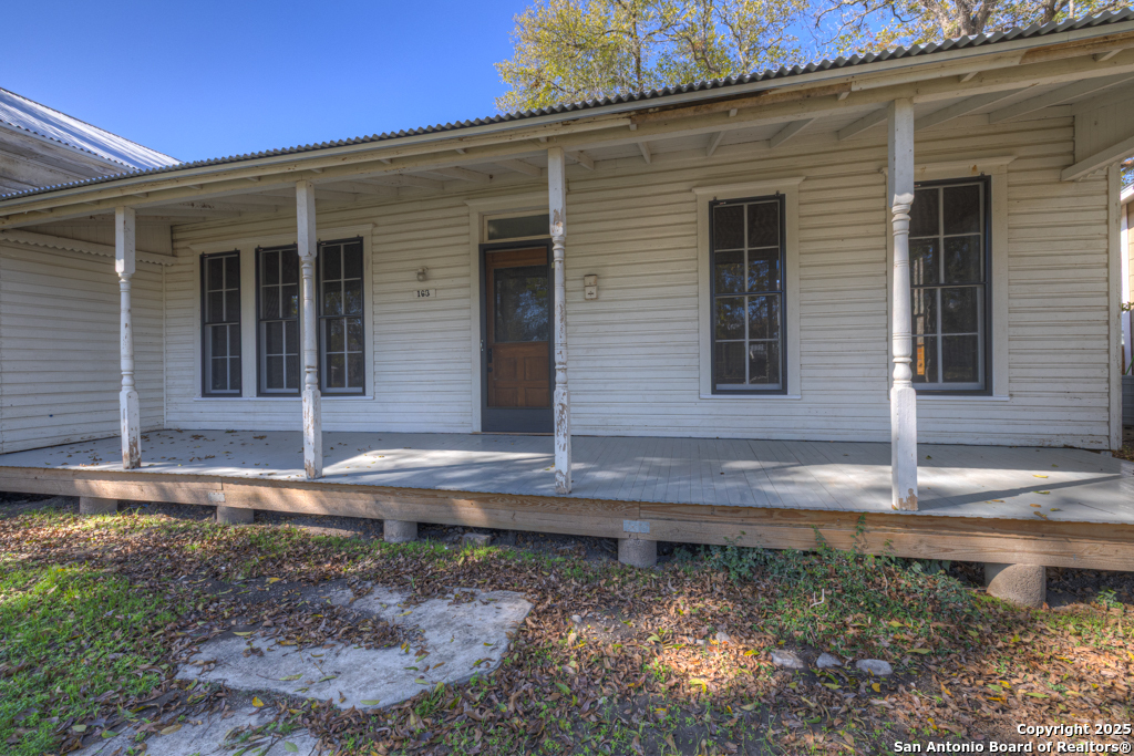 This Commercially C-2 zoned property is located on Coll Street and just one property off of Seguin Avenue, one of New Braunfels main arterial roads. This property is located in a City classified Historic District where many of the other neighboring properties are also designated and are being used for Commercial purposes (primarily small businesses and offices). This specific .21-acre lot and home was designated on May 9, 2011, as the Stock Historic District. There are a total of 5 lots located in the specific historic district. The building structure was originally used as a home that was built in 1907. The layout of the building offers a welcoming and uniquely large covered front porch. Entering through the front door, you step into a large foyer area that could serve as a reception area. Located on both sides of the entry area are a total of 5 rooms that are larger than average size. The entry doors to these offices have the original doors and frames accented with transom overhead windows. There are two rooms that could serve as a kitchen/kitchenette and a utility/breakroom. In addition to these rooms are two areas that could serve as a restroom/s. The exterior windows are original and have been refurbished with the counterweights working well. Besides the entry door, there is a door at the backside of the building and another door on the side of the structure closest to the driveway. The interior of the building is composed of original shiplap wood. The foundation of this building has been reconstructed with recently installed cement piers and the building has been leveled. The roof was also recently installed with a new metal roof. The condition of the building is in remarkably good condition. The owner has prepared the building so that the next owner can design and finish out the electrical, plumbing and interior finish out for their specific needs. This is an opportunity to own a historic property that is located in the heart of New Braunfels and perfect for many business uses.