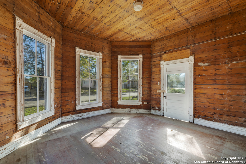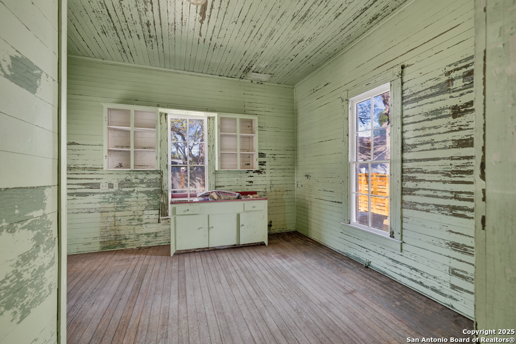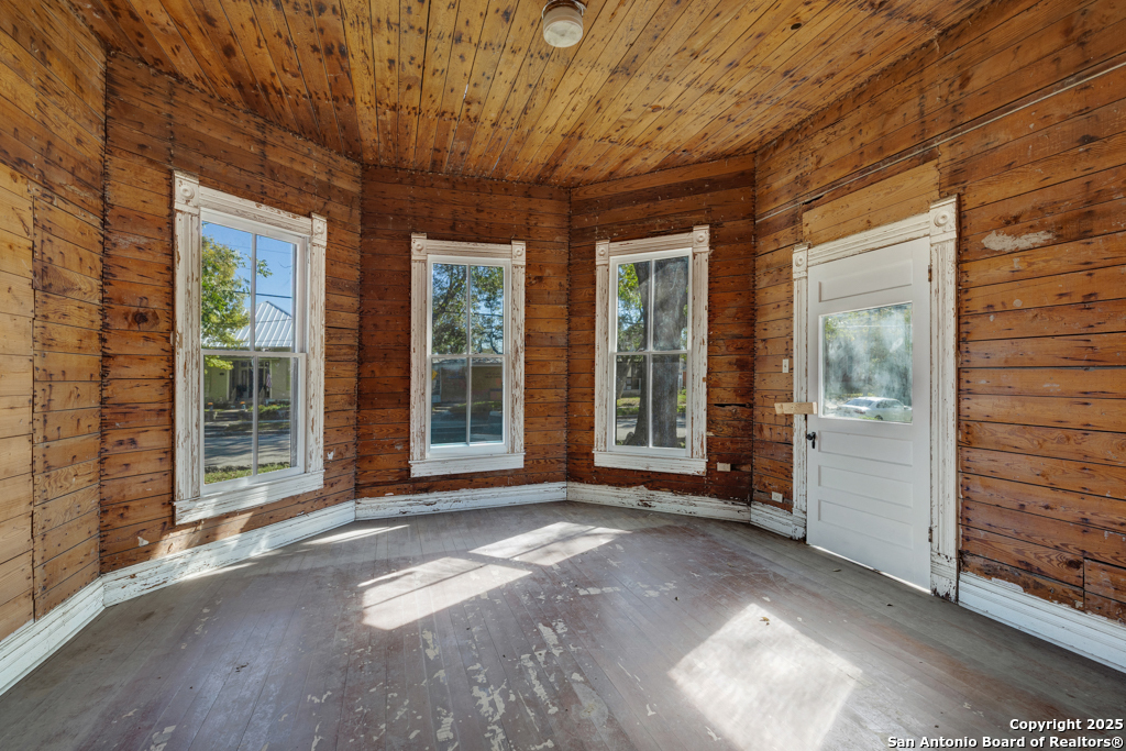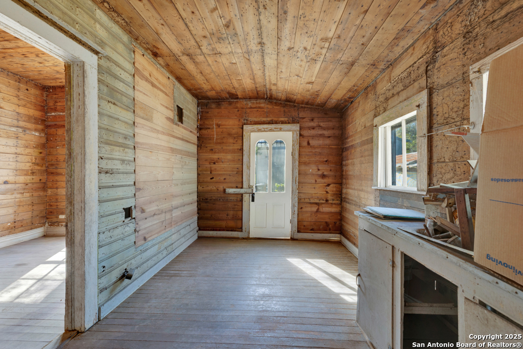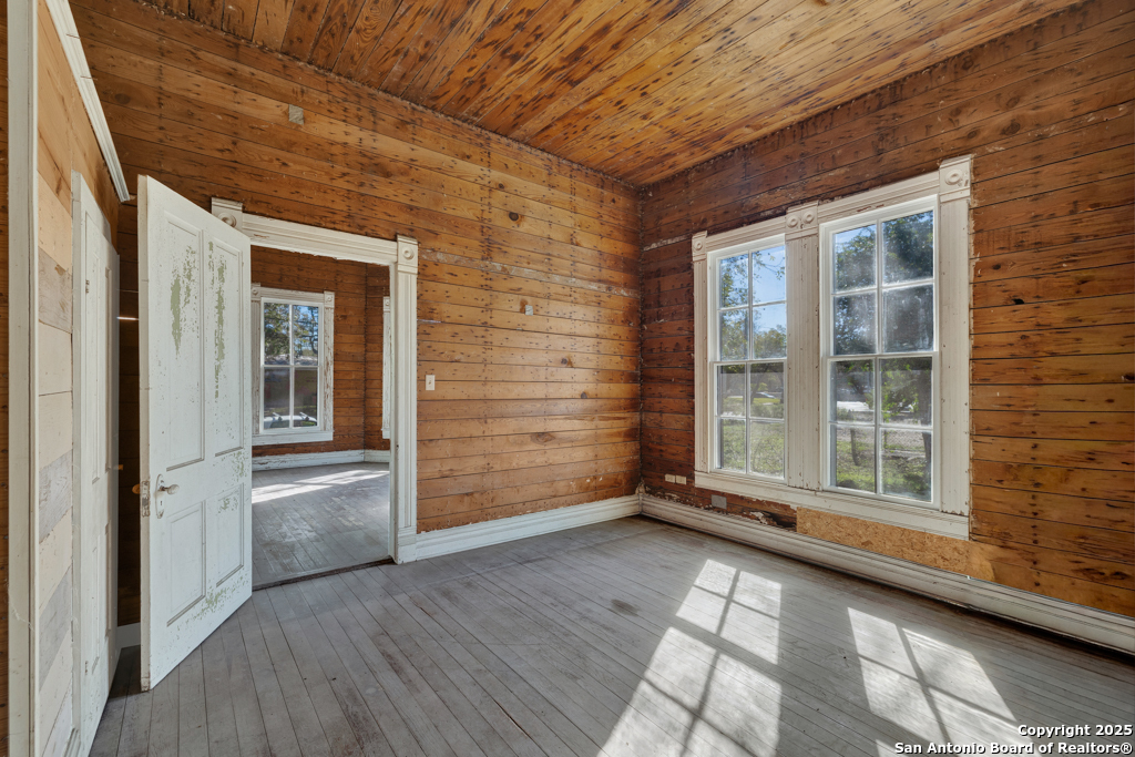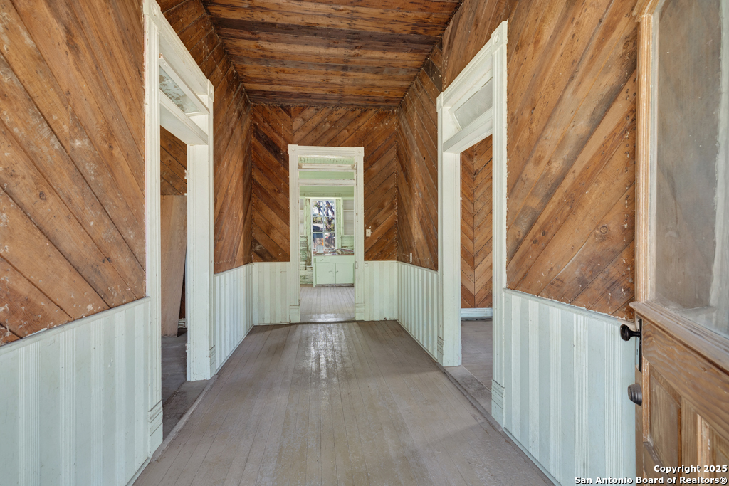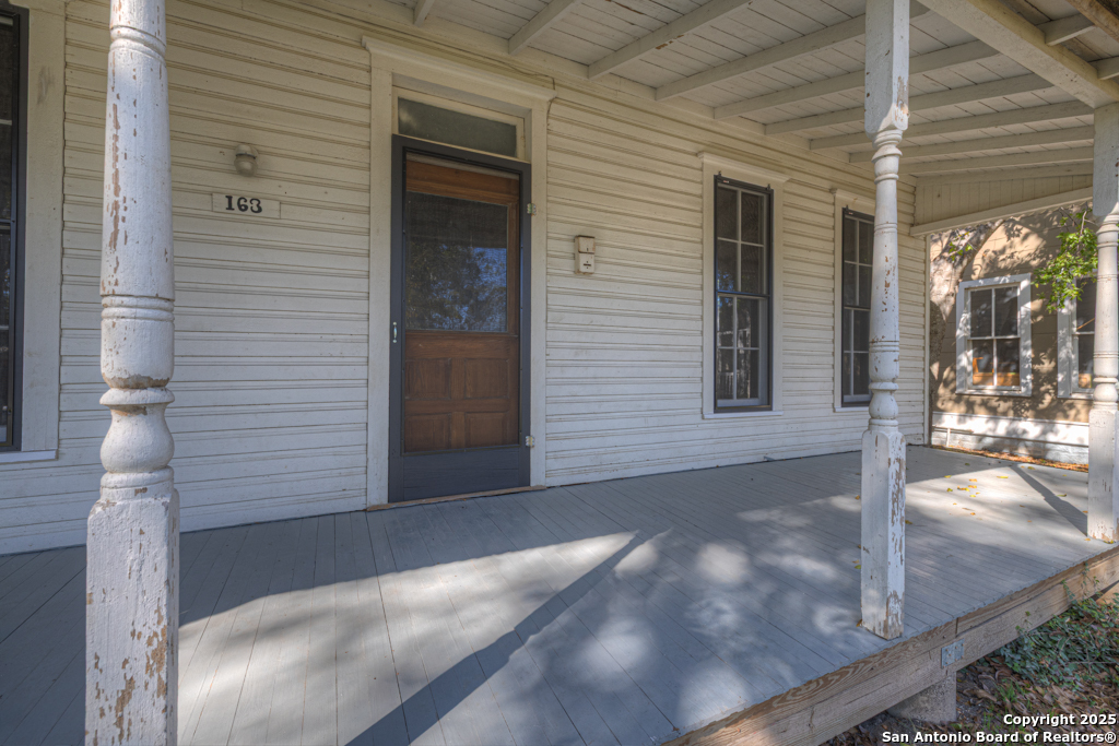 This Commercially C-2 zoned property is located on Coll Street and just one property off of Seguin Avenue, one of New Braunfels main arterial roads. This property is located in a City classified Historic District where many of the other neighboring properties are also designated and are being used for Commercial purposes (primarily small businesses and offices). This specific .21-acre lot and home was designated on May 9, 2011, as the Stock Historic District. There are a total of 5 lots located in the specific historic district. The building structure was originally used as a home that was built in 1907. The layout of the building offers a welcoming and uniquely large covered front porch. Entering through the front door, you step into a large foyer area that could serve as a reception area. Located on both sides of the entry area are a total of 5 rooms that are larger than average size. The entry doors to these offices have the original doors and frames accented with transom overhead windows. There are two rooms that could serve as a kitchen/kitchenette and a utility/breakroom. In addition to these rooms are two areas that could serve as a restroom/s. The exterior windows are original and have been refurbished with the counterweights working well. Besides the entry door, there is a door at the backside of the building and another door on the side of the structure closest to the driveway. The interior of the building is composed of original shiplap wood. The foundation of this building has been reconstructed with recently installed cement piers and the building has been leveled. The roof was also recently installed with a new metal roof. The condition of the building is in remarkably good condition. The owner has prepared the building so that the next owner can design and finish out the electrical, plumbing and interior finish out for their specific needs. This is an opportunity to own a historic property that is located in the heart of New Braunfels and perfect for many business uses.