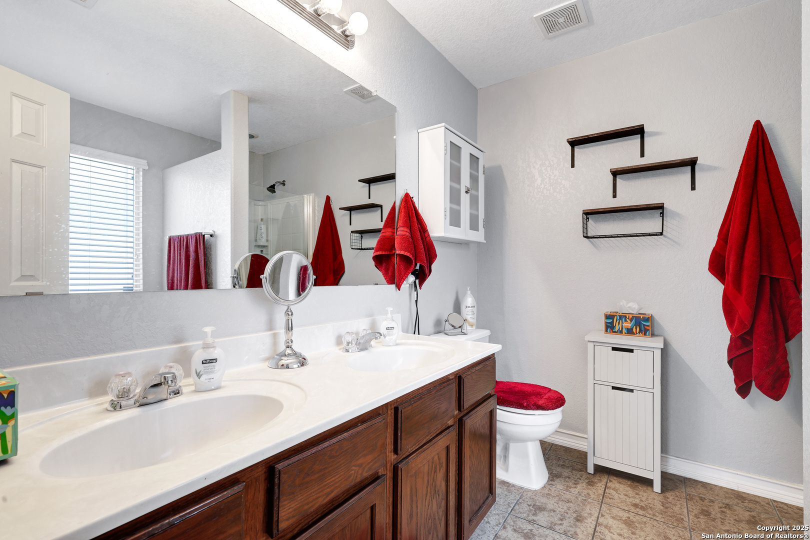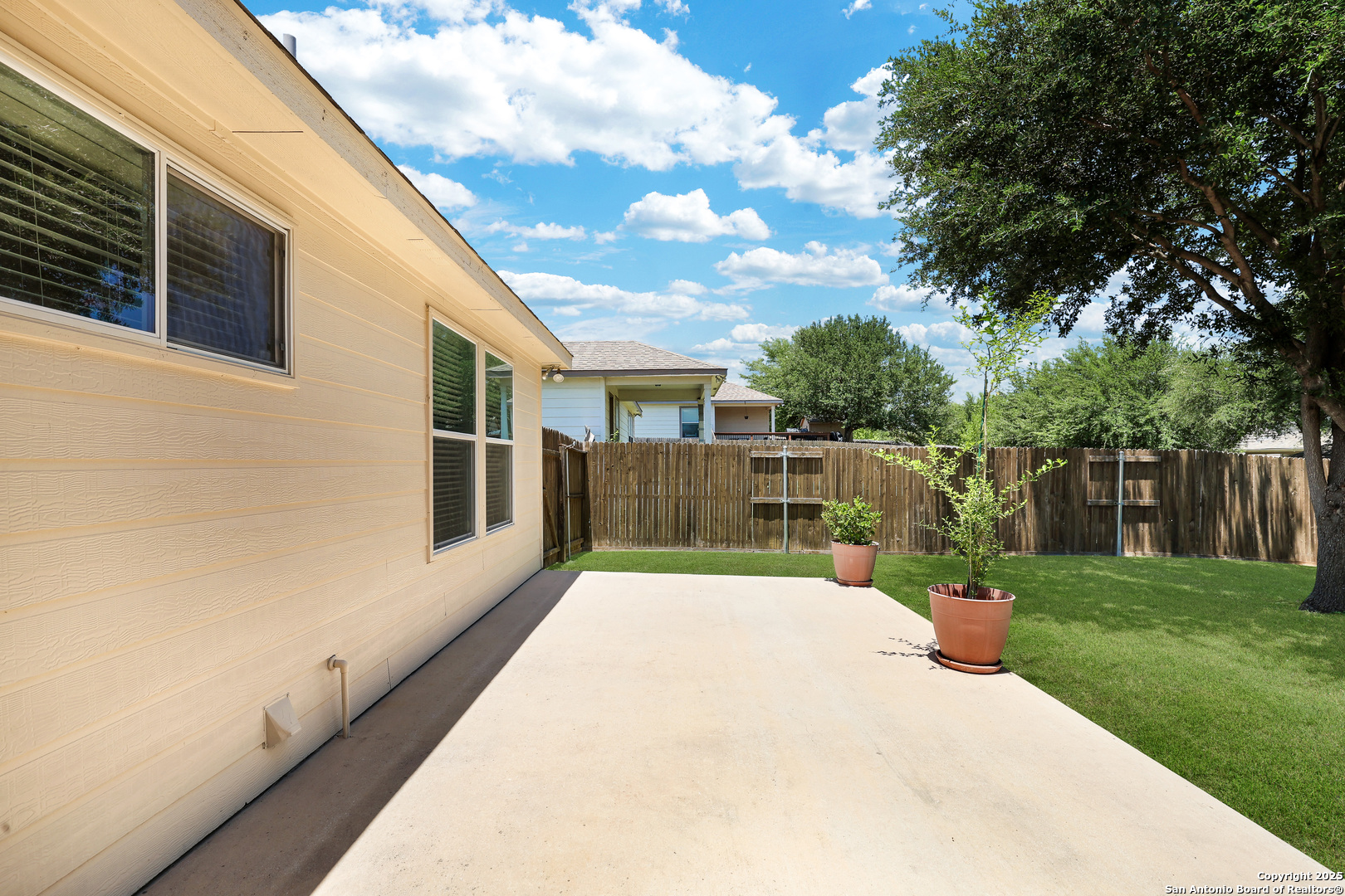 Welcome to Rosebud Vista in Retama Springs! This single-story home is move-in ready and features a spacious, open layout. The living room flows seamlessly into the dining and kitchen areas, perfect for both everyday living and entertaining. The oversized master bedroom offers comfort and privacy, while two additional well-sized bedrooms provide plenty of space for family, guests, or a home office. Step outside to a west-facing backyard with mature trees and an extended patio,ideal for enjoying evenings outdoors. Conveniently located near Randolph AFB, Ft. Sam Houston, IKEA, The Forum, and a variety of shopping and dining options.