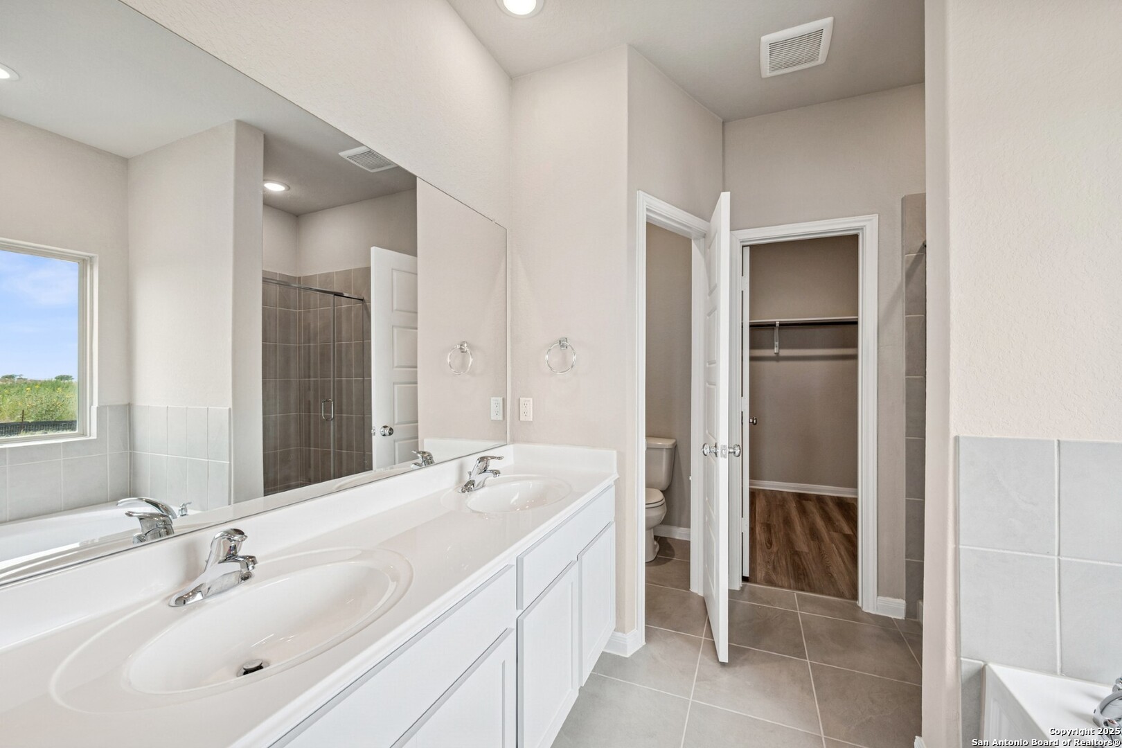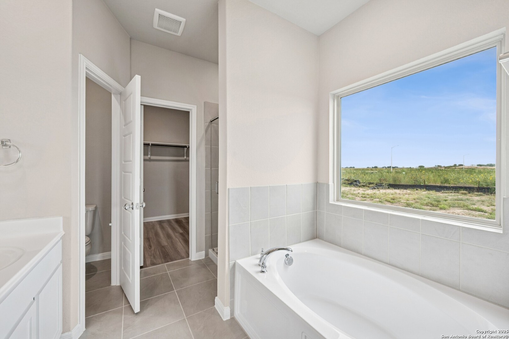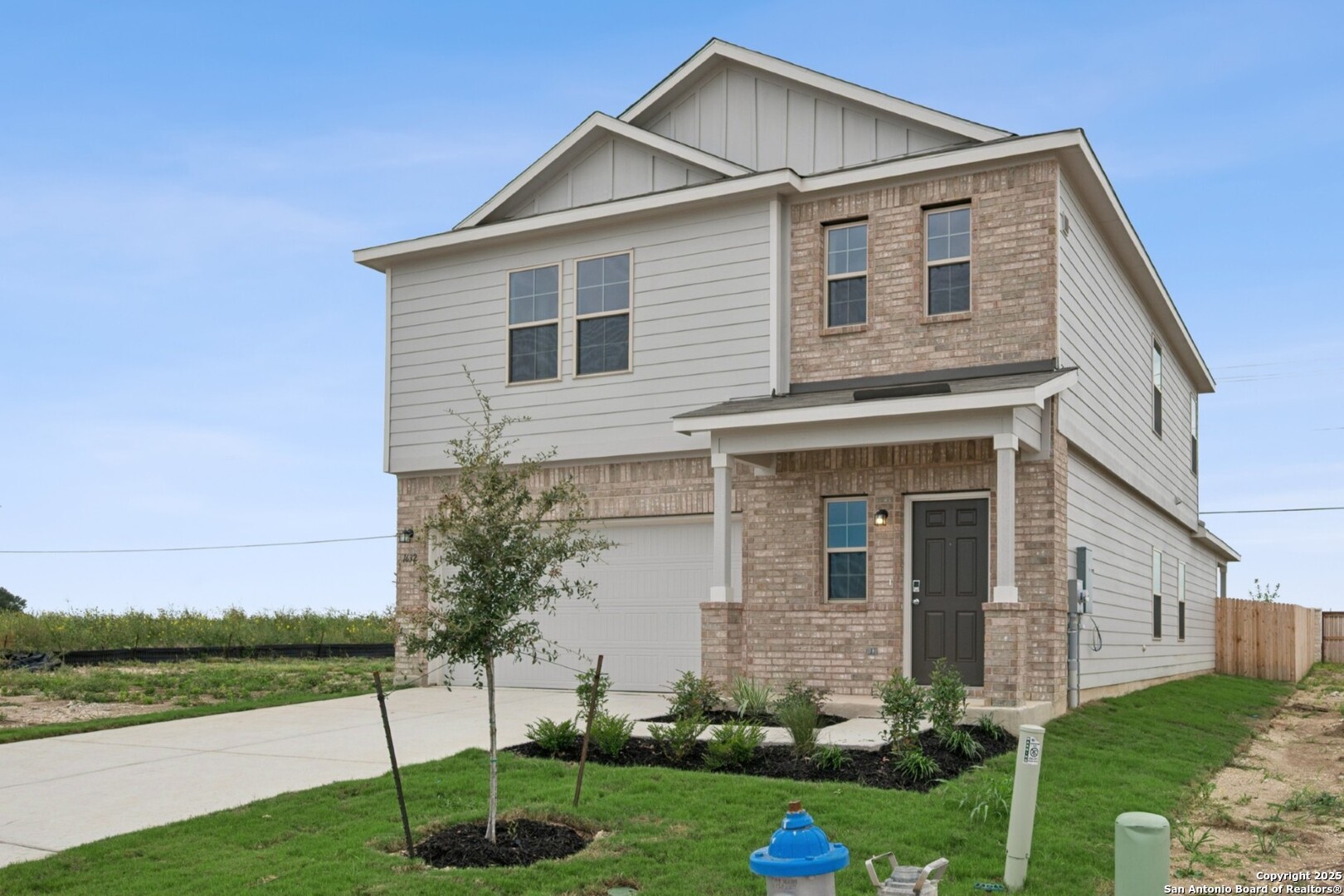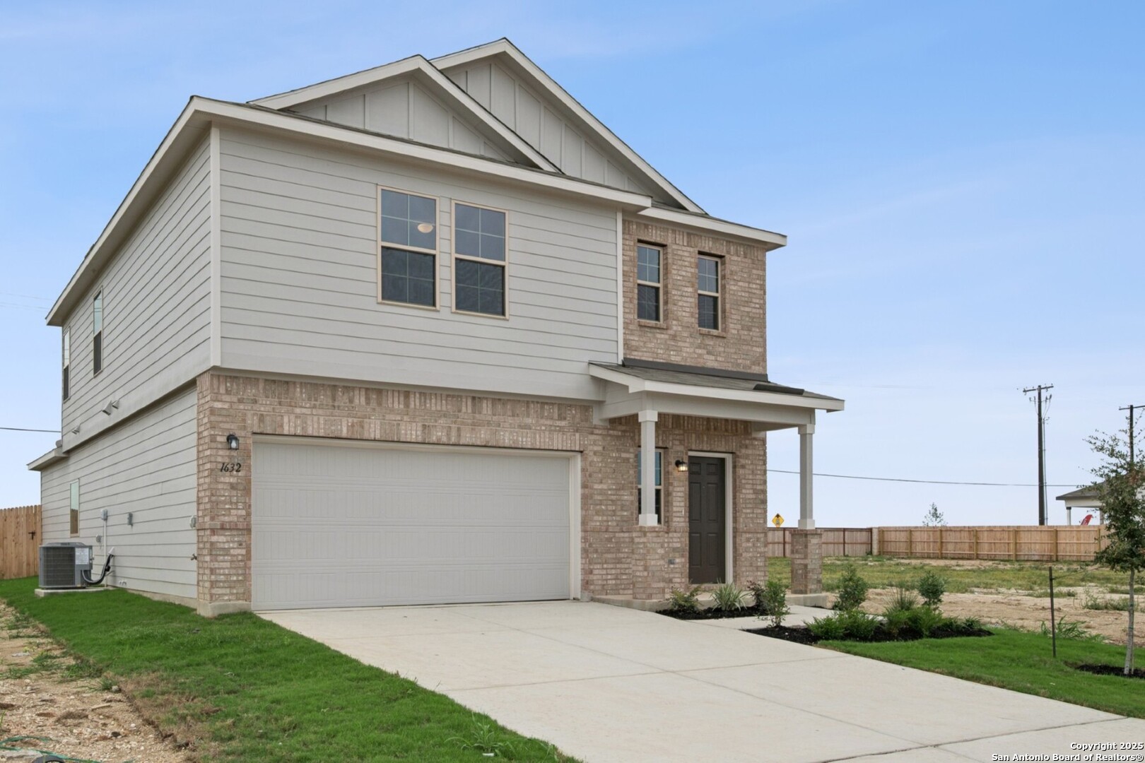 ***READY NOW*** Welcome to 1632 Golden Wheat, a beautifully designed 2-story home nestled in New Braunfels, TX. Offering 2,223 square feet of comfortable living space, this home includes 4 bedrooms, 2 full bathrooms, 1 half bathroom, and a 2-car garage-a perfect blend of style and function for modern living. The first floor features an inviting open layout with a spacious kitchen and dining area that flows seamlessly into the family room, creating the ideal setting for gatherings and daily life. The owner's suite is privately located at the back of the home, highlighted by a bay window, sloped ceilings, double doors, and a spa-like en-suite bathroom with dual vanities, a walk-in shower, a separate bathtub, and an oversized walk-in closet. Upstairs, you'll find three generously sized bedrooms, each with walk-in closets, a full bathroom, and a versatile game room that can easily serve as a media lounge, play area, or study zone. A convenient half bath on the main floor adds extra functionality for guests. Step outside to enjoy a covered patio, perfect for relaxing in the Texas breeze or hosting summer BBQs. With its thoughtful layout, high-end touches, and ample space, 1632 Golden Wheat offers everything your family needs to feel right at home. Don't miss your chance to tour this beautiful home today!