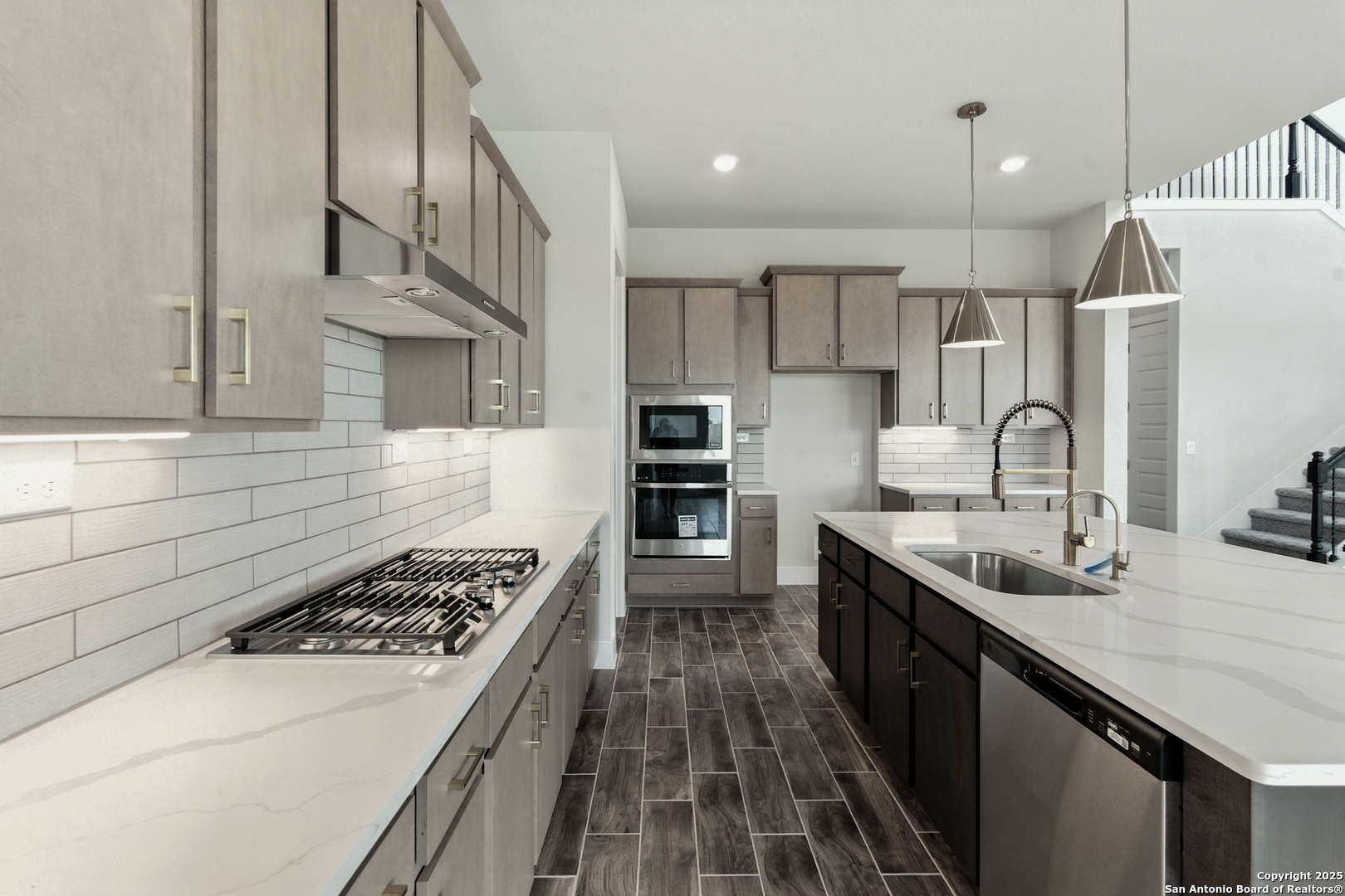 Welcome to 1633 Saddleback Run - Spacious Two-Story Living in Weltner Farms Located in the highly sought-after Weltner Farms 60's community in New Braunfels, this stunning Santa Elena View floor plan offers 4 bedrooms, 3.5 bathrooms, and 3,111 sq ft of thoughtfully designed living space across two levels. Step through the grand foyer into a bright, open-concept layout filled with natural light. The heart of the home features an expansive kitchen with gas appliances, quartz countertops, an extended island, and a morning kitchen for added prep and storage space. A cozy dining nook completes the perfect setting for everyday living and entertaining. The primary suite, privately located on the main floor, offers a luxurious retreat with a standalone soaking tub, walk-in shower, dual vanities, and a custom walk-in closet with a private washer and dryer. A barn door adds a stylish touch to the spa-like bath. Also on the main level is a flex space with private entry, ideal for a home office, formal dining, or additional entertainment area. A guest bedroom with nearby full bath provides a perfect setup for multi-generational living or private guest accommodations. Upstairs, you'll find secondary bedrooms, a spacious loft, and a separate laundry room for added convenience. Additional Highlights: Oversized 2.5-car garage with epoxy flooring Amazon drop box for secure deliveries Smart home package Laundry folding station with utility cabinets Located in a peaceful, well-connected community with easy access to Comal ISD schools, shopping, dining, and entertainment Note: Prices, plans, features, and options are subject to change. All square footage and room dimensions are approximate and may vary by elevation.