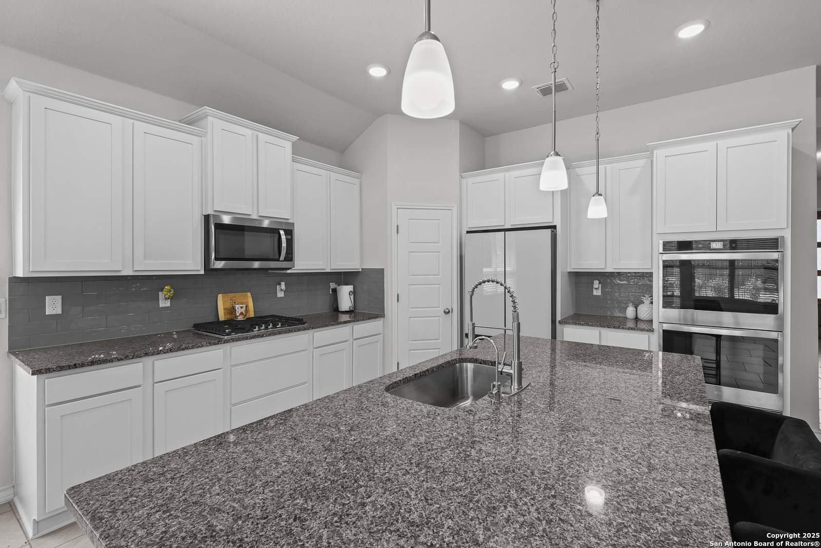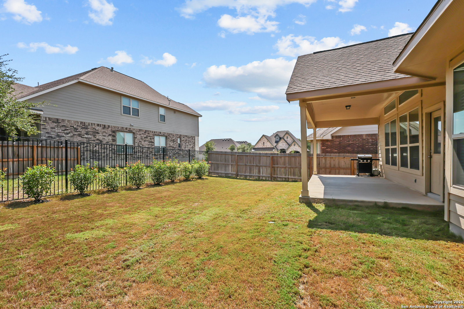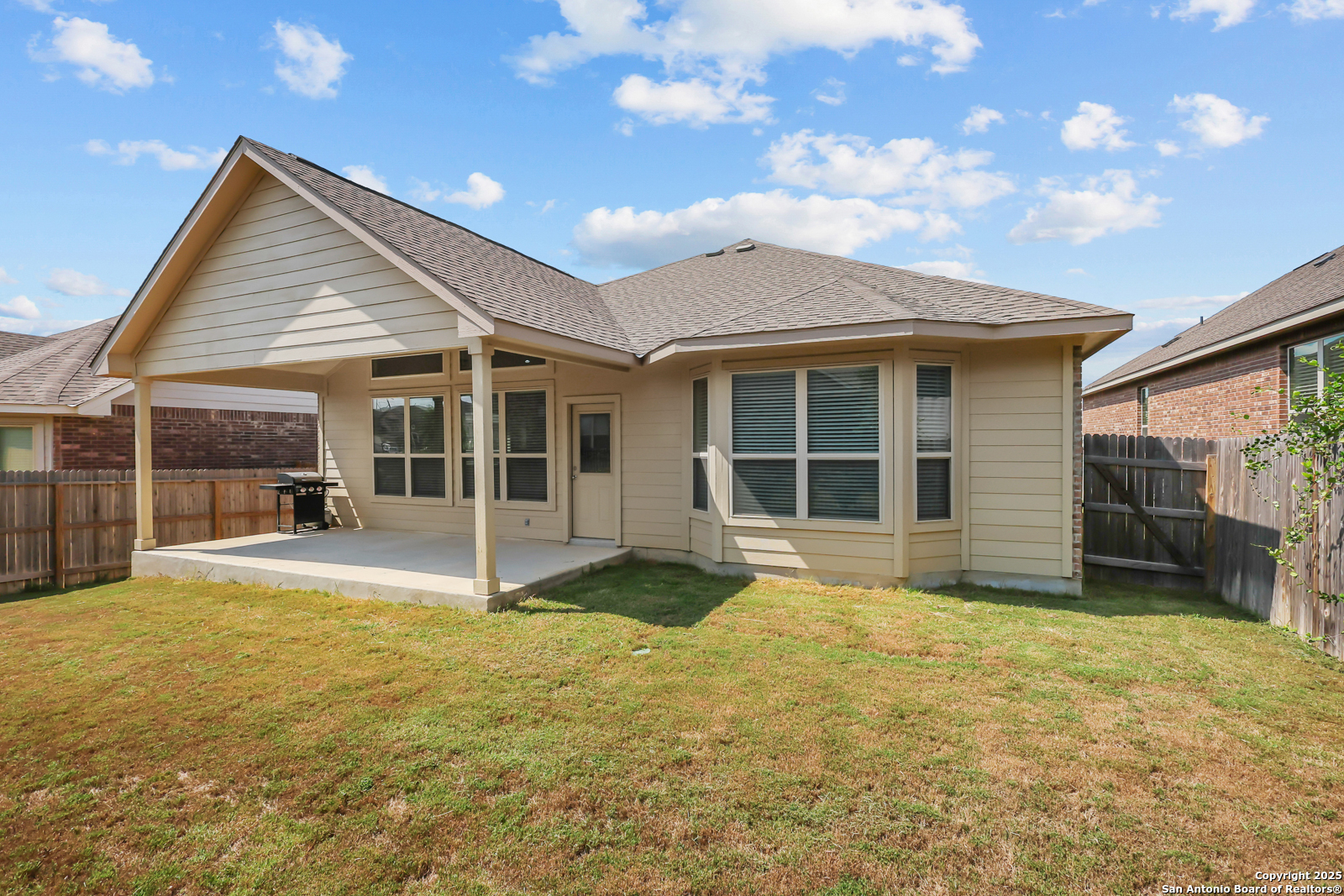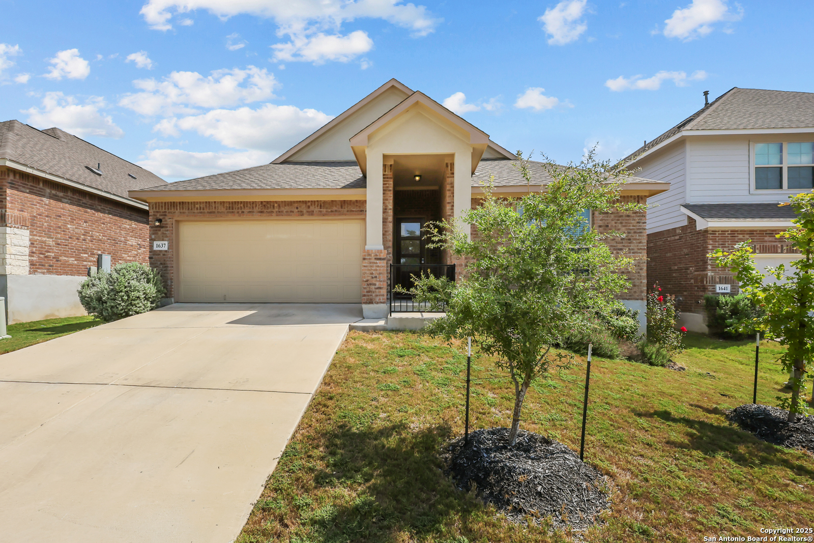 Welcome to 1637 Cullanne in Bulverde, TX, a beautifully designed 3-bedroom, 2.5-bath home offering 1,902 square feet of inviting living space. Two spacious bedrooms greet you at the front of the home, creating a private retreat for family or guests. The heart of the home is the open-concept living room and kitchen, filled with natural light from expansive windows. The kitchen features granite countertops, a central island, and stainless steel appliances, perfect for everyday meals and entertaining. The large primary suite provides comfort and style, complete with a luxurious ensuite that includes a soaking tub, separate shower, and dual vanities. Step outside to enjoy a covered back porch overlooking the backyard, an ideal space for outdoor dining or relaxing. Located in a welcoming community, residents enjoy access to a pool, clubhouse, jogging trails, and a sports court. Nestled in Bulverde, this home combines modern convenience with scenic charm while keeping you close to San Antonio shopping, dining, and top-rated Comal ISD schools.