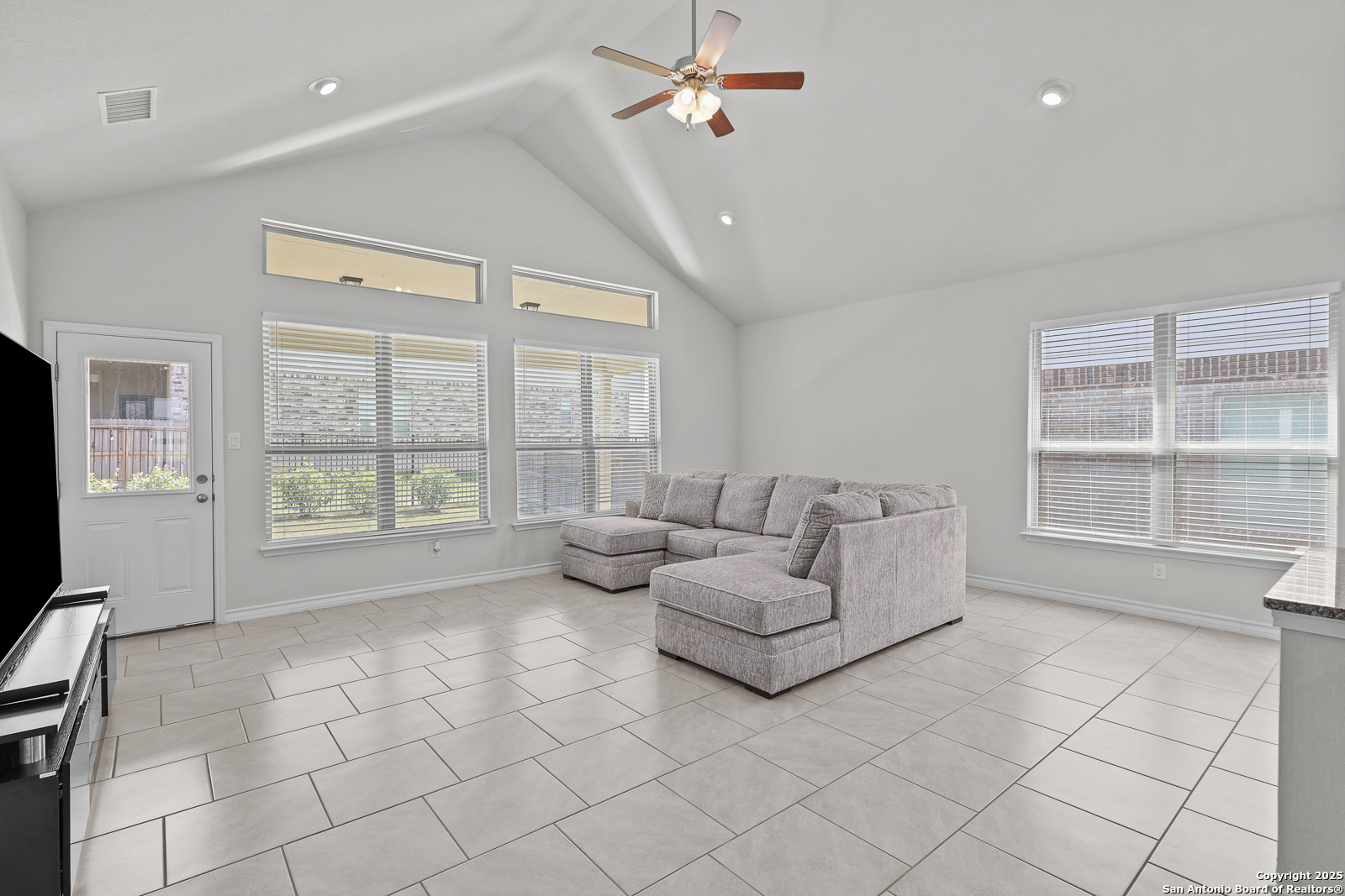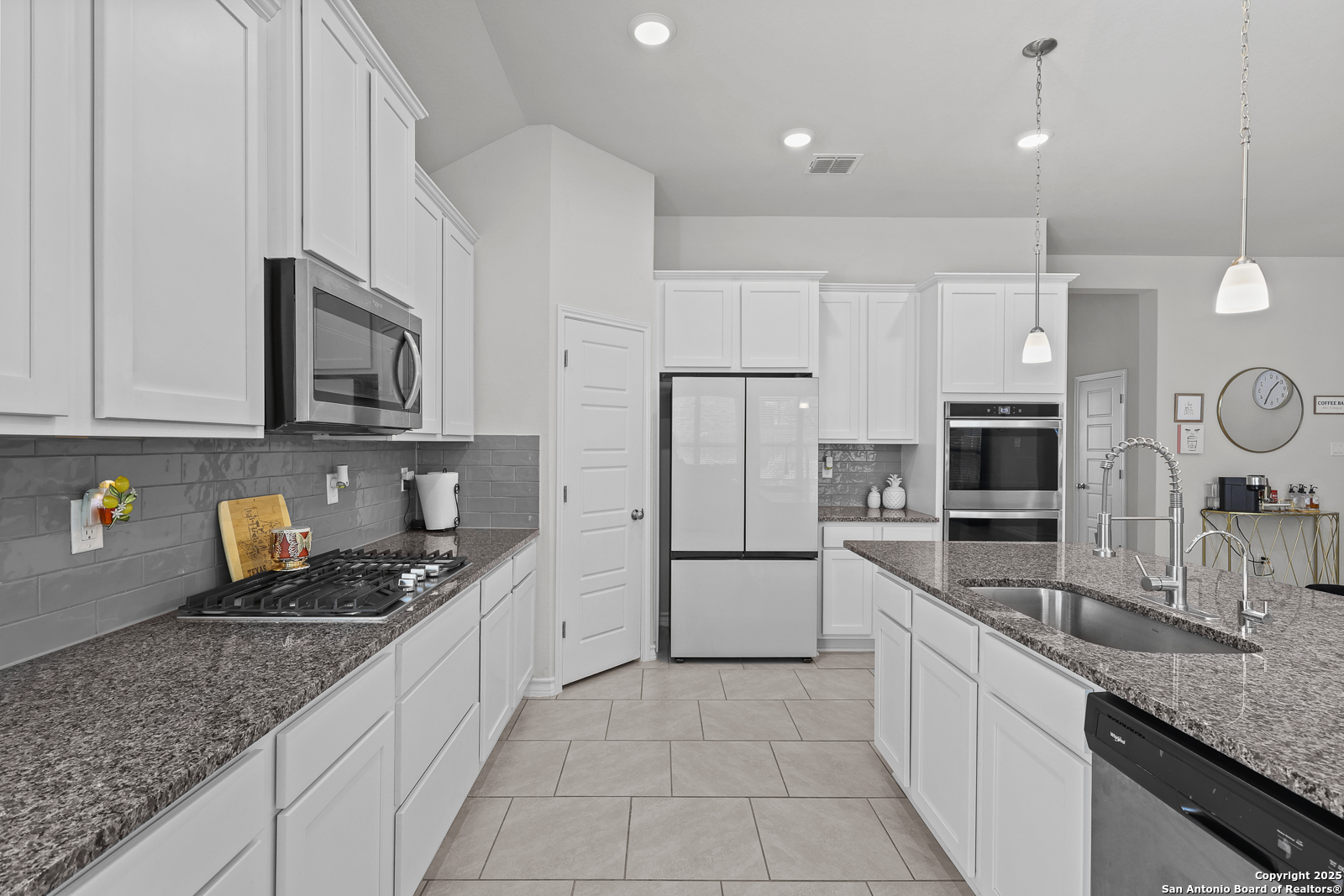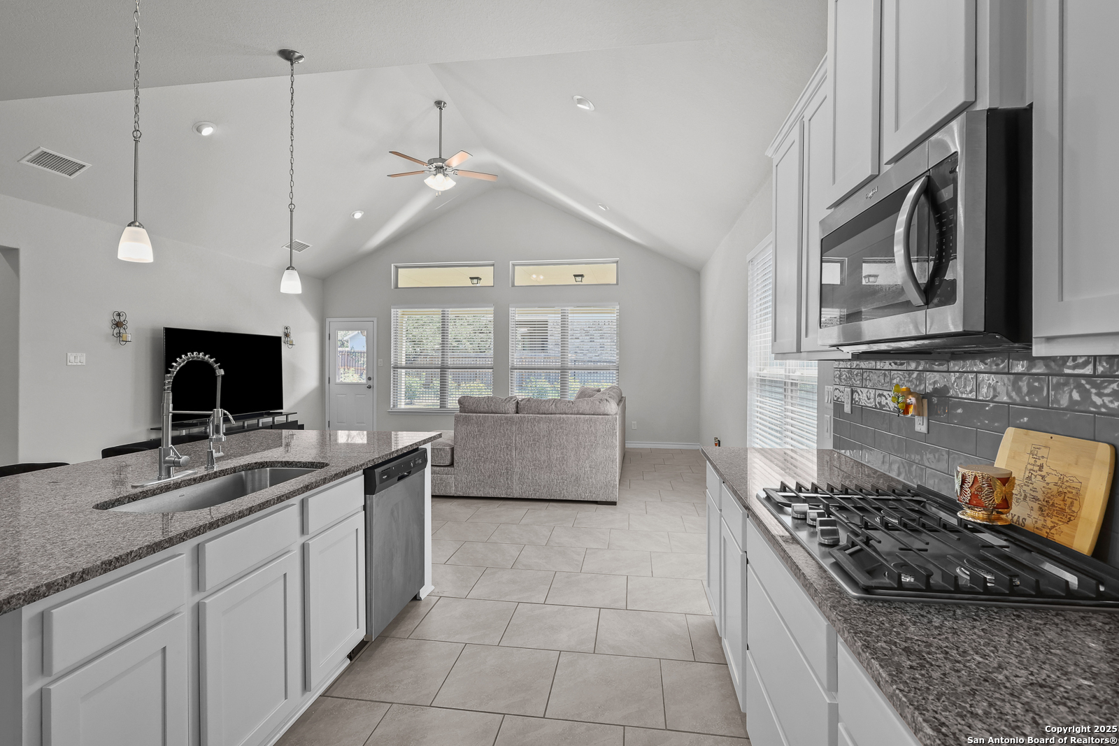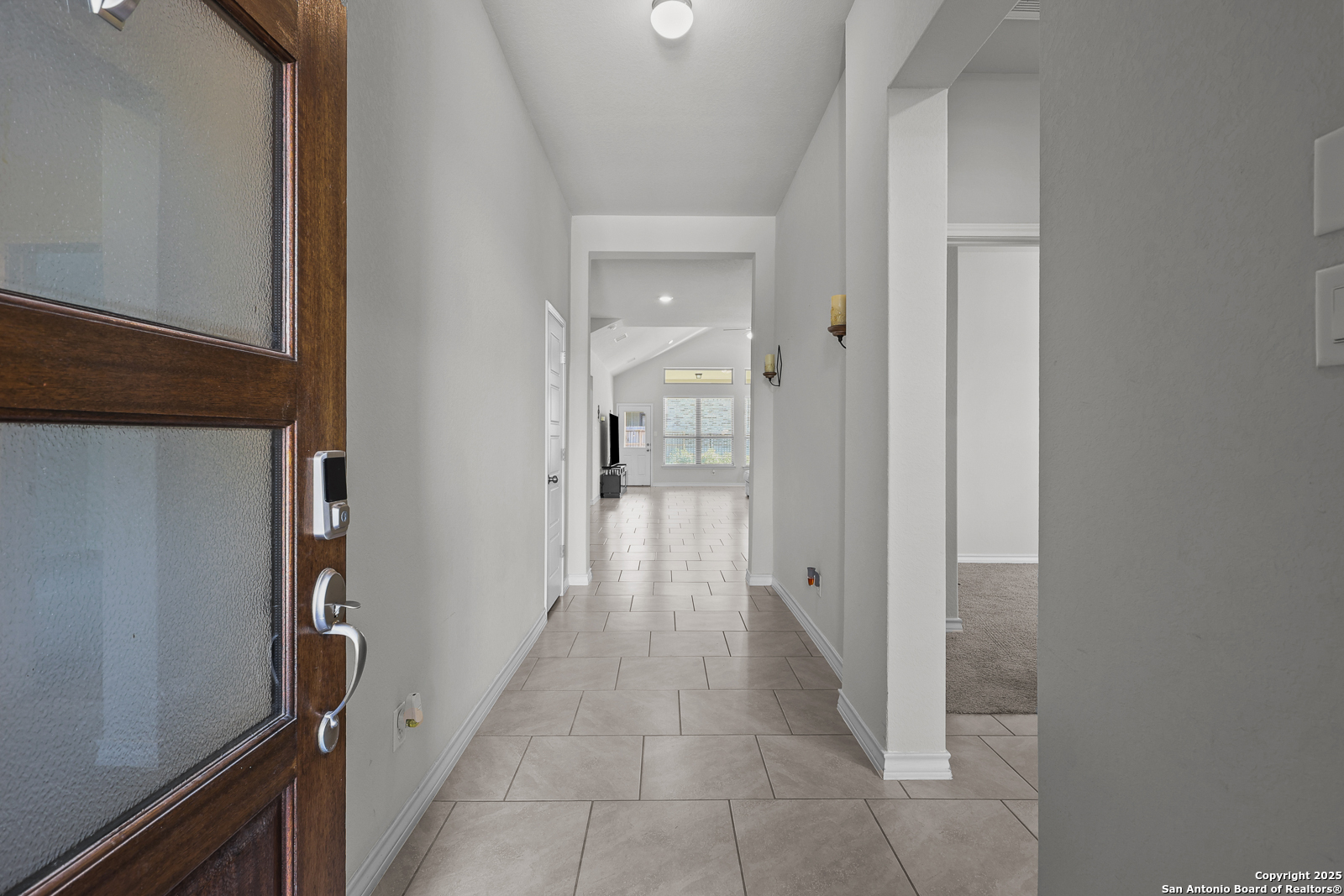 Welcome to 1637 Cullanne in Bulverde, TX, a beautifully designed 3-bedroom, 2.5-bath home offering 1,902 square feet of inviting living space. Two spacious bedrooms greet you at the front of the home, creating a private retreat for family or guests. The heart of the home is the open-concept living room and kitchen, filled with natural light from expansive windows. The kitchen features granite countertops, a central island, and stainless steel appliances, perfect for everyday meals and entertaining. The large primary suite provides comfort and style, complete with a luxurious ensuite that includes a soaking tub, separate shower, and dual vanities. Step outside to enjoy a covered back porch overlooking the backyard, an ideal space for outdoor dining or relaxing. Located in a welcoming community, residents enjoy access to a pool, clubhouse, jogging trails, and a sports court. Nestled in Bulverde, this home combines modern convenience with scenic charm while keeping you close to San Antonio shopping, dining, and top-rated Comal ISD schools.