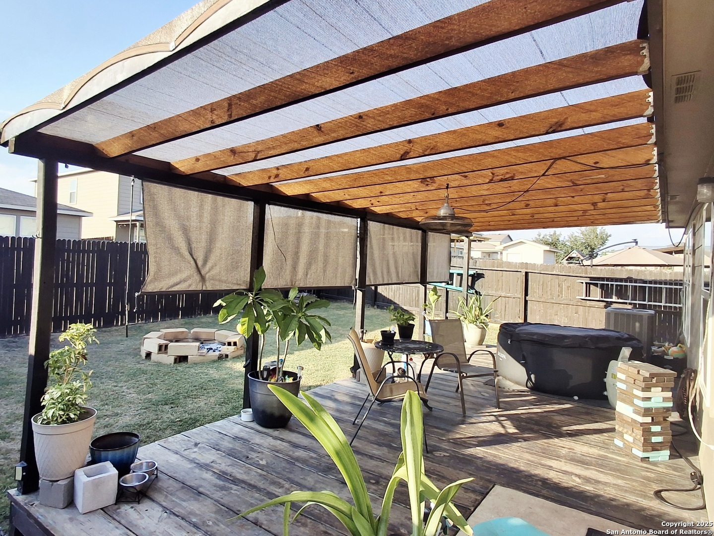 This charming well maintained home is a must see.. Offers 3 bedrooms and 2 full baths. Great color pallet, with lots of extras. Including large patio , with privacy shades for morning coffee or evening drinks with family and friends, Fire pit, Small Doggie door, luxury vinyl flooring installed in all bed rooms and closets, Water softener, reverse osmosis, epoxy garage floor with garage opener, and ceiling fans through out. Neighborhood is half way to both New Braunfels and Seguin for an easy commute.