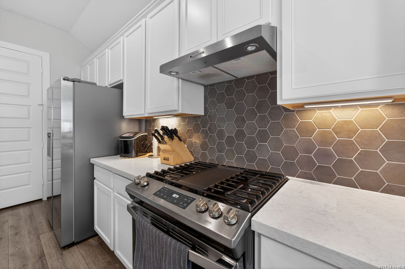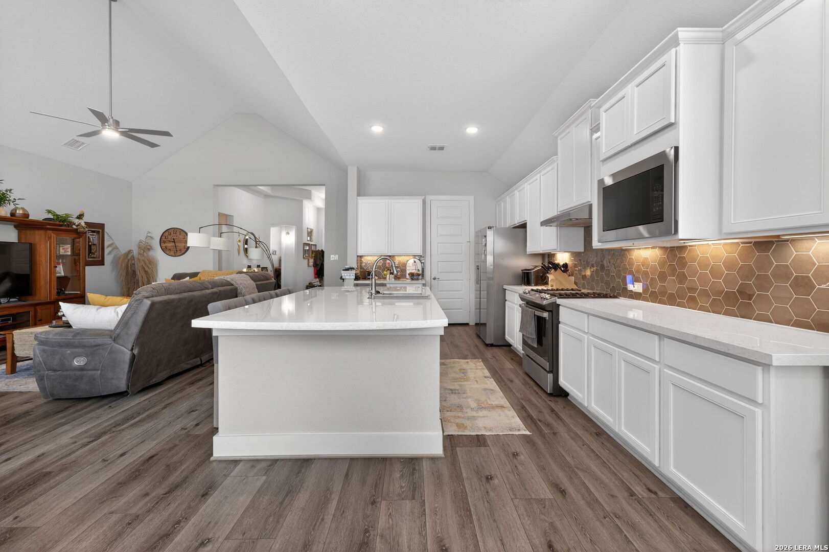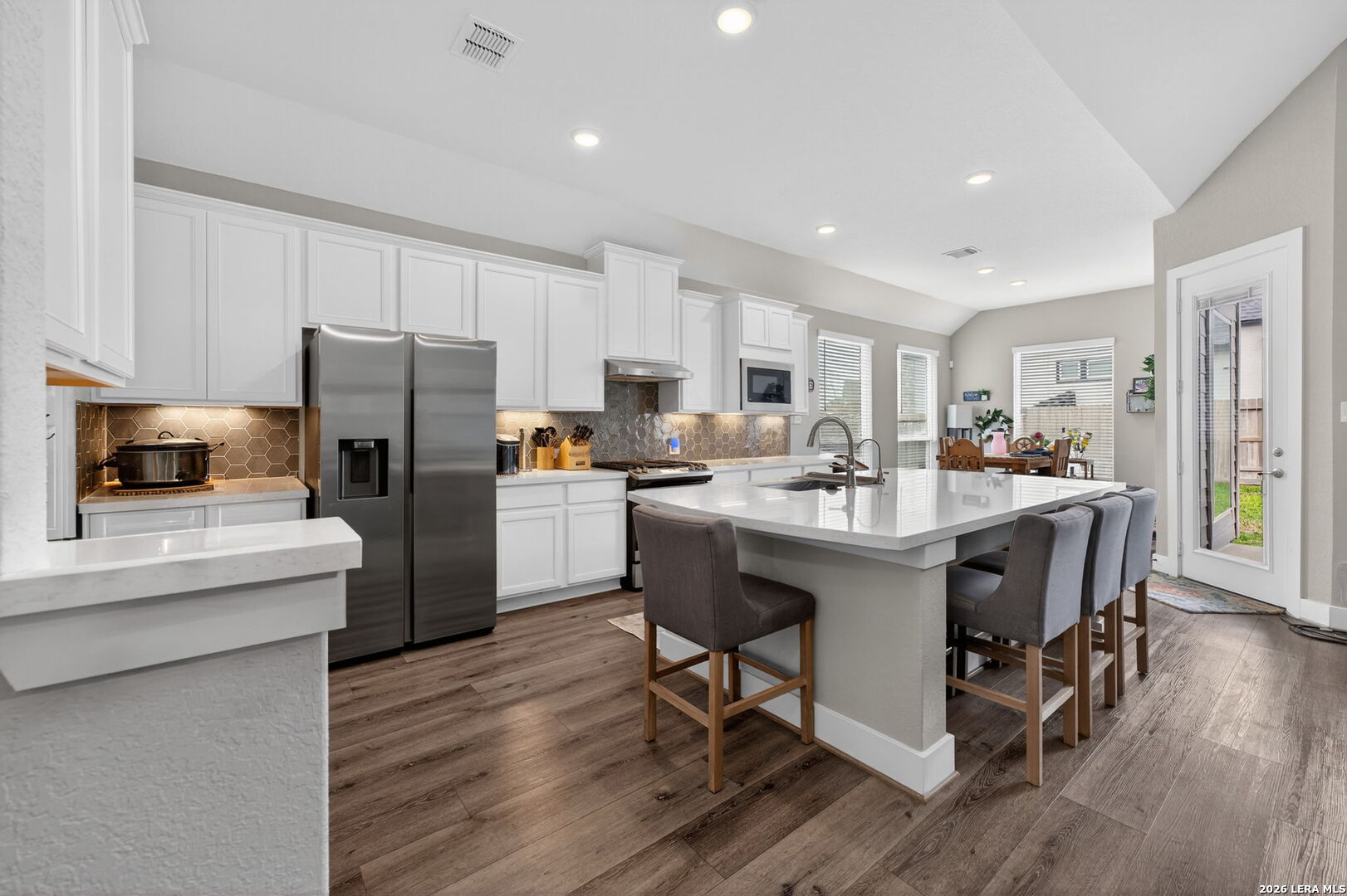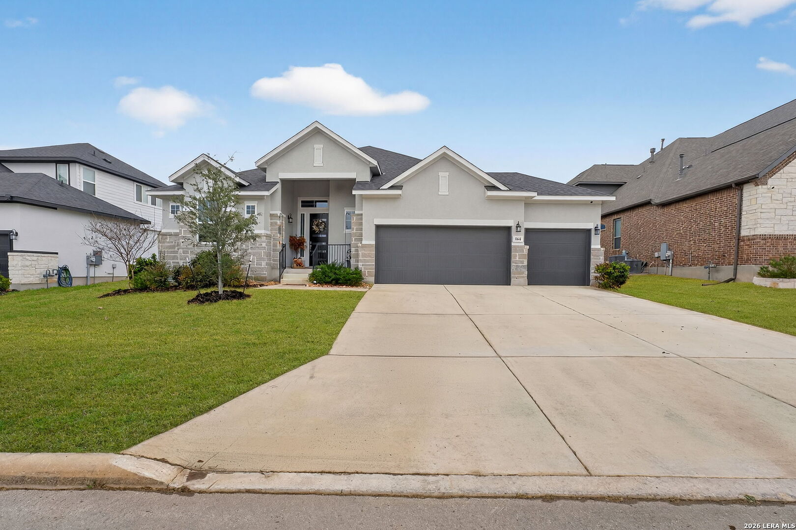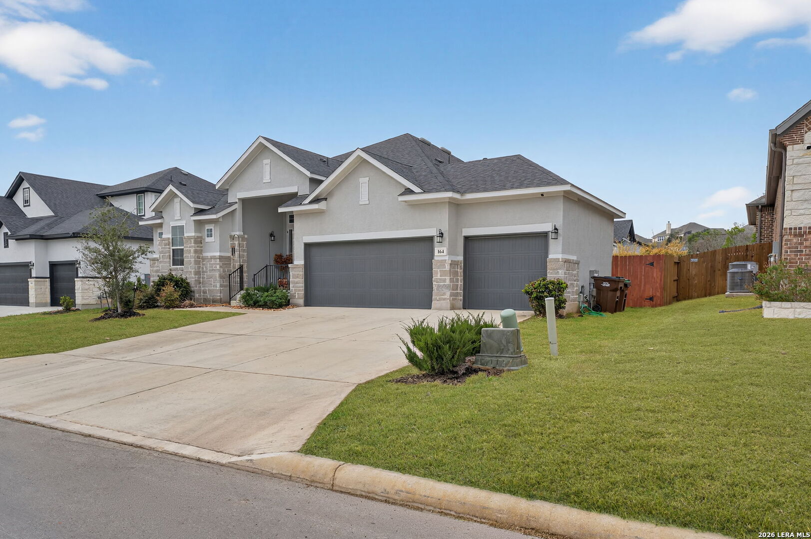 Welcome to 164 Jereth Crossing in Castroville, TX - a beautifully designed newer construction home located in the sought-after Potranco Oaks community. Built in 2023, this spacious single-story residence offers 4 bedrooms, 3 full bathrooms, and over 2,300 square feet of thoughtfully crafted living space, combining modern style with everyday functionality. Step inside to an open-concept layout highlighted by soaring ceilings, abundant natural light, and a seamless flow between living, dining, and kitchen areas-perfect for both entertaining and comfortable daily living. The chef-inspired kitchen features a large center island, quartz countertops, ample cabinetry, and upgraded finishes that make it the true heart of the home. Located just minutes from Potranco Road with quick access to San Antonio, this home offers the perfect balance of peaceful suburban living and city convenience. Positioned in a growing area with strong demand, this property is not only a beautiful place to call home but also a smart long-term investment.