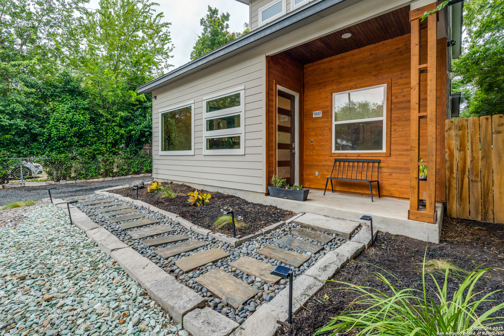 Welcome to 1640 Katy Street-where thoughtful design, timeless style, and a sense of calm come together in New Braunfels. From the moment you arrive, the beautifully xeriscaped front yard hints at the ease and grace waiting inside-low-maintenance, elegant. Step through the front door and you'll immediately feel the difference. Soft natural light, and a clean, open layout create an atmosphere that feels serene and grounded-like the kind of home that lets you exhale. The living room flows seamlessly into the kitchen space and the elegance paired with the convenience of a first floor primary and bath just adds to the well thought out design of this home. Head upstairs to find an eye catching feature wall along the stairs. Beyond that, you will find 2 bedrooms, a serene full bath and a roof top terrace! Perfect for relaxing and enjoying morning coffee or an evening glass of wine! The back yard is breath-taking, Xeriscaped, and intentional. Now let's talk convenience. Just minutes from the heart of New Braunfels. The combination of the serenity of this home and the proximity to so many shops / restaurants / and the river make this home everything you need!