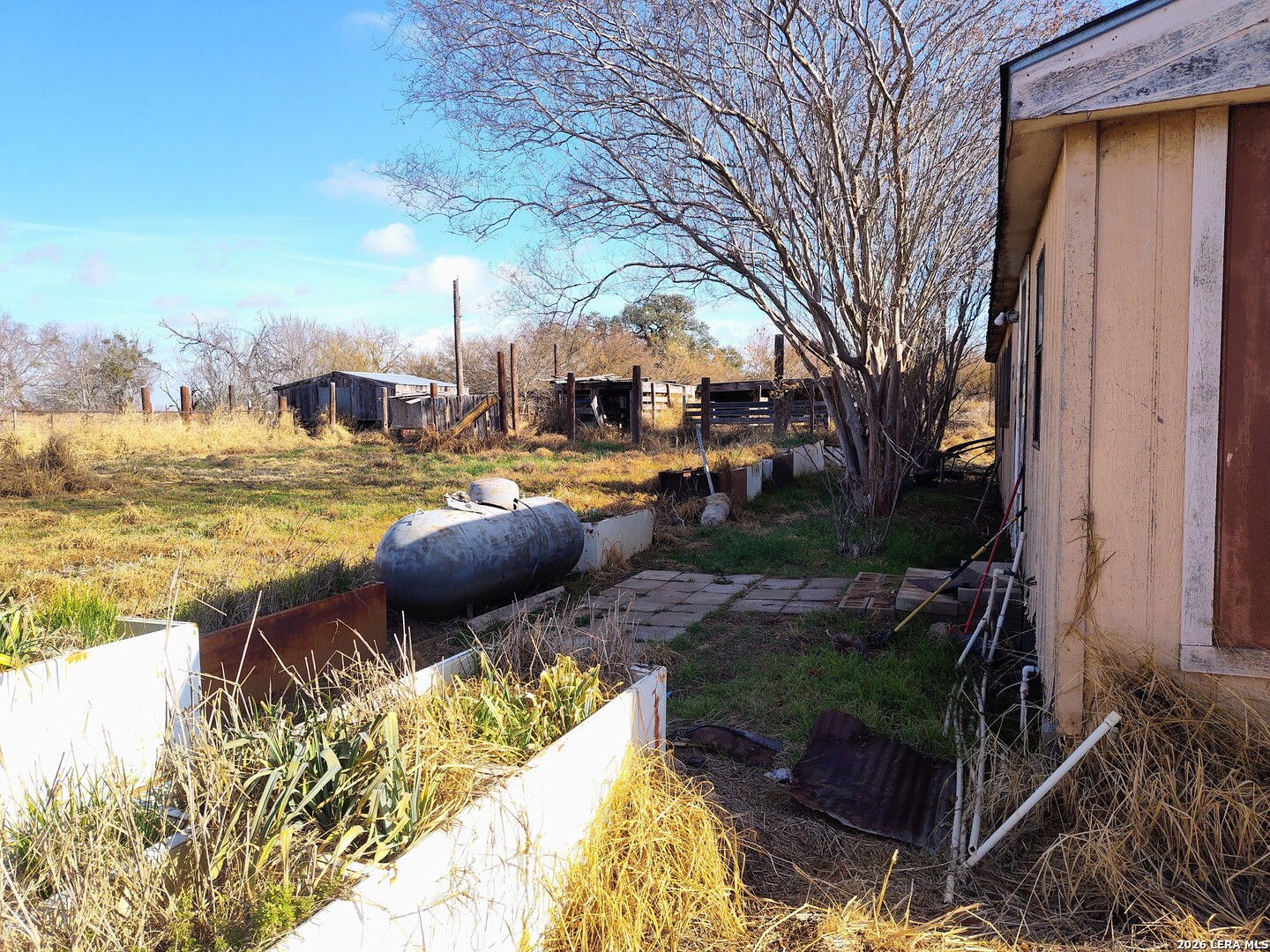 Leave the hustle and bustle behind. This 12 acre lot is located minutes from downtown Floresville and 40 minutes from San Antonio. Sold as is, so there is lots of potential. Property has a single story house and the property is completely fenced. Includes a shed, cattle pens, covered work station and an old manufactured home. Please take extreme caution when entering any structure. A lot of cleaning and care will be necessary to restore both house and manufactured home. This is an excellent opportunity to own land in Floresville.