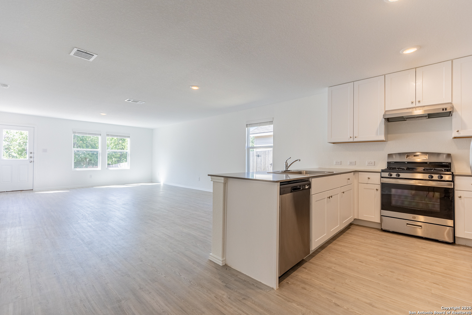 Available Immediately! Additional showing options available.This single-story home features three bedrooms, including a generous Primary suite. The two secondary bedrooms are located at the front of the house and share a hall bathroom. The heart of the home is an open concept living area that seamlessly integrates the living room, dining room, and kitchen, creating a spacious and inviting environment for daily living and entertaining. Don t miss this one and apply now!