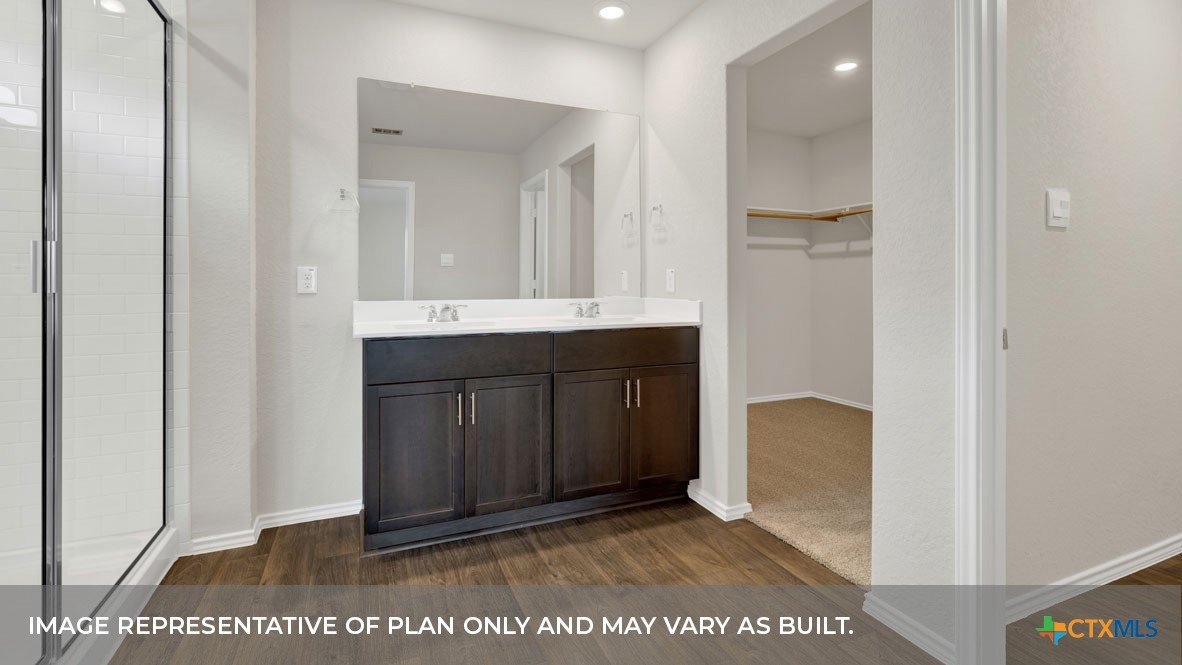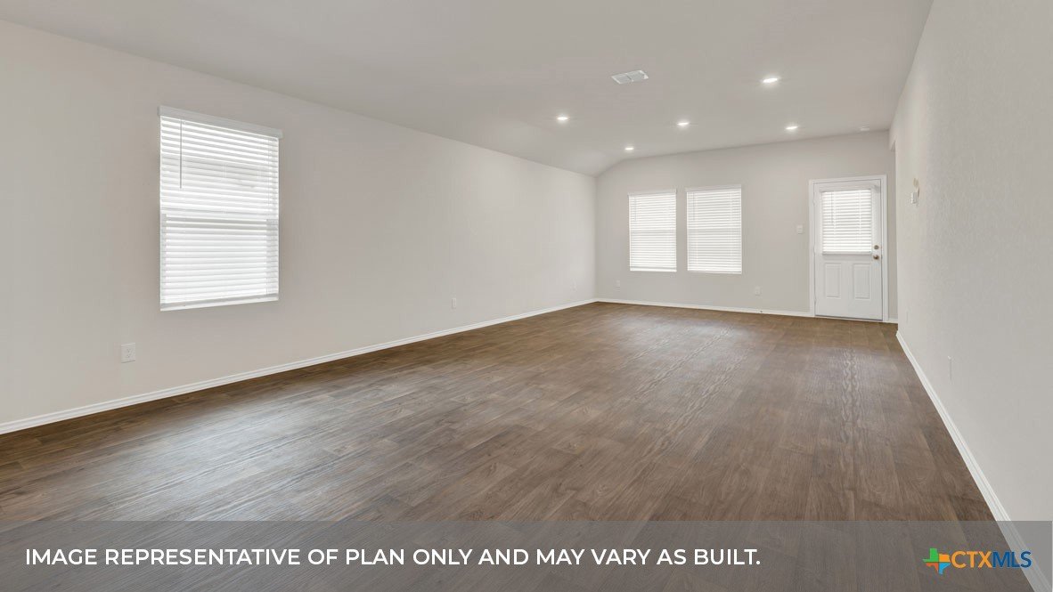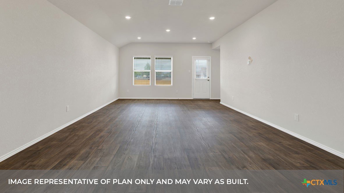 NOV/DEC ESTIMATED COMPLETION DATE. NO BACKYARD NEIGHBORS! The Gaven is one of our one story floorplans featured in our Saengerhalle Meadows community in New Braunfels, TX. This efficient floorplan offers 1,717 square feet of living space across 4 bedrooms, 2 bathrooms and 2 car garage. Our homes in Saengerhalle Meadows feature farmhouse exteriors. Stepping inside the home from the covered entryway, you will find two secondary bedrooms and a full bathroom off the foyer. The secondary bathroom includes a shower/tub combination, and the bedrooms feature a closet with shelving. Moving further into the home, you will find the kitchen, which includes an island with a built-in sink facing the family room, stainless steel appliances, granite countertops and 36” upper cabinets. The dining room and family room flow easily from the kitchen and you’re sure to make many memories in this beautiful space. With side and rear windows, this space is bright and inviting. The utility room and bedroom 2 are off the kitchen. With the utility room at the center of the home, your laundry chores will be an easy task to complete. The primary bedroom is tucked off the family room at the back of the home. Featuring its own attached bathroom with a 5’ walk in shower, double vanity and separate door for the toilet, enjoy this relaxing space during your morning routine. A walk-in closet is connected to the bathroom, with plenty of room for your accessories and prized possessions. The Gaven includes vinyl flooring throughout the common areas of the home, and carpet in the bedrooms. All our new homes feature a covered back patio, full sod, an irrigation system in the front and back yard, and a 6’ privacy fence around the back yard. This home includes our America’s Smart Home base package, which includes the Amazon Echo Pop, Front Doorbell, Front Door Deadbolt Lock, Home Hub, Thermostat, and Deako® Smart Switches.
