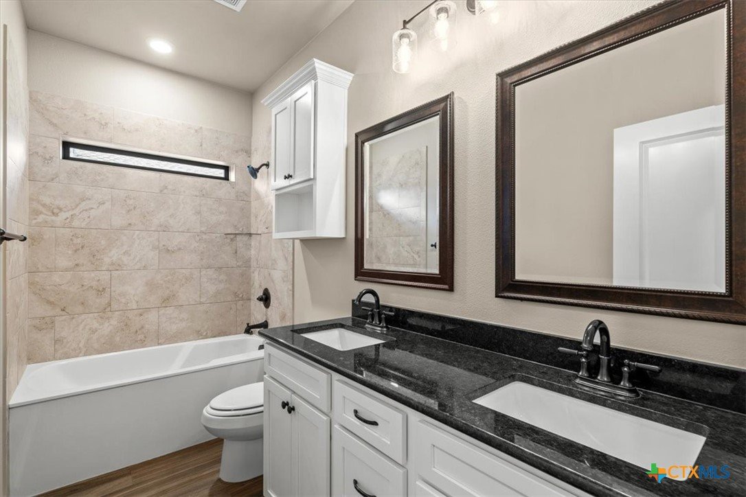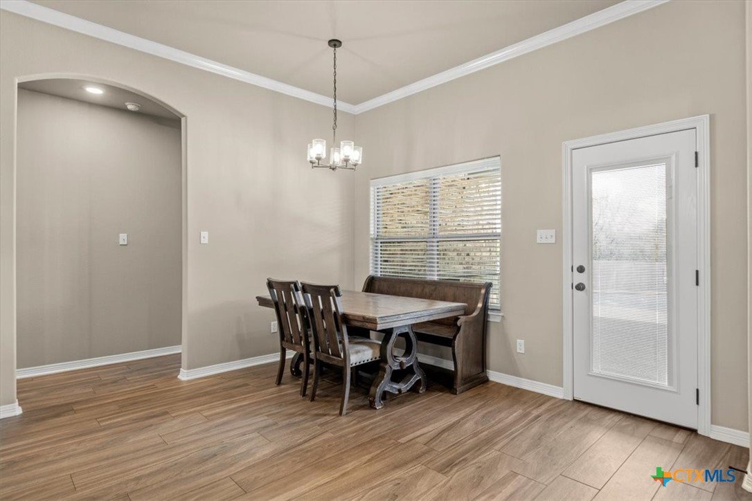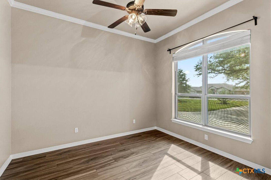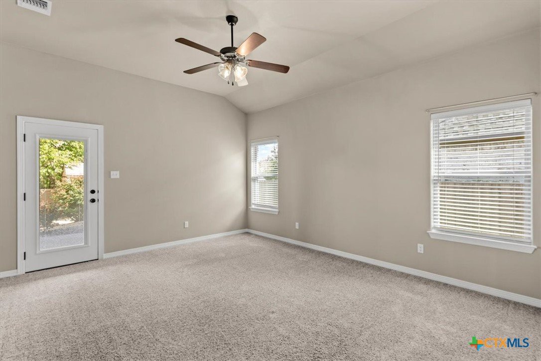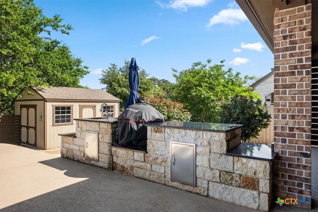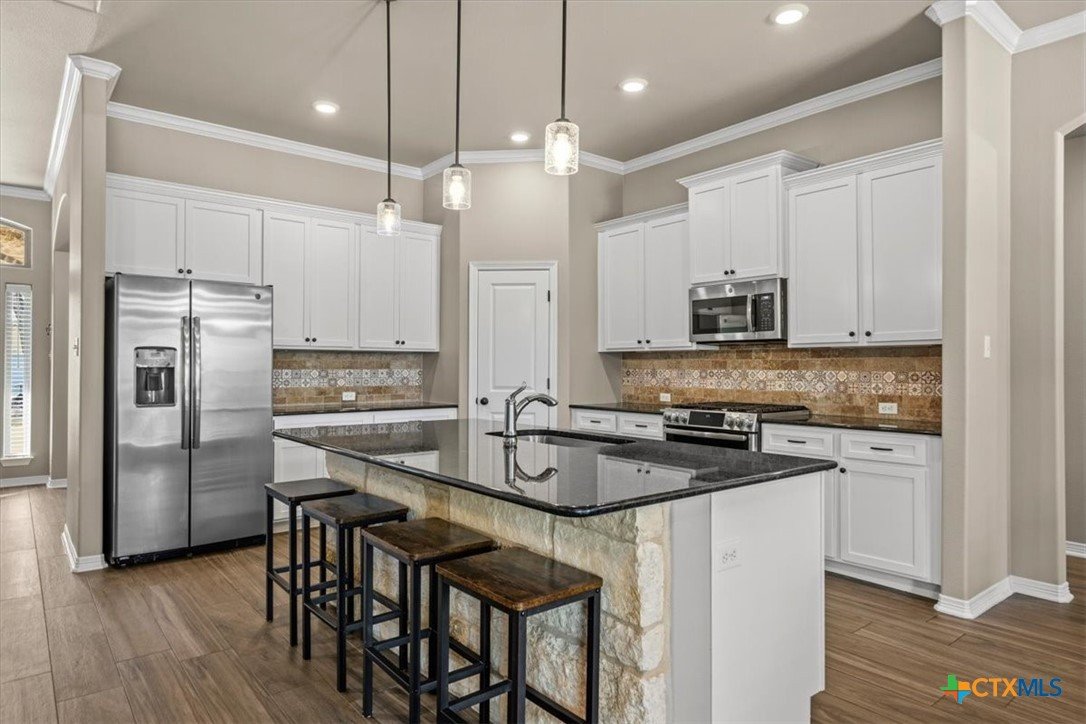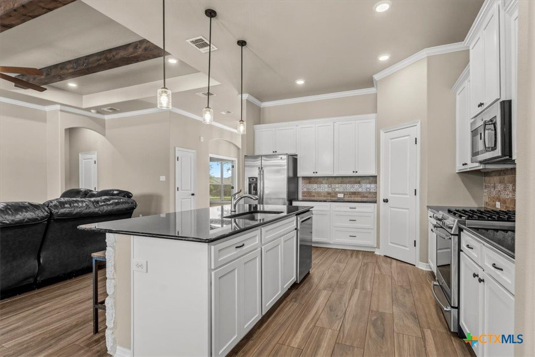 Welcome to your private Central Texas retreat in the desirable Highland Estates, located within Belton ISD and just minutes from Belton Lake. This beautifully crafted Carothers-built home offers 4 spacious bedrooms, 2.5 baths, and a thoughtfully designed layout that blends comfort, elegance, and functionality. Step inside to an inviting open-concept floorplan, where the foyer is flanked by a dedicated study and formal dining area—perfect for both work and entertaining. The living room impresses with soaring beamed ceilings, a cozy wood-burning fireplace, and expansive views of the backyard oasis. The primary suite is a true sanctuary, featuring a massive walk-in closet and direct access to the back deck—ideal for enjoying quiet mornings or evening relaxation. Secondary bedrooms are generously sized and share a well-appointed bathroom with a double vanity. Outdoors, the home truly shines. The backyard backs to a private 4-acre property, offering rare peace and privacy. Designed for entertaining, the space includes a large deck, covered seating area, outdoor kitchen, and multiple beverage refrigerators. The luxurious heated pool and spa feature a stunning waterfall, creating a resort-style atmosphere right at home. Low-maintenance landscaping ensures you can spend more time enjoying and less time working. Additional highlights include a 3-car garage with a finished epoxy floor and ample storage. This is more than a home—it’s a Central Texas haven where comfort, privacy, and outdoor living come together seamlessly.