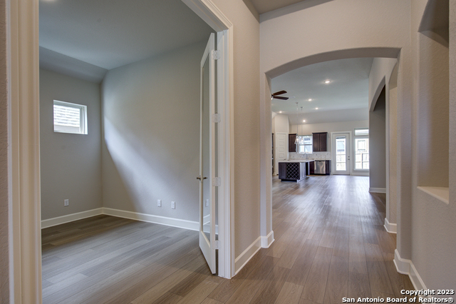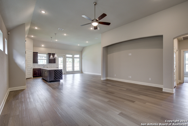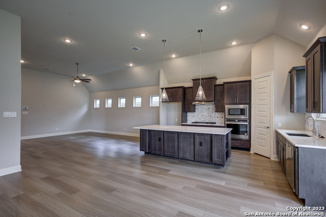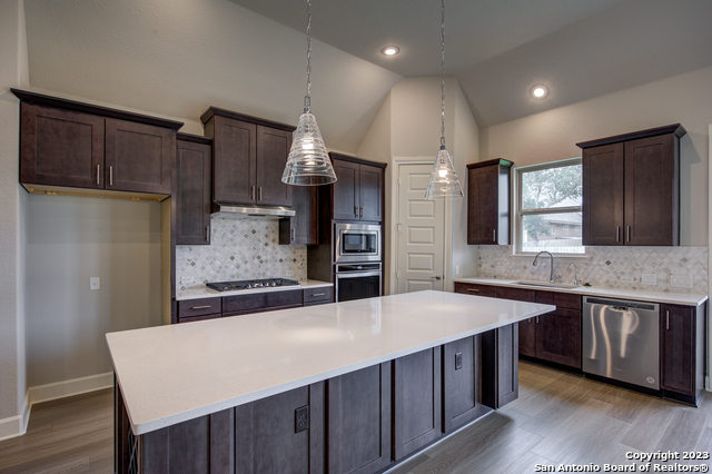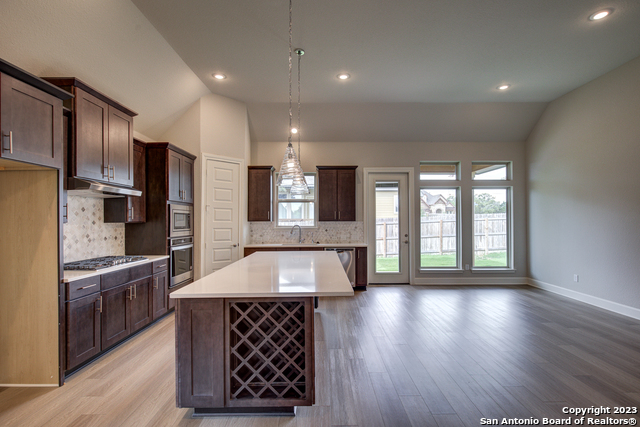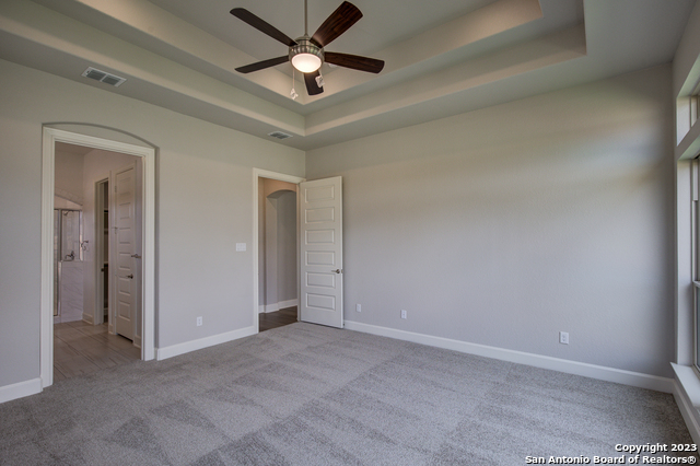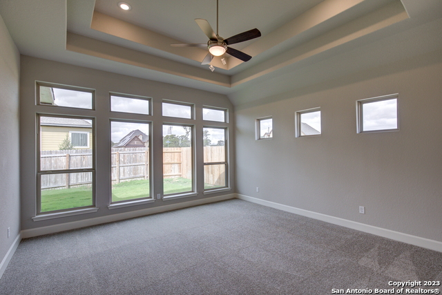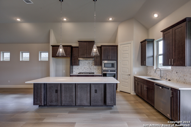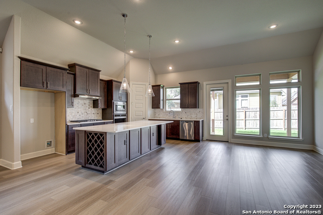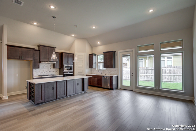 Living is easy in this impressive, generously spacious Texas-Home. The open floor plan with high ceilings and a grand entry encompasses 3 bedrooms with plenty of room for sleep and storage. This 2,255 sq. ft. home has 8-foot entry door. Enjoy entertaining in the stylish gourmet kitchen with an oversized kitchen island, granite countertops, built-in stainless-steel appliances, and a 5-burner gas cooktop, modern charcoal cabinets in kitchen. Kitchen flows into the dining room and is open to the expansive family room. Luxury vinyl plank flooring in main areas. Relax and enjoy the outdoors with your covered patio with fully landscape package included. The master bedroom, with its tray ceiling and large windows, radiates with natural light, as does the whole house, and includes a large master closet off the glamorous master bath.
