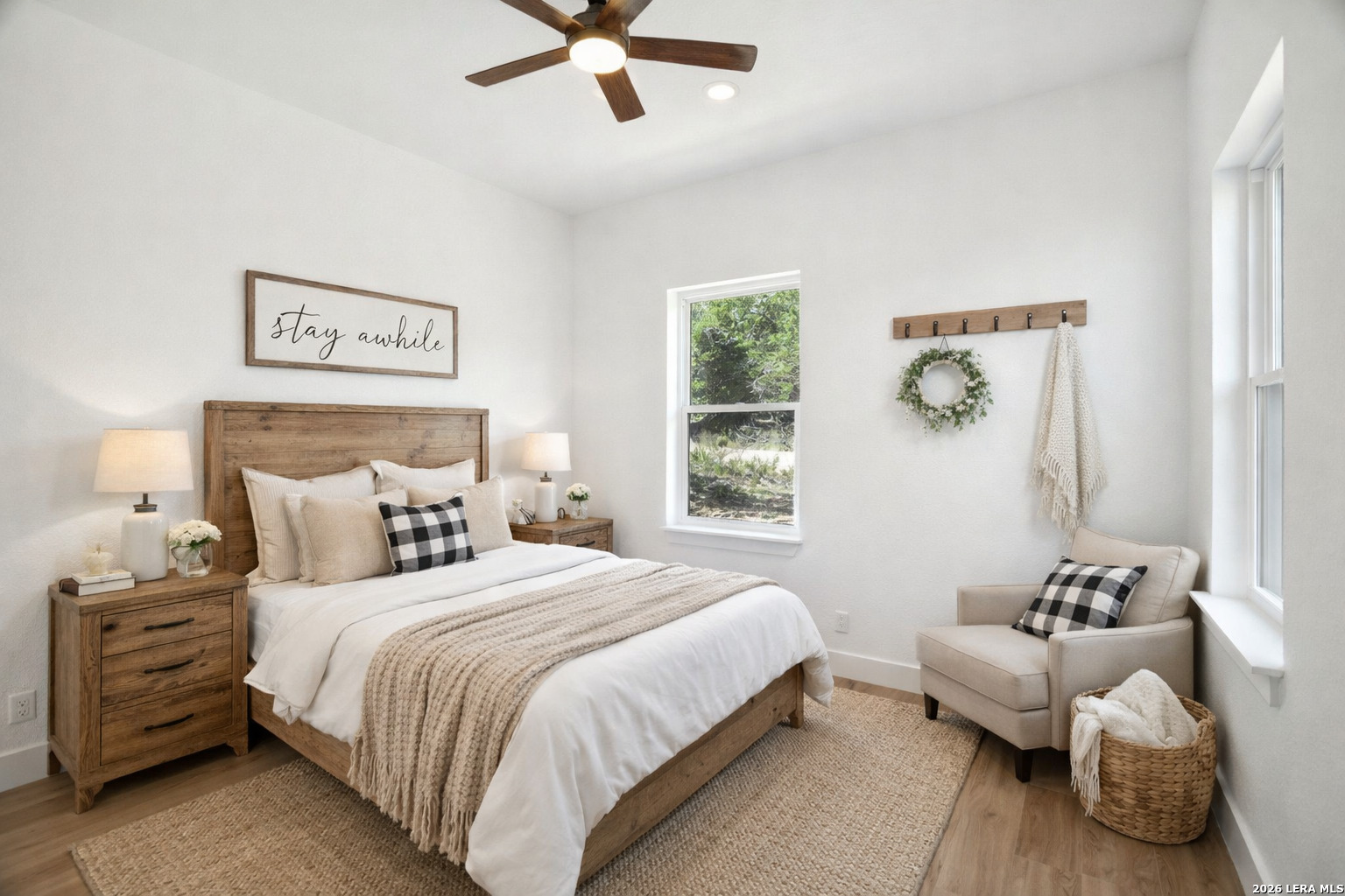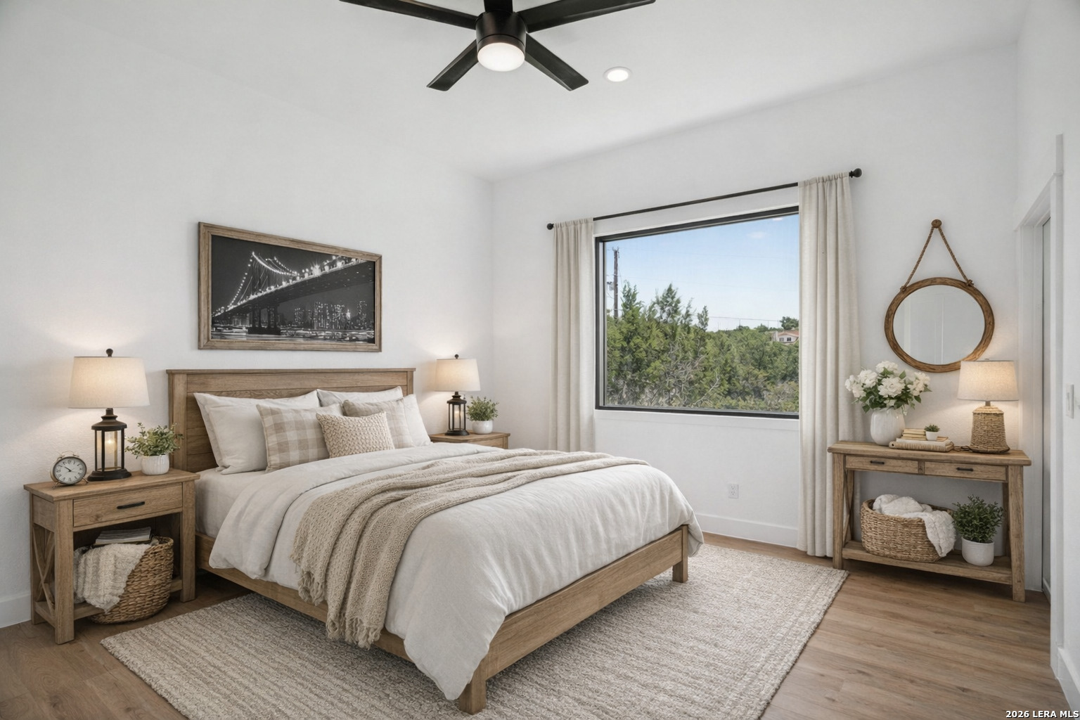 Welcome to luxury living in the heart of the Texas Hill Country! Situated on a spacious half-acre lot inside the prestigious gated community of North Summit Estates, this newly constructed modern Tudor-style home offers the perfect blend of timeless elegance and a comfort design. Featuring 3 generously sized bedrooms and 2.5 beautifully appointed bathrooms, this open-concept home is highlighted by soaring ceilings and abundant natural light throughout. From the moment you enter through the grand double doors, you'll be captivated by the seamless layout and sophisticated finishes that create an inviting yet upscale atmosphere. At the heart of the home is a chef-inspired kitchen designed to impress, complete with custom cabinetry, sleek quartz countertops, an oversized island with bar seating, and a large picture window showcasing breathtaking Hill Country views. The kitchen opens effortlessly to the expansive living area, making it ideal for both everyday living and entertaining. The private primary suite is a true retreat, featuring an oversized walk-in closet with built-in shelving and a spa-like en-suite bathroom with dual vanities, a relaxing garden tub, and a stunning European-style walk-in shower. The secondary bedrooms are equally spacious, offering ample closet space and flexibility for guests, family, or a home office. Step outside to an expansive backyard oasis-perfect for outdoor entertaining, peaceful relaxation, or future custom additions. Just minutes from Canyon Lake, this exceptional home delivers the ultimate combination of modern luxury and scenic Hill Country charm. Don't miss your opportunity to own this one-of-a-kind property-schedule your private tour today!
