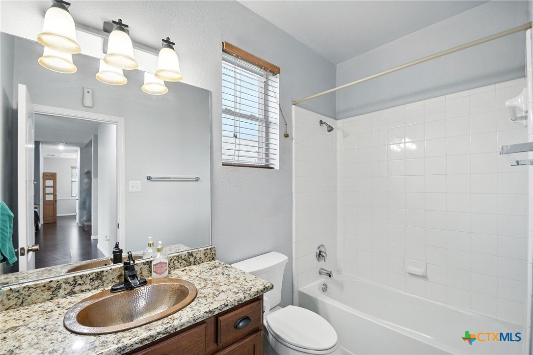 Welcome to this expansive and beautifully maintained 5-bedroom, 3-bathroom home located in the highly desirable Bunton Creek community in Kyle, TX. Situated on a greenbelt corner lot, this two-story home offers privacy, space, and flexible living options for any lifestyle. Featuring three spacious living areas—including a formal living room, an upstairs loft/game room, and an open-concept family room—this home provides ample room for entertaining, relaxing, or spreading out. The large kitchen opens to the family room and features plenty of cabinetry, countertop space, and a central island perfect for gatherings. The home includes one full bedroom and bath on the main level, ideal for guests or multigenerational living. Upstairs, you’ll find the remaining four bedrooms—including a generous primary suite with a walk-in closet and en-suite bath with dual vanities, soaking tub, and separate shower. Enjoy outdoor living on your greenbelt lot, offering additional privacy and space to unwind or entertain. Located on a corner lot, this home combines functionality with curb appeal in a growing community just minutes from schools, shopping, dining, and easy access to I-35 for commuting to Austin or San Antonio.