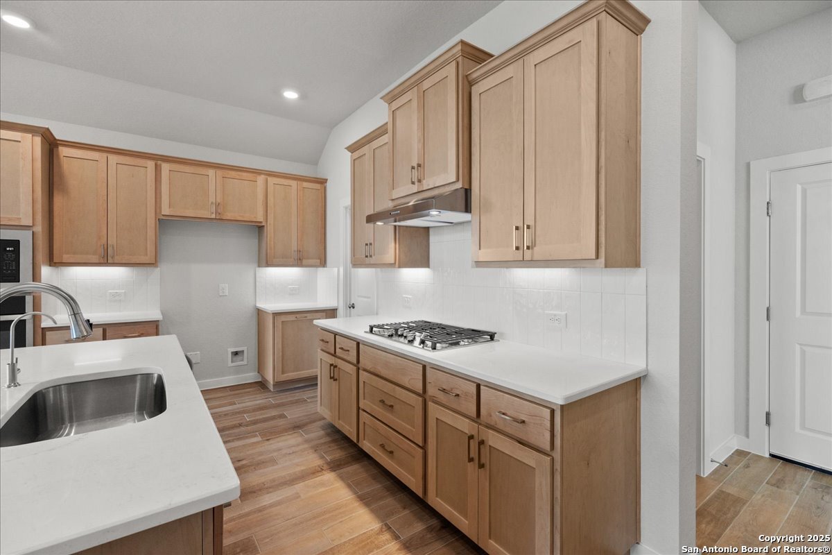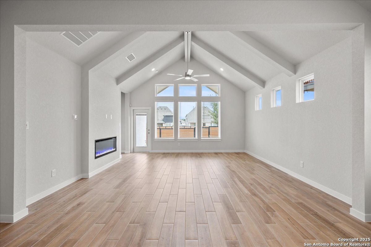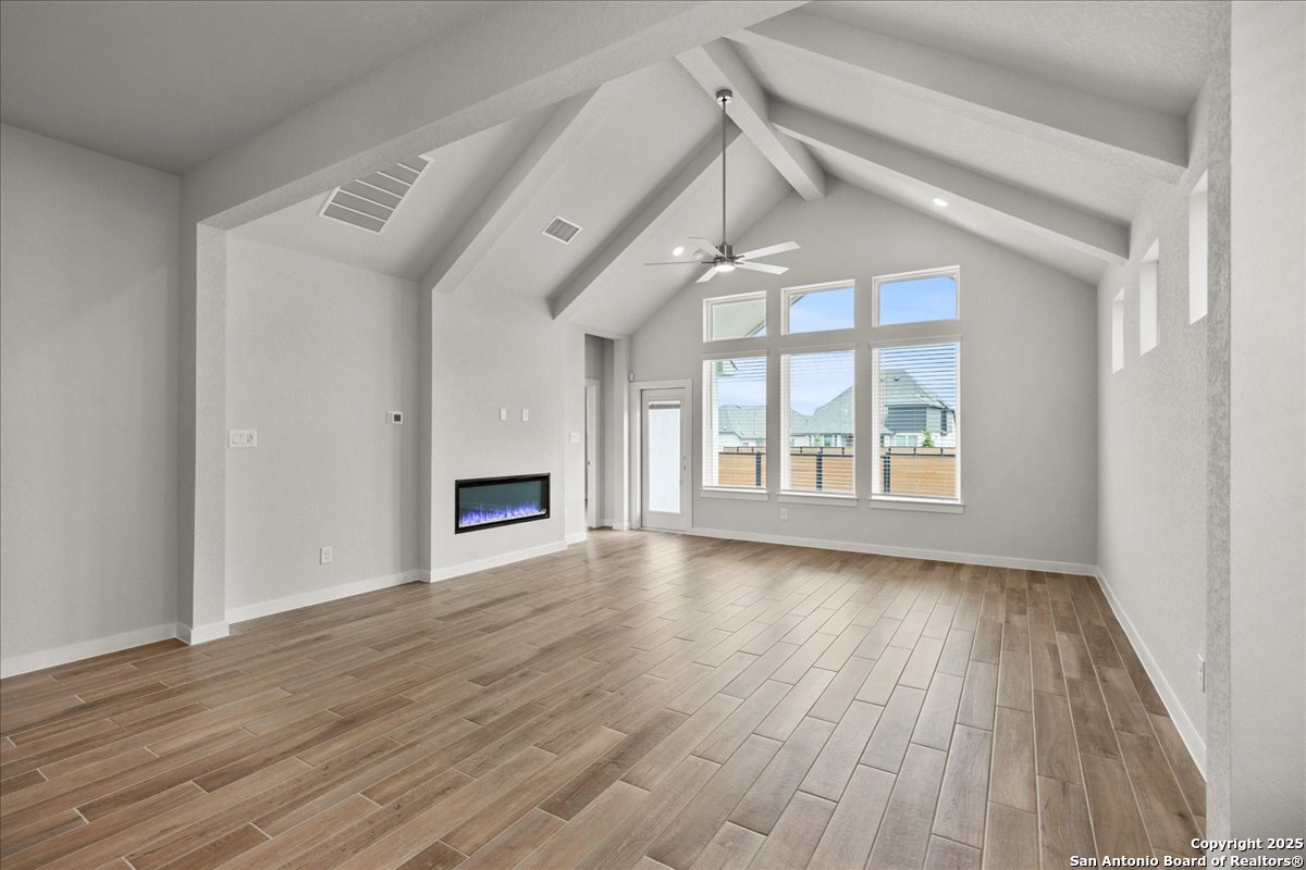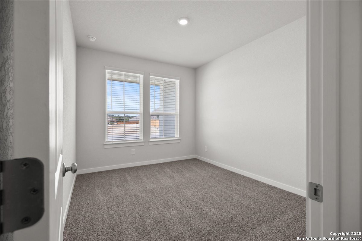 MOVE IN READY!!! Welcome to the AVA by Chesmar Homes- a beautifully designed single-story home that perfectly blends style and versatility. From the moment you step inside, you're greeted by an open-concept layout anchored by a spacious family room with a vaulted ceiling that extends seamlessly to the covered outdoor patio. An electric fireplace adds warmth and charm. The heart of the home is the expansive kitchen, featuring a large island that overlooks both the dining area and family room-ideal for gatherings and everyday living. The luxurious primary suite is thoughtfully tucked away for privacy and showcases a tray ceiling, dual vanities, a spacious walk-in shower, and a massive walk-in closet built for two. Two secondary bedrooms share a full bath in a separate wing, offering both comfort and privacy for family or guests. A versatile flex room offers endless possibilities-use it as a study, playroom, or home gym. The 2-car garage includes a 3-foot extension, providing extra space for storage, tools, or recreational gear.