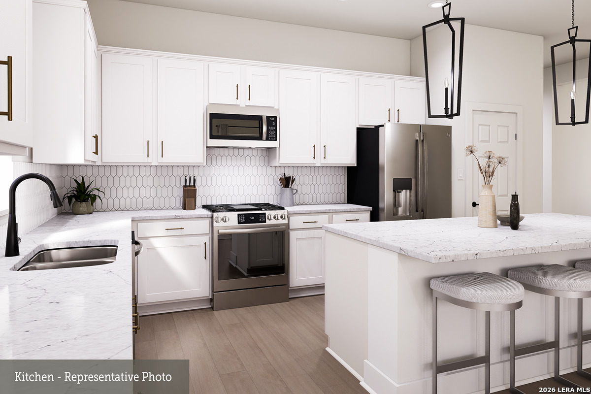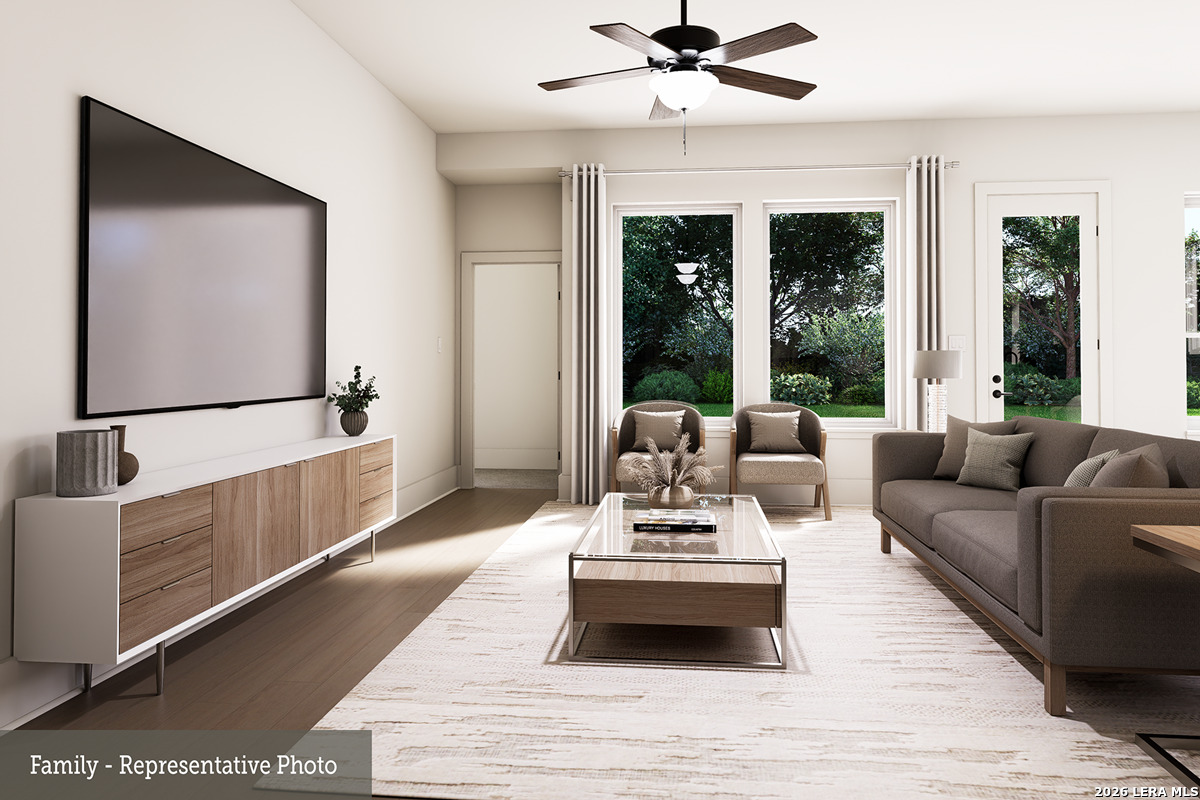 Smart Design Meets Hill Country Living | 1664 Seekat | Cherry Blossom by David Weekley Homes | Meyer Ranch, New Braunfels Now under construction at 1664 Seekat in Meyer Ranch, The Cherry Blossom by David Weekley Homes offers a thoughtfully designed single-story layout that delivers comfort, style, and exceptional value - all on a 50' homesite that opens the door to an attainable price point in one of New Braunfels' most desirable master-planned communities. This charming home features 3 bedrooms, 2 full baths, a dedicated study, and a covered back patio, making it ideal for everyday living, work-from-home flexibility, and relaxed Hill Country evenings outdoors. The open-concept kitchen, dining, and family room create a seamless flow that maximizes both space and natural light. As part of the Texas Series, The Cherry Blossom includes Luxury Plank Vinyl flooring throughout all main living areas, extending the look of wood with the durability today's buyers want. Bedrooms are comfortably carpeted, while tile flooring in baths and the utility room adds both style and function. The kitchen and bathrooms are finished with shaker-style cabinetry and quartz countertops, delivering a clean, timeless aesthetic. The Owner's Retreat is privately located at the back of the home and offers a relaxing escape with a well-appointed bath and generous closet space. Secondary bedrooms are thoughtfully positioned for privacy, while the front study provides a perfect space for remote work, hobbies, or quiet reading. Every Texas Series home at Meyer Ranch comes move-in ready with full yard sod and sprinkler system, gutters, a garage door opener, and 2" faux wood cordless blinds, adding real value and convenience from day one. Located in Meyer Ranch in New Braunfels, Texas, residents enjoy resort-style amenities, scenic Hill Country views, miles of trails, and access to Comal ISD, all just minutes from shopping, dining, and outdoor recreation. If you're searching for a new construction home for sale at 1664 Seekat in New Braunfels, TX that combines smart design, quality finishes, and an attainable price point - The Cherry Blossom is an exceptional opportunity.