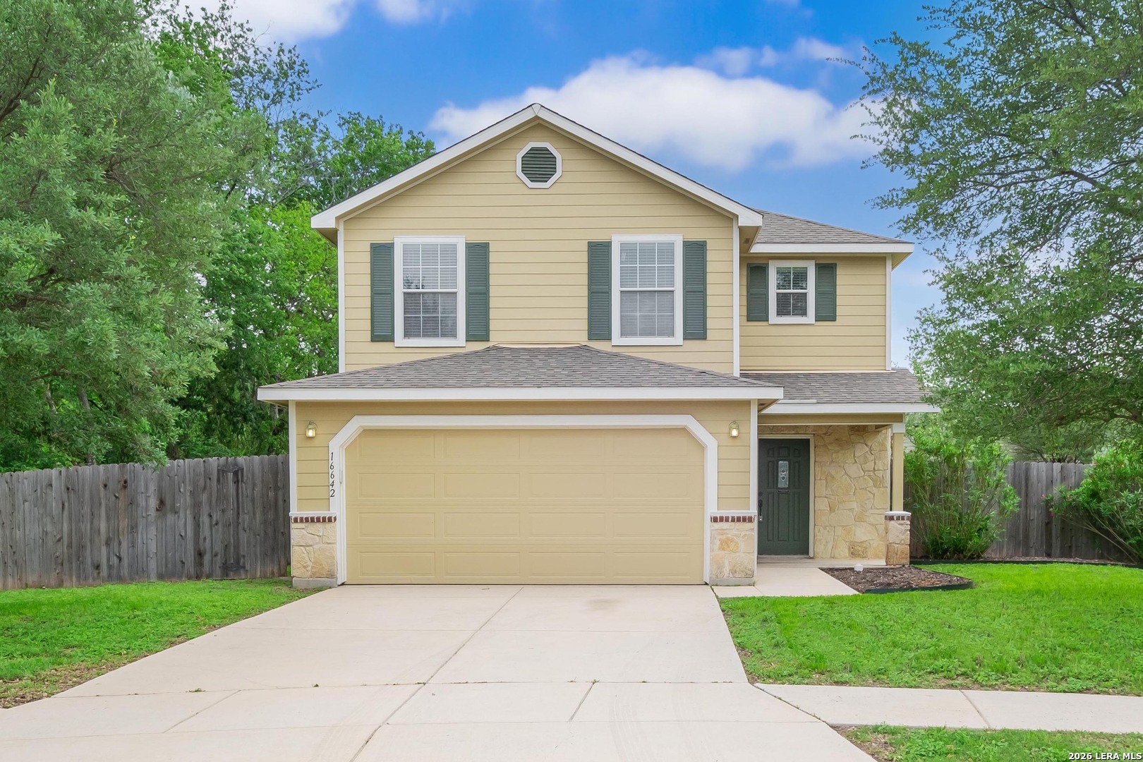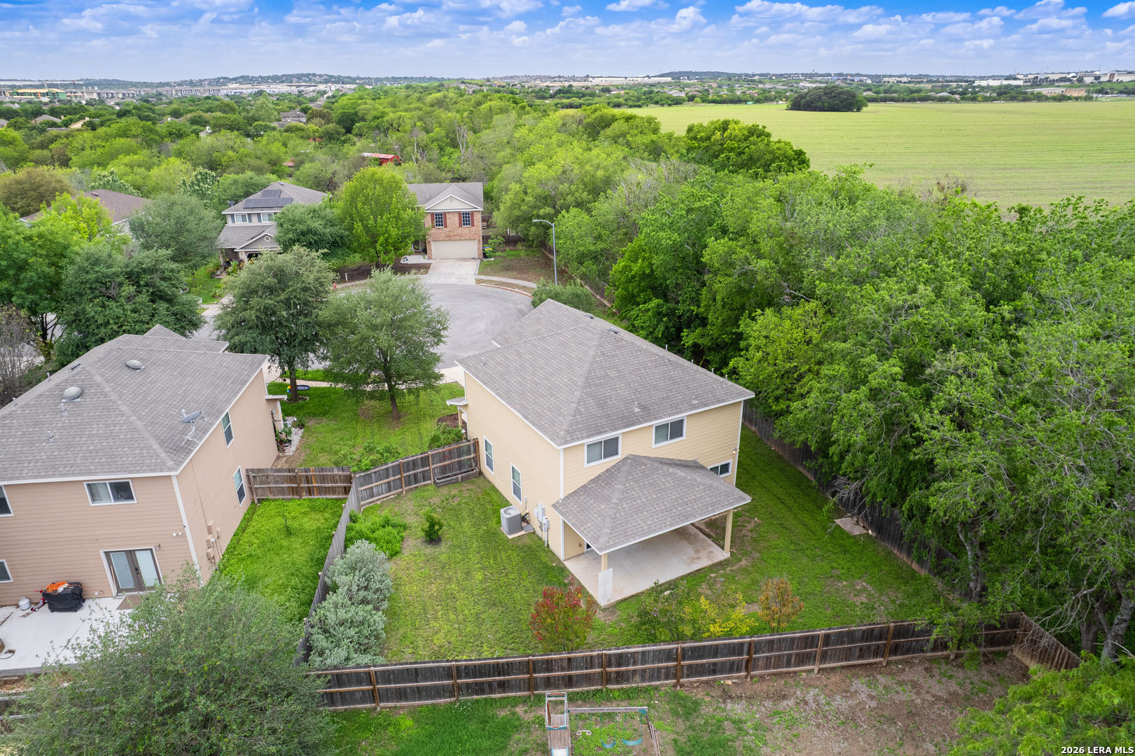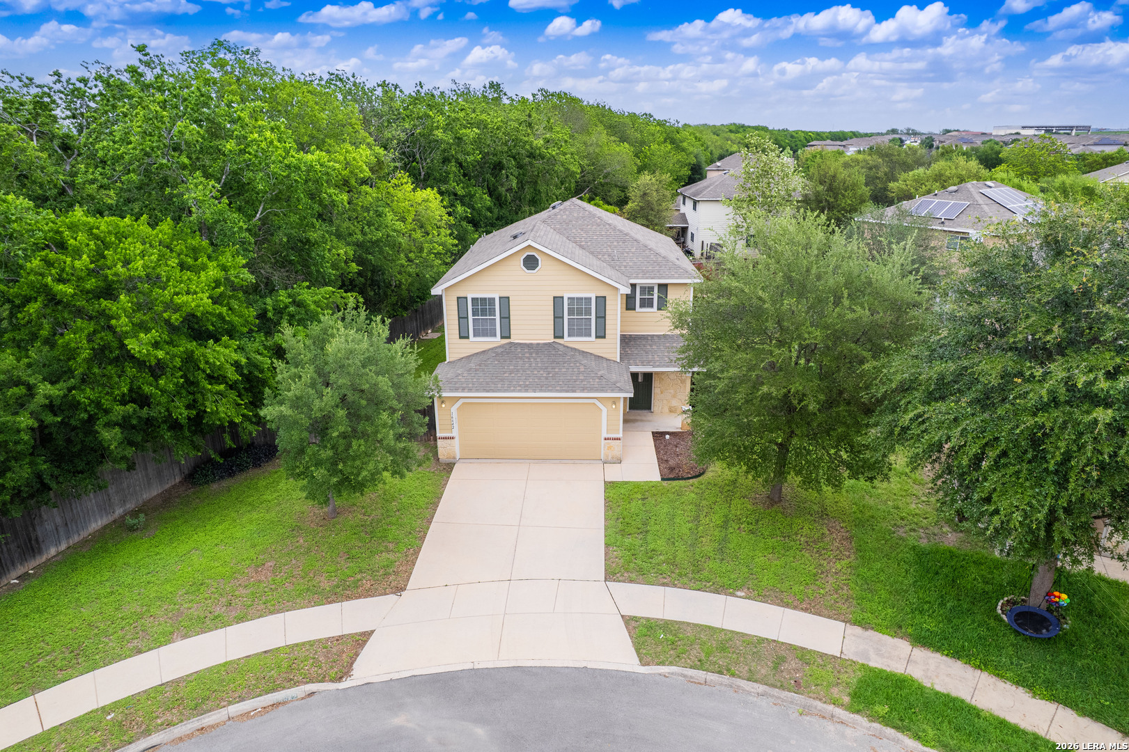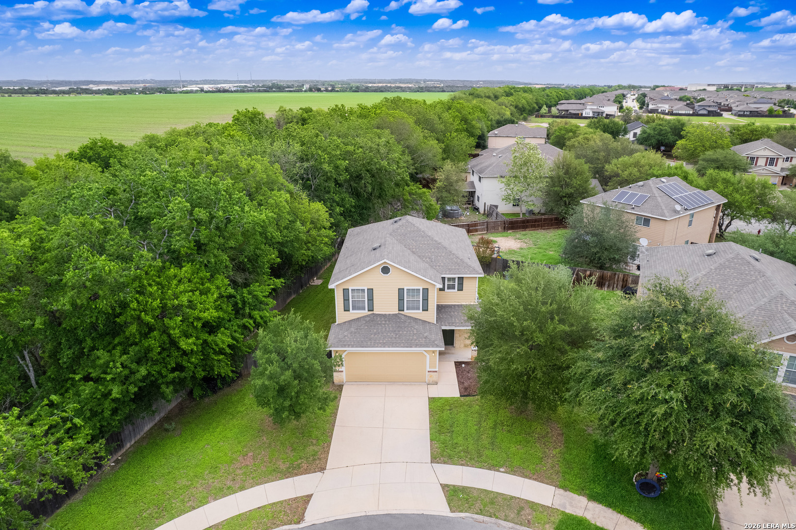 Welcome to 16642 Emerald Bluff, a beautifully maintained one-owner home tucked away at the end of a quiet cul-de-sac on an oversized lot in Selma. This spacious 3-bedroom, 2.5-bath home with a versatile loft offers the perfect blend of comfort, style, and convenience. Step inside to a large, open living area that seamlessly connects to the separate dining room and updated kitchen-ideal for both everyday living and entertaining. The kitchen has been thoughtfully refreshed with updated cabinetry, a stunning backsplash, smooth-top range with double oven, and a built-in microwave. The main level and stairwell feature durable luxury vinyl plank flooring, while the upstairs boasts brand-new frieze carpet for added comfort. The loft provides flexible space perfect for a home office, media room, or play area. The primary suite is generously sized and includes a cozy sitting area-perfect for a reading nook or nursery. The en-suite bathroom offers a relaxing oversized garden tub, double vanity, and a large walk-in closet. Enjoy outdoor living under the 20x10 covered patio overlooking a spacious backyard with plenty of room for entertaining or giving pets space to roam. Conveniently located near shopping, dining, and entertainment at Live Oak Town Center, and within walking distance to Retama Park, known for its live racing, simulcast events, festivals, and annual holiday light displays. Just minutes from Olympia Hills Golf Course, Randolph AFB, and with easy access to BAMC. Zoned to Veterans Memorial High School. The seller proactively had the water and sewer lines tested to make sure no leaks. The report showing the system held and passed is available. This home offers space, updates, and an unbeatable location-schedule your showing today!