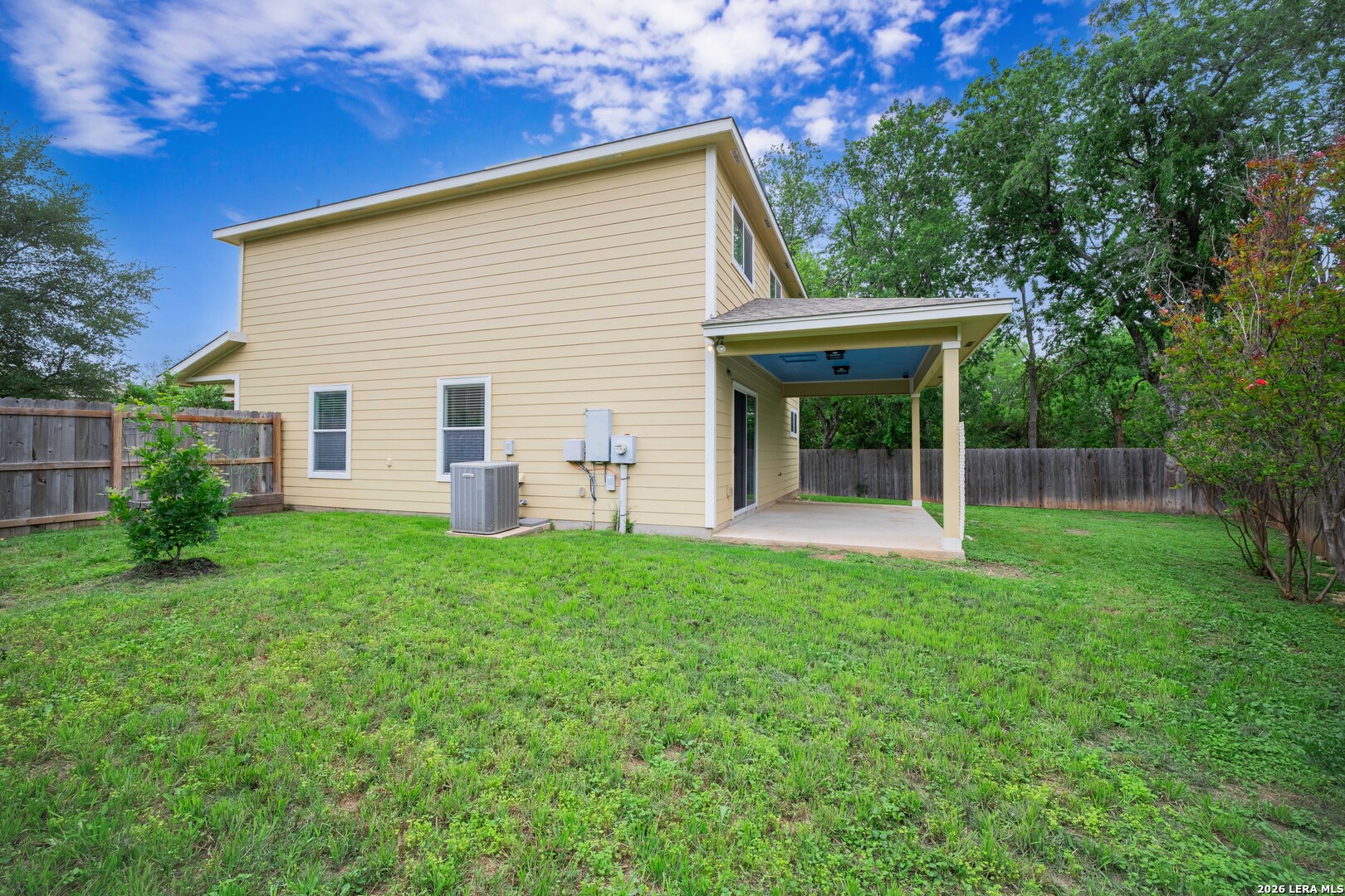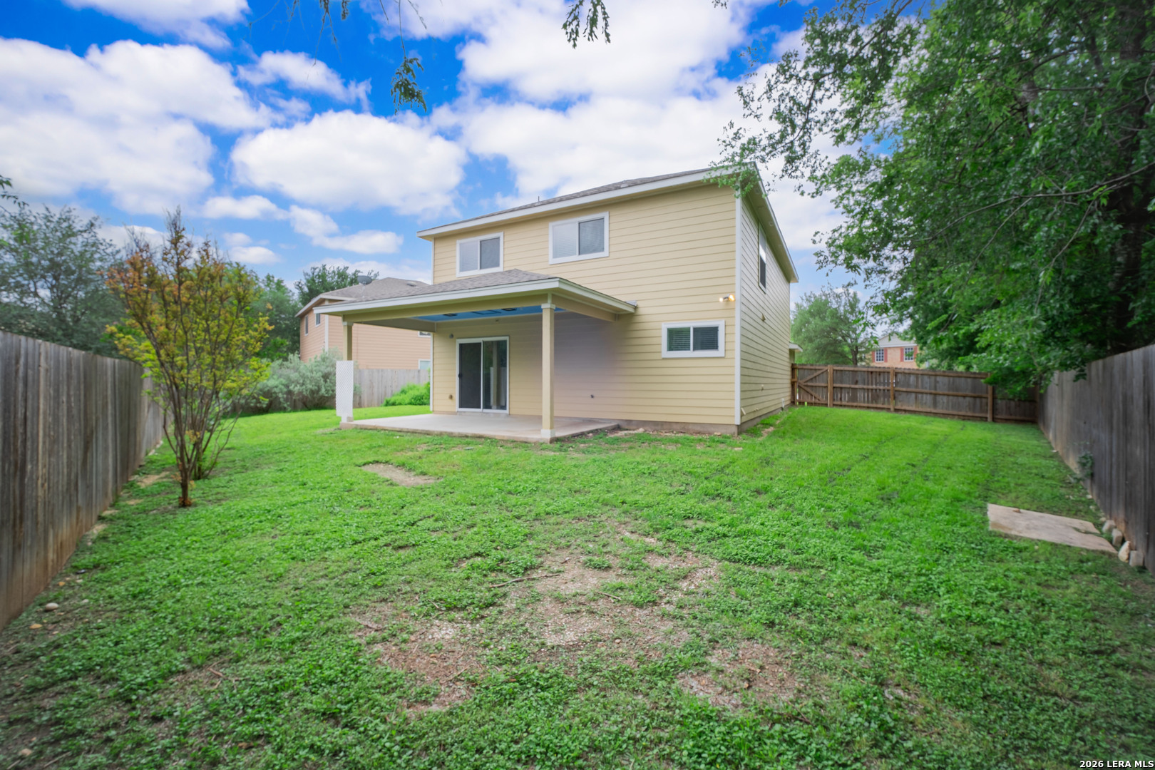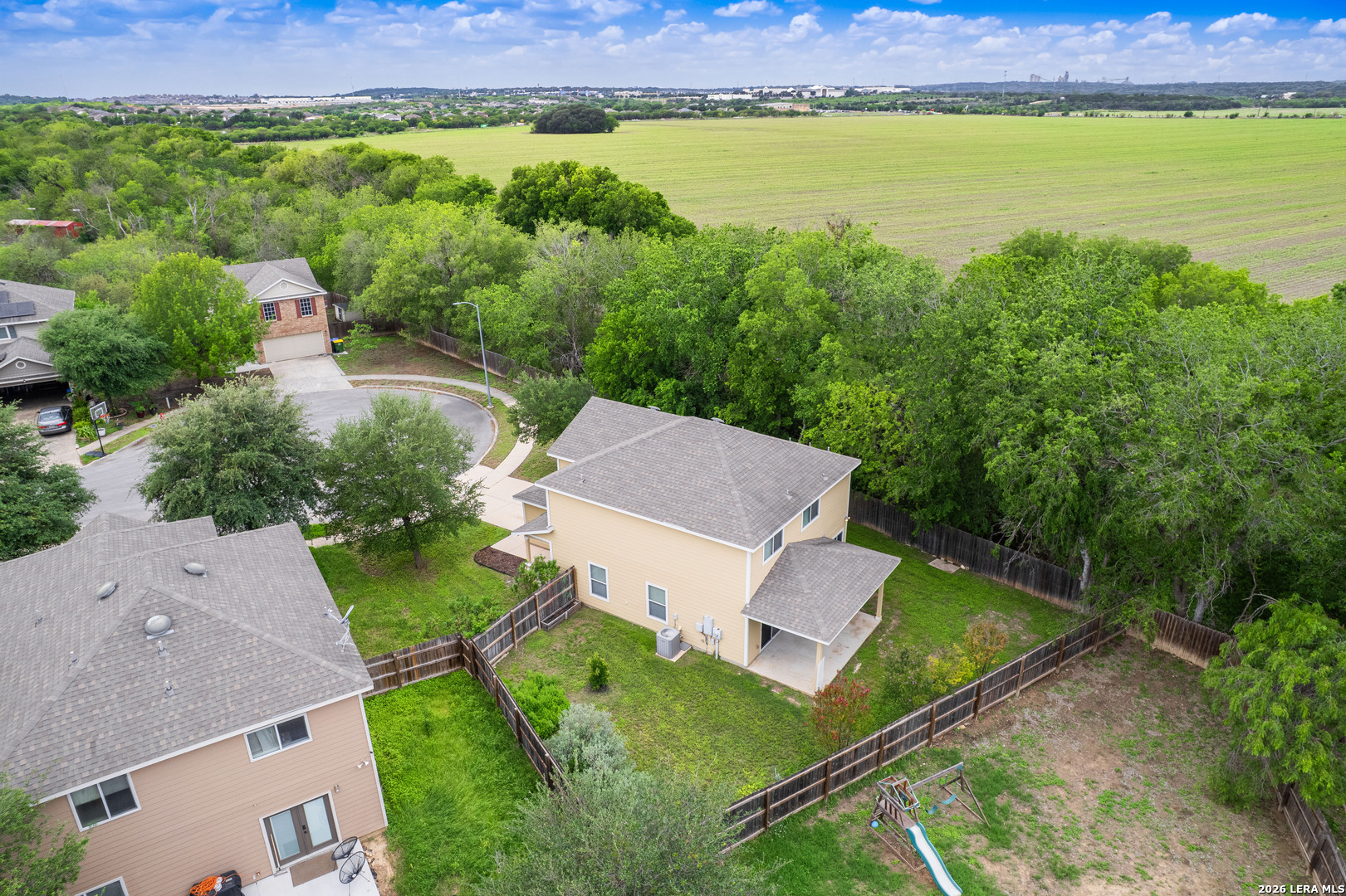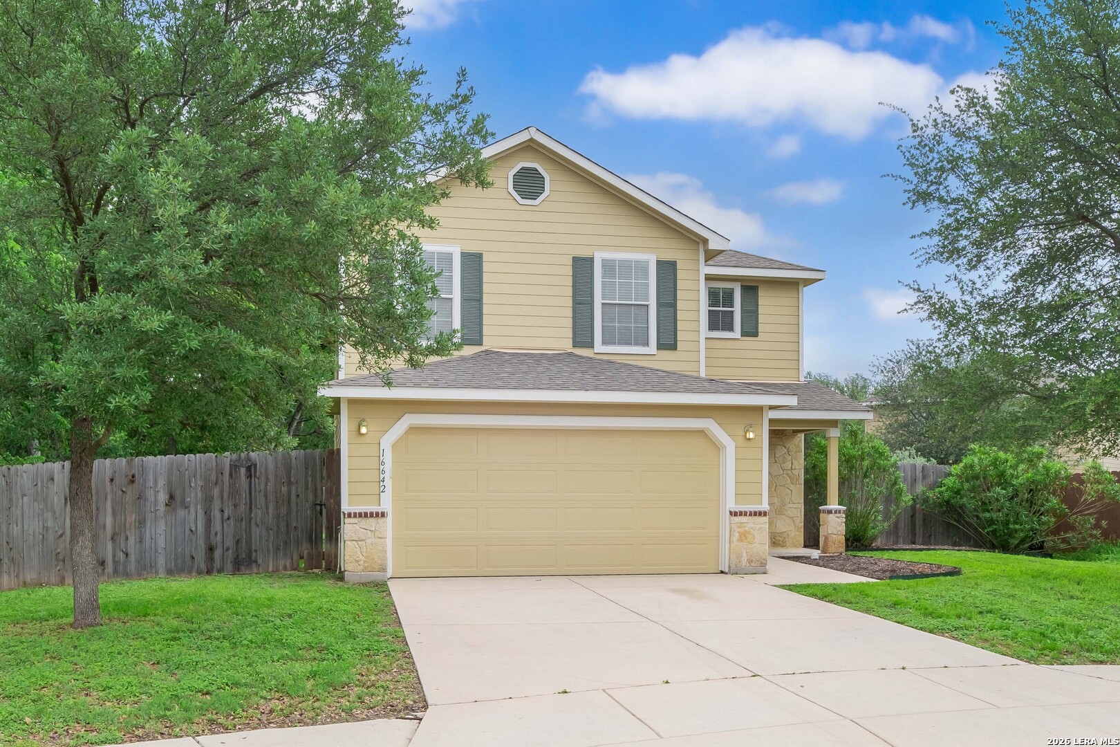 Welcome to 16642 Emerald Bluff, a beautifully maintained one-owner home tucked away at the end of a quiet cul-de-sac on an oversized lot in Selma. This spacious 3-bedroom, 2.5-bath home with a versatile loft offers the perfect blend of comfort, style, and convenience. Step inside to a large, open living area that seamlessly connects to the separate dining room and updated kitchen-ideal for both everyday living and entertaining. The kitchen has been thoughtfully refreshed with updated cabinetry, a stunning backsplash, smooth-top range with double oven, and a built-in microwave. The main level and stairwell feature durable luxury vinyl plank flooring, while the upstairs boasts brand-new frieze carpet for added comfort. The loft provides flexible space perfect for a home office, media room, or play area. The primary suite is generously sized and includes a cozy sitting area-perfect for a reading nook or nursery. The en-suite bathroom offers a relaxing oversized garden tub, double vanity, and a large walk-in closet. Enjoy outdoor living under the 20x10 covered patio overlooking a spacious backyard with plenty of room for entertaining or giving pets space to roam. Conveniently located near shopping, dining, and entertainment at Live Oak Town Center, and within walking distance to Retama Park, known for its live racing, simulcast events, festivals, and annual holiday light displays. Just minutes from Olympia Hills Golf Course, Randolph AFB, and with easy access to BAMC. Zoned to Veterans Memorial High School. The seller proactively had the water and sewer lines tested to make sure no leaks. The report showing the system held and passed is available. This home offers space, updates, and an unbeatable location-schedule your showing today!