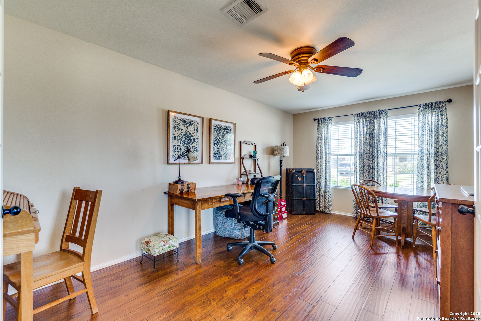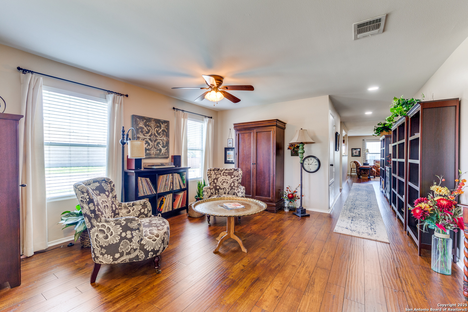 This beautifully maintained home is packed with upgrades and truly move-in ready! Enjoy the warmth of wood laminate flooring and the elegance of a remodeled primary bath. The kitchen features stunning granite countertops, and recent updates include new carpet, faucets, garage door, stove, microwave, dishwasher, toilets, ceiling fans, and lighting throughout. Major improvements offer peace of mind-roof replaced in 2023, A/C in 2022, water pressure valve in 2024, and water heater in 2019. With three spacious bedrooms plus a dedicated study, this home offers flexibility for work or guests. Abundant windows flood the space with natural light, creating a bright, inviting atmosphere. This home has been lovingly cared for and it shows-schedule your showing today. You won't be disappointed!