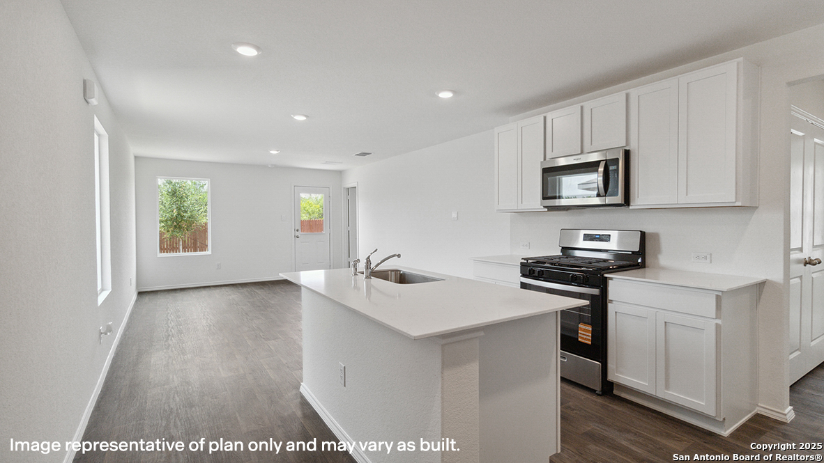 The Atlanta is a charming one-story home featured at Redbird Ranch in San Antonio, TX. Featuring 2 classic front exteriors, this 3 bedroom, 2 bathroom home also offers 1156 square feet of living space and a 2-car garage. A front porch (per plan) welcomes you into the home and opens to the gourmet kitchen which includes quartz counter tops, quality cabinets, stainless steel appliances and an open concept floorplan with the kitchen flowing seamlessly into the dining room and living room. The main bedroom has an attractive ensuite bathroom that features a quartz vanity countertop and quality cabinetry. Enjoy additional storage with a spacious walk-in closet located off of the primary bathroom. Your secondary bedrooms all feature quality carpet flooring and a closet, and can be used as bedrooms, offices, work out spaces or other bonus rooms. The possibilities are endless with The Atlanta floor plan. Additional features include sheet vinyl flooring in entry, living room, and all wet areas, quartz counter tops in all bathrooms and HOME IS CONNECTED base package. Using one central hub that talks to all the devices in your home, you can control the lights, thermostat and locks, all from your cellular device.