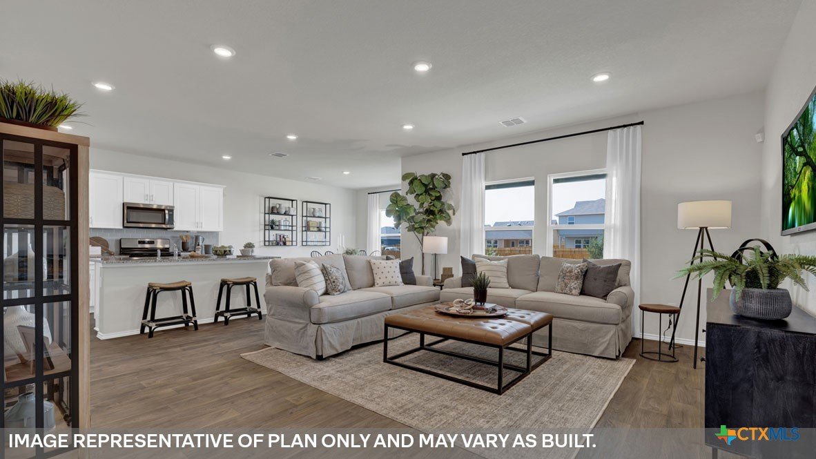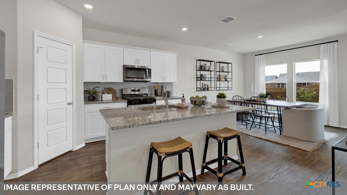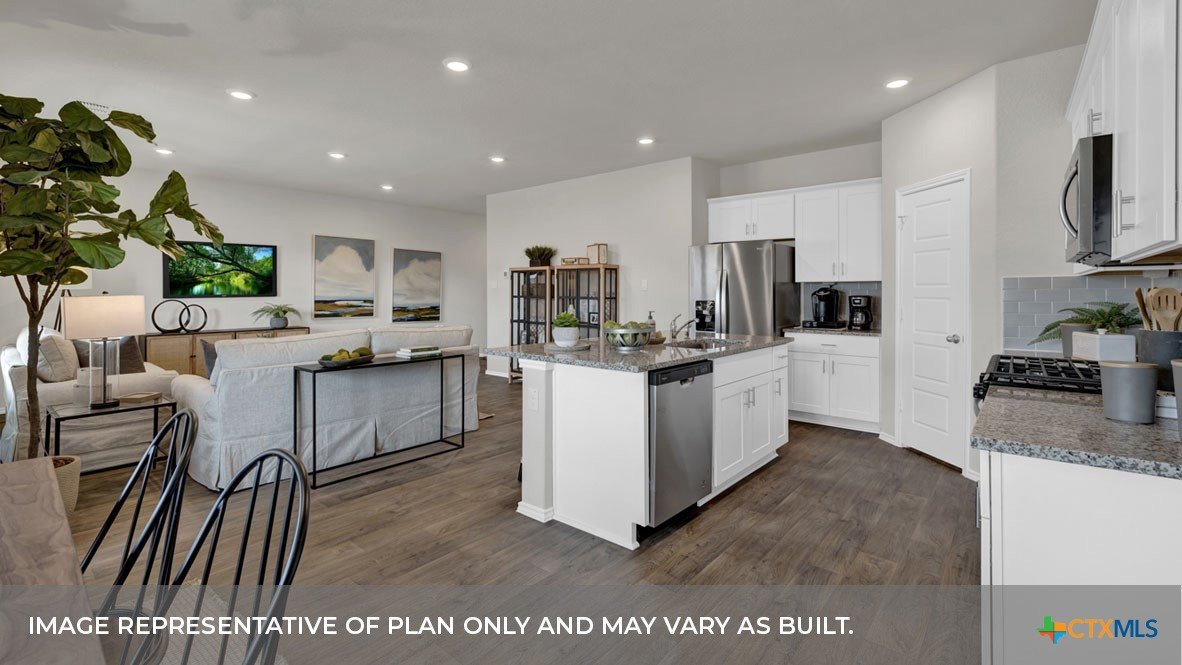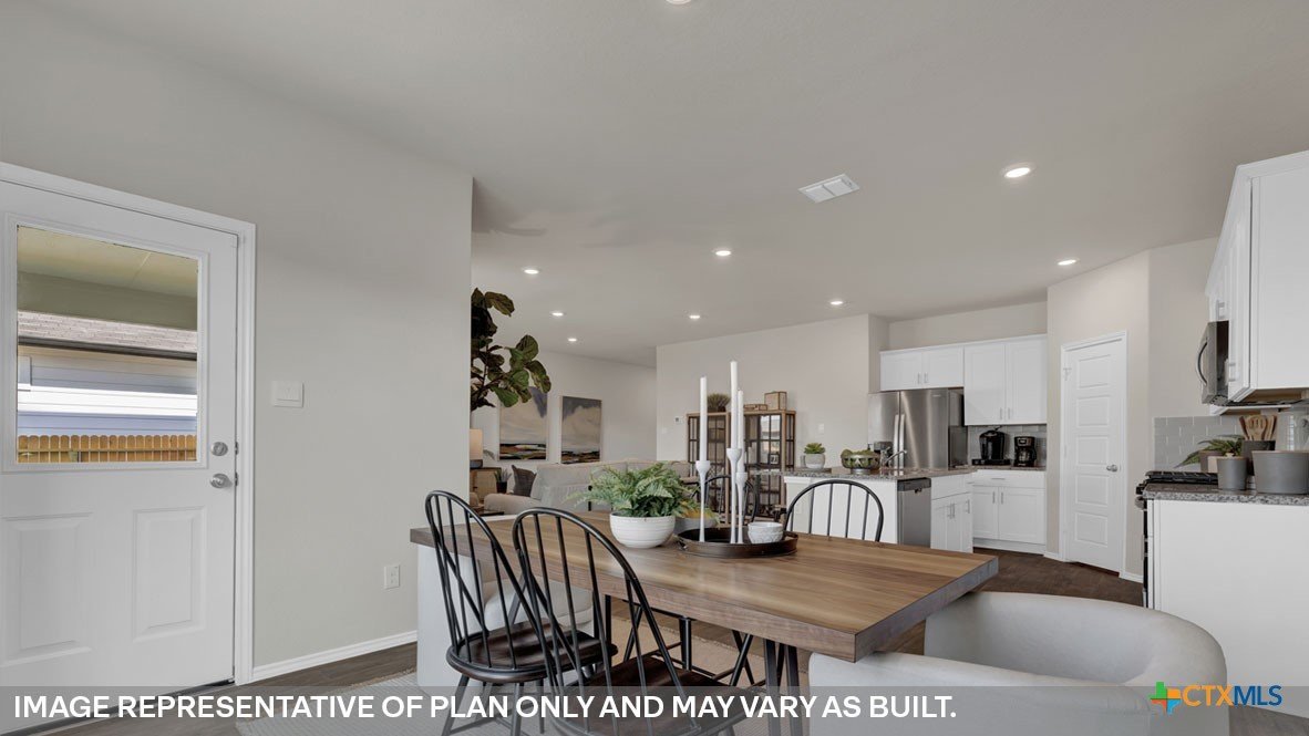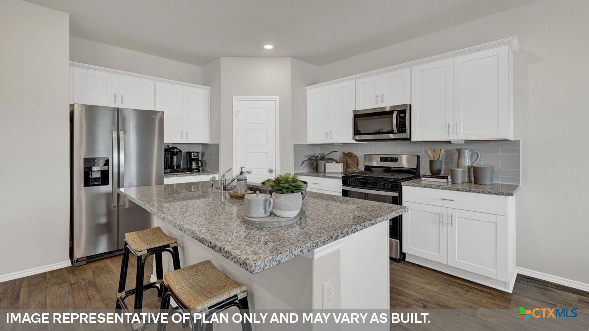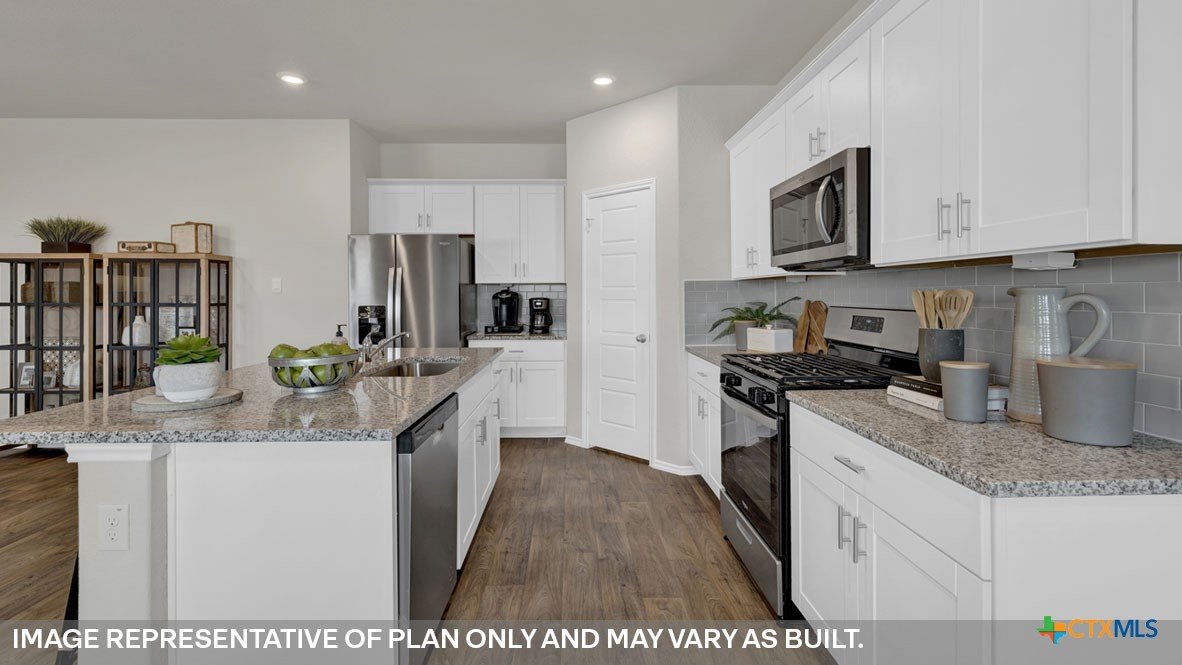 DECEMBER ESTIMATED COMPLETION DATE. THIS IS THE MODEL HOME. INCLUES REFRIGERATOR AND WASHER/DRYER IN ADDITION TO STANDARD APPLIANCE PACAKGE. The Nicole is our largest floorplan available. This two-story home offers 4 bedrooms, 3 bathrooms, a gameroom, and 2 car garage all within 2,473 square feet of comfortable living space. Entering the home, cross the foyer and find a short hallway to the downstairs secondary bedroom and a full bathroom. Continue through the foyer to the heart of the home, the living area. The family room, dining area, and kitchen are open, making entertaining and everyday living a shareable experience for family and friends. The kitchen features granite countertops, a large island with undermount sink, a corner pantry closet, stainless-steel appliances and 36’’ upper cabinets. Moving upstairs, you’ll enter the gameroom. The oversized primary bedroom is tucked away from the gameroom. Stretch out and relax at the end of your day in this spacious and private ensuite. The primary bathroom features a 5’ walk in shower, double sink vanity, separate toilet area with a door, and an enormous walk-in closet. This will be the closet of your dreams, spacious enough to add a dressing island or chaise lounge for a full luxurious experience. The additional upstairs bedrooms and bathroom are located opposite the primary bedroom. The bedrooms feature walk in closets with shelving. Both secondary bathrooms include a shower/tub combination. The utility room is upstairs. The Nicole includes vinyl flooring throughout the common areas of the home, and carpet in the bedrooms, gameroom and stairwell. All our new homes feature a covered back patio, full sod, an irrigation system in the front and back yard, and a 6’ privacy fence around the back yard. This home includes our America’s Smart Home base package, which includes the Front Doorbell, Front Door Deadbolt Lock, Home Hub, Thermostat, and Deako® Smart Switches.
