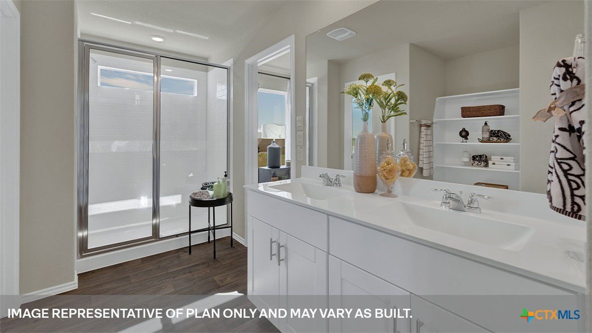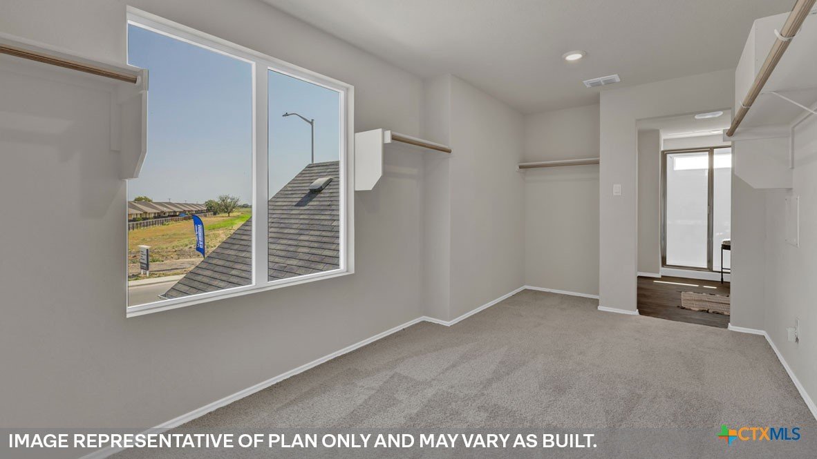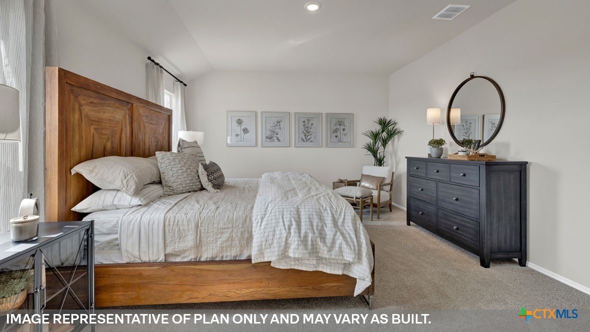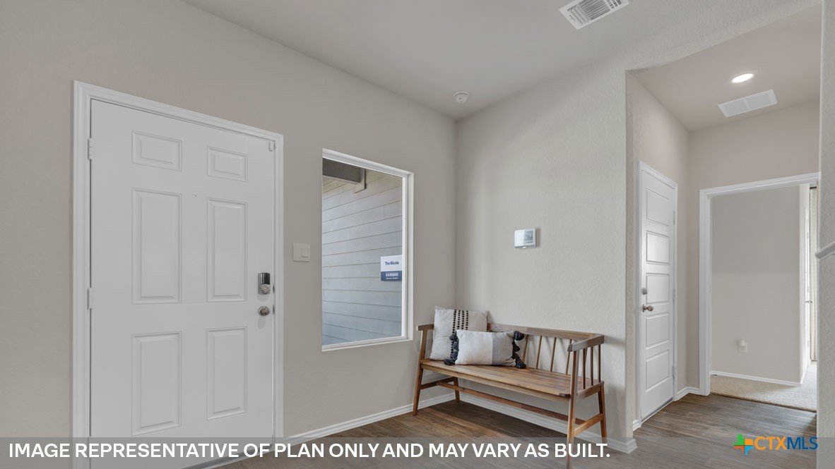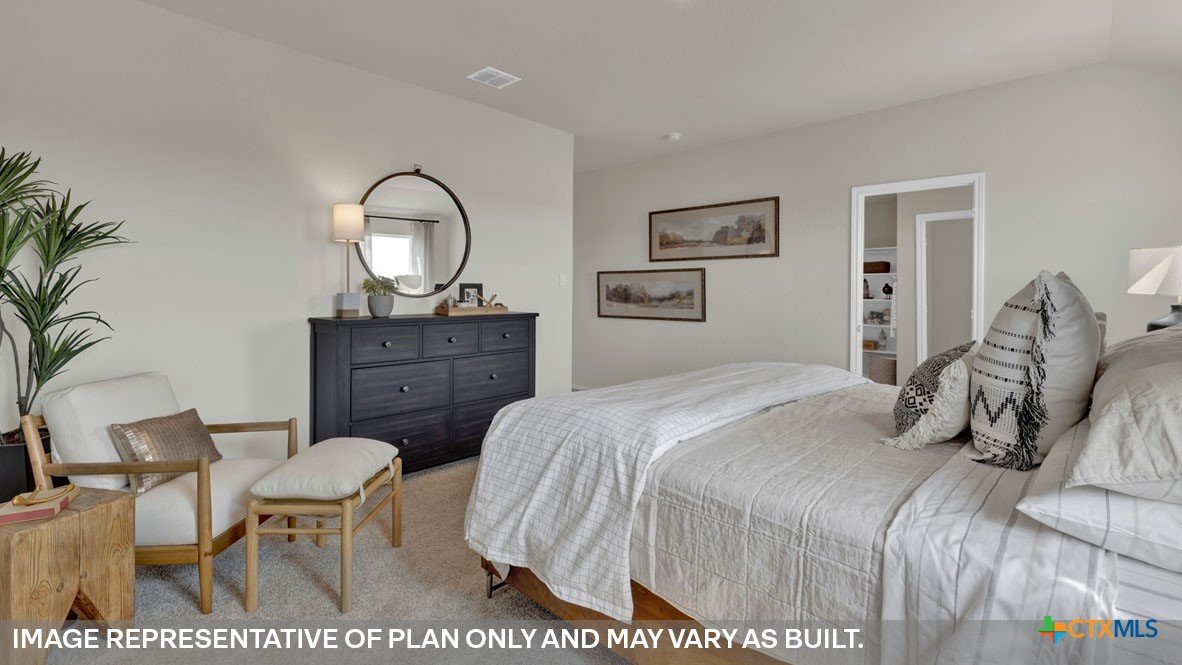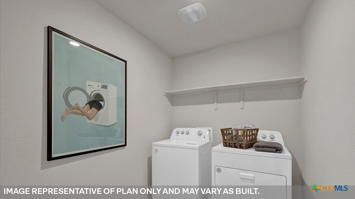 DECEMBER ESTIMATED COMPLETION DATE. THIS IS THE MODEL HOME. INCLUES REFRIGERATOR AND WASHER/DRYER IN ADDITION TO STANDARD APPLIANCE PACAKGE. The Nicole is our largest floorplan available. This two-story home offers 4 bedrooms, 3 bathrooms, a gameroom, and 2 car garage all within 2,473 square feet of comfortable living space. Entering the home, cross the foyer and find a short hallway to the downstairs secondary bedroom and a full bathroom. Continue through the foyer to the heart of the home, the living area. The family room, dining area, and kitchen are open, making entertaining and everyday living a shareable experience for family and friends. The kitchen features granite countertops, a large island with undermount sink, a corner pantry closet, stainless-steel appliances and 36’’ upper cabinets. Moving upstairs, you’ll enter the gameroom. The oversized primary bedroom is tucked away from the gameroom. Stretch out and relax at the end of your day in this spacious and private ensuite. The primary bathroom features a 5’ walk in shower, double sink vanity, separate toilet area with a door, and an enormous walk-in closet. This will be the closet of your dreams, spacious enough to add a dressing island or chaise lounge for a full luxurious experience. The additional upstairs bedrooms and bathroom are located opposite the primary bedroom. The bedrooms feature walk in closets with shelving. Both secondary bathrooms include a shower/tub combination. The utility room is upstairs. The Nicole includes vinyl flooring throughout the common areas of the home, and carpet in the bedrooms, gameroom and stairwell. All our new homes feature a covered back patio, full sod, an irrigation system in the front and back yard, and a 6’ privacy fence around the back yard. This home includes our America’s Smart Home base package, which includes the Front Doorbell, Front Door Deadbolt Lock, Home Hub, Thermostat, and Deako® Smart Switches.
