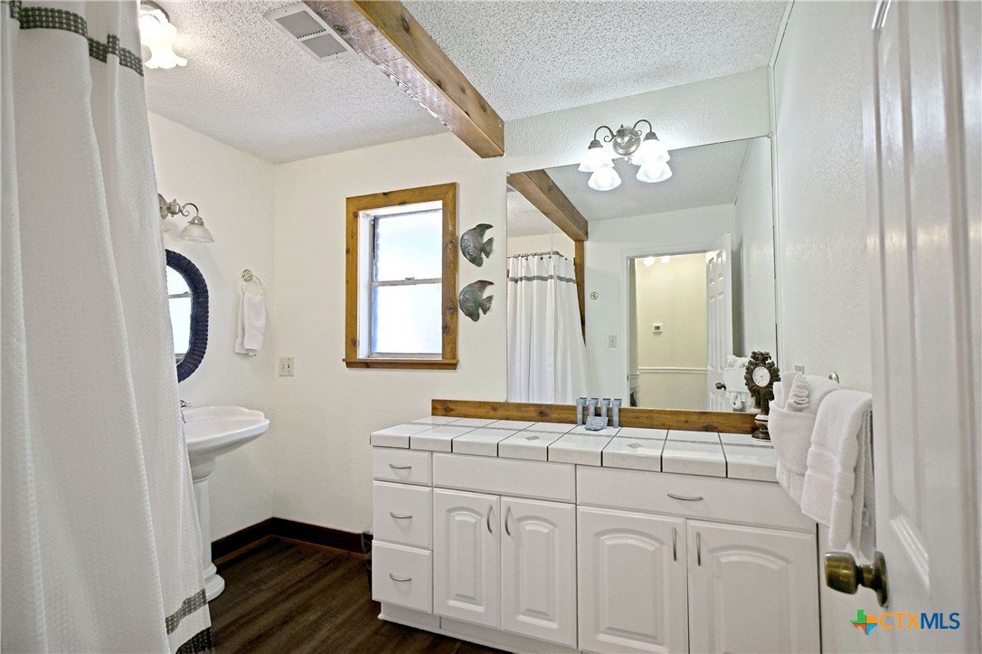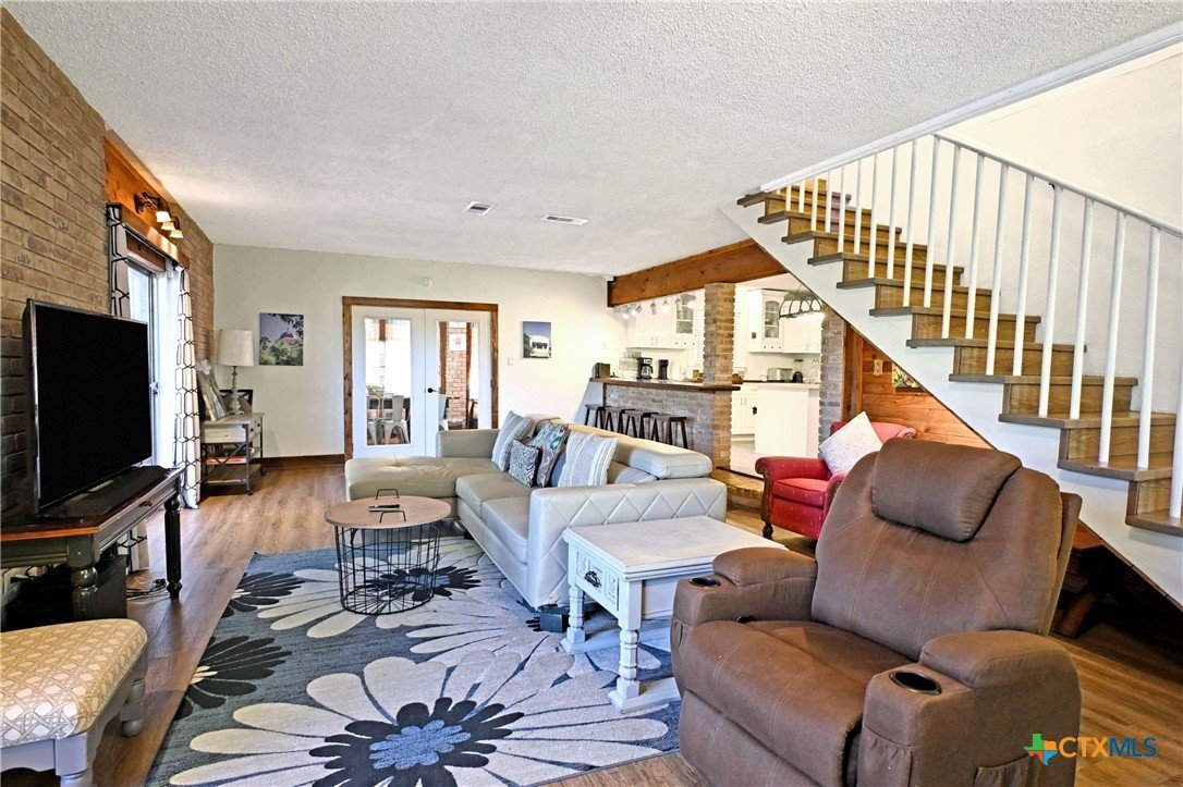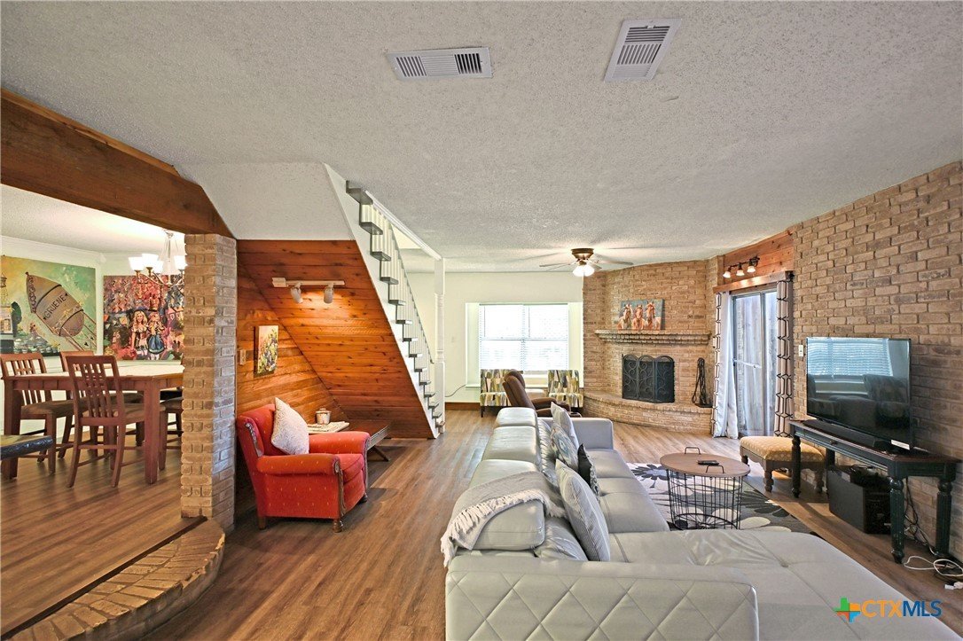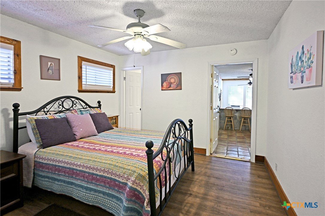 Nestled on the Guadalupe River, this 0.373-acre lot provides true riverfront access, including a private dock for boating, paddling, swimming, or just relaxing by the water. The elevated position of the home gives a great vantage point over the river, while terraces and outdoor decks connect the living space to nature. Outside, the property has a multi-level deck area, great for entertaining, relaxing, or watching the river activity. There are 4 bedrooms and 3 full bathrooms, offering plenty of space for multiple guests. In addition to the main living quarters, there’s an efficiency apartment, which could function as a separate unit (duplex-style) or host extra guests.