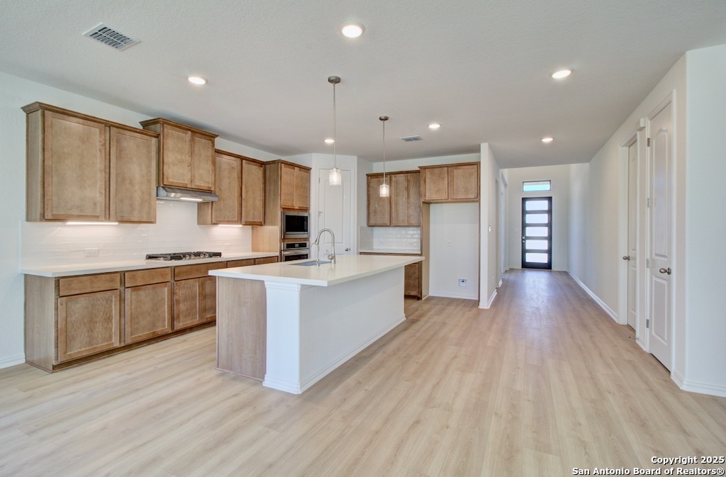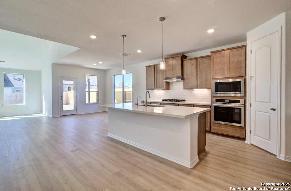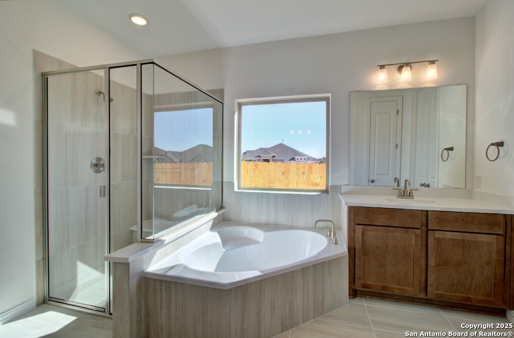 Welcome to the Rosewood plan by DRB Homes, offering modern design and spacious living in the desirable community of Meyer Ranch. This two story home features 4 bedrooms, 3.5 bathrooms, and a private office, providing flexibility for work or study. The upgraded kitchen layout includes stainless steel appliances, a center island, backsplash, and engineered marble countertops. The owner's suite is located on the first floor, creating a private retreat separate from the secondary bedrooms upstairs. The suite features a beautiful bay window and the owner's bathroom includes a separate shower, garden tub, two vanity areas, a water closet, and a window that fills the space with natural light. Upstairs, you will find a spacious game room and additional bedrooms, including an two full bathrooms for added convenience. Meyer Ranch residents enjoy access to award winning, resort style amenities including scenic trails, a playground, and a pool area. Experience comfort, style, and community living at its finest in this exceptional Rosewood home.