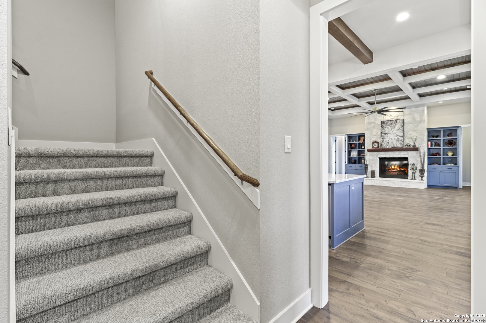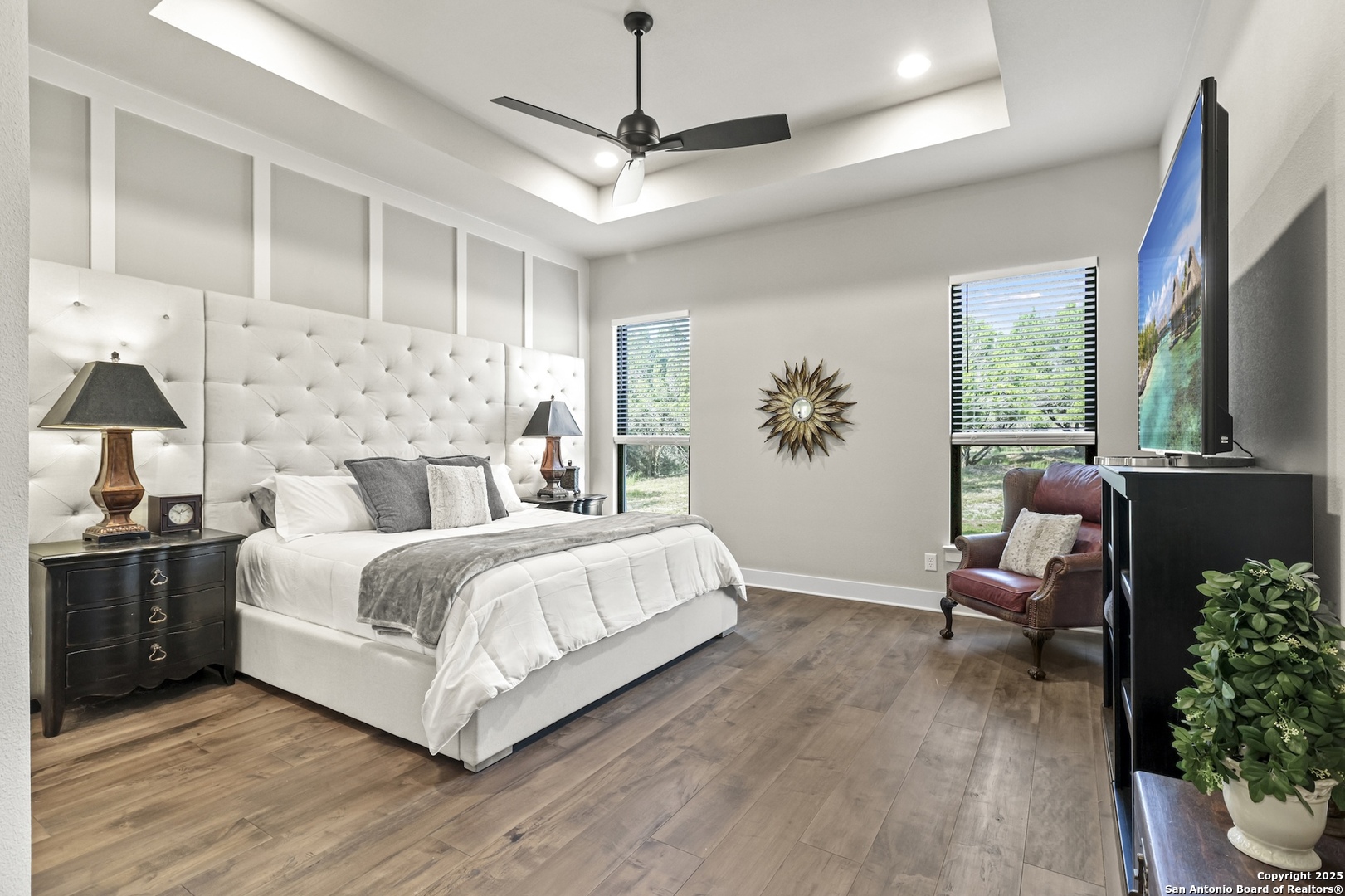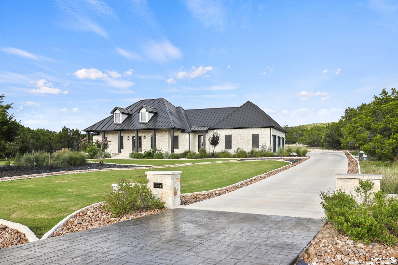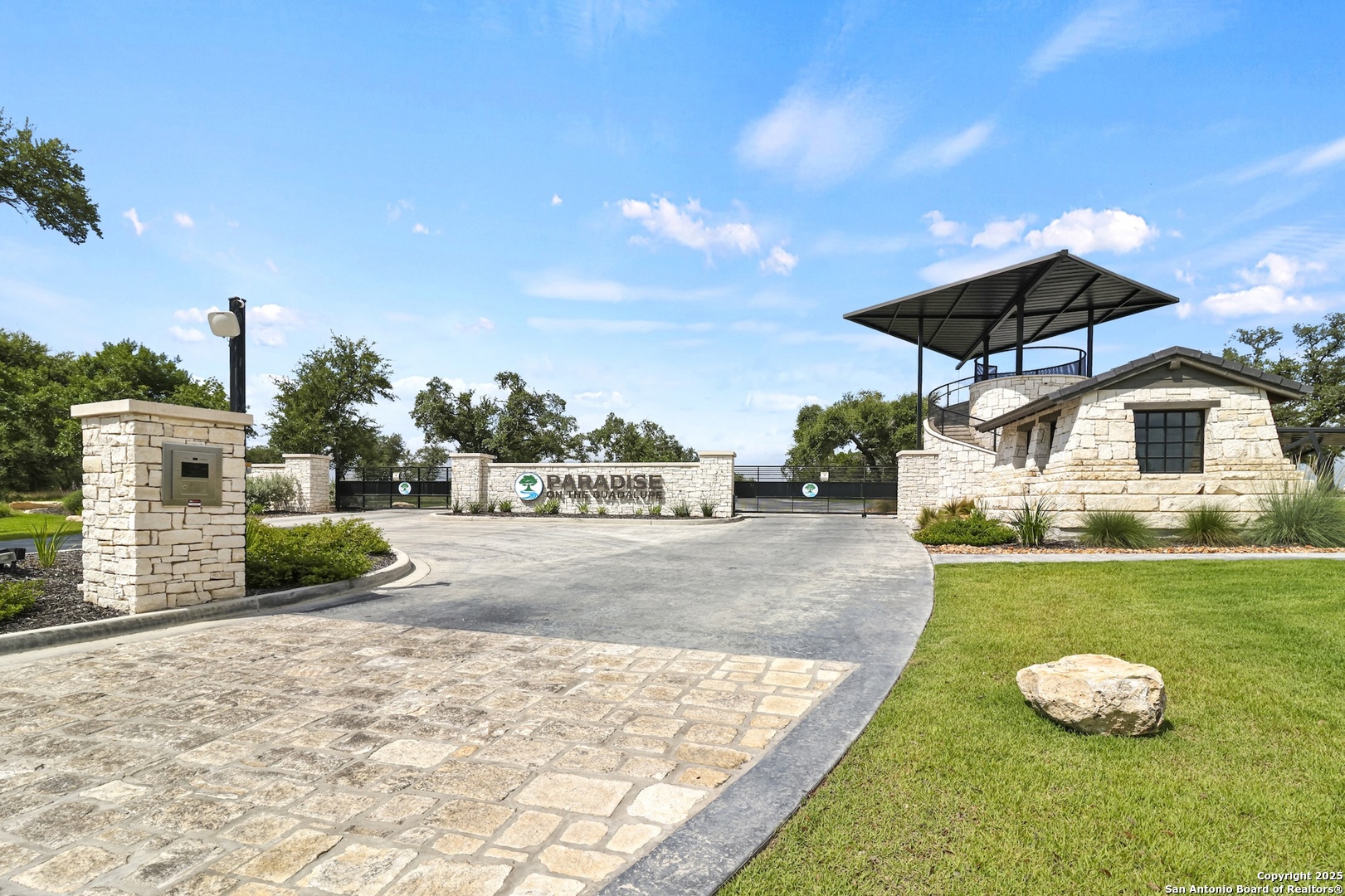 Discover refined Hill Country living at 1687 Noble Trail, located in the sought-after gated community of Paradise on the Guadalupe. Set on over an acre of land, this thoughtfully designed 4-bedroom, 3.5-bath home offers 3,182 square feet of comfortable, well-planned living space. Step inside to find an inviting open floor plan filled with natural light, accented by warm wood-beamed ceilings and quality finishes throughout. The spacious kitchen and living areas are perfect for gatherings, while the upstairs game room provides added space for entertaining, hobbies, or relaxing. The primary suite is tucked away for privacy, featuring a spa-like bathroom with dual vanities, a soaking tub, and a walk-in shower, along with a unique hidden room for extra storage or a personal retreat. Outdoors, enjoy a fully fenced backyard space ideal for relaxing or hosting friends, plus a 3-car garage with room for your vehicles, golf cart, or recreational gear. Paradise on the Guadalupe also offers private river access, hiking and biking trails, and a peaceful, natural setting just minutes from local dining, shopping, and entertainment.