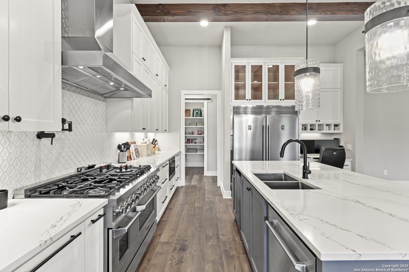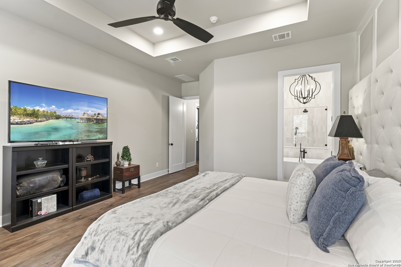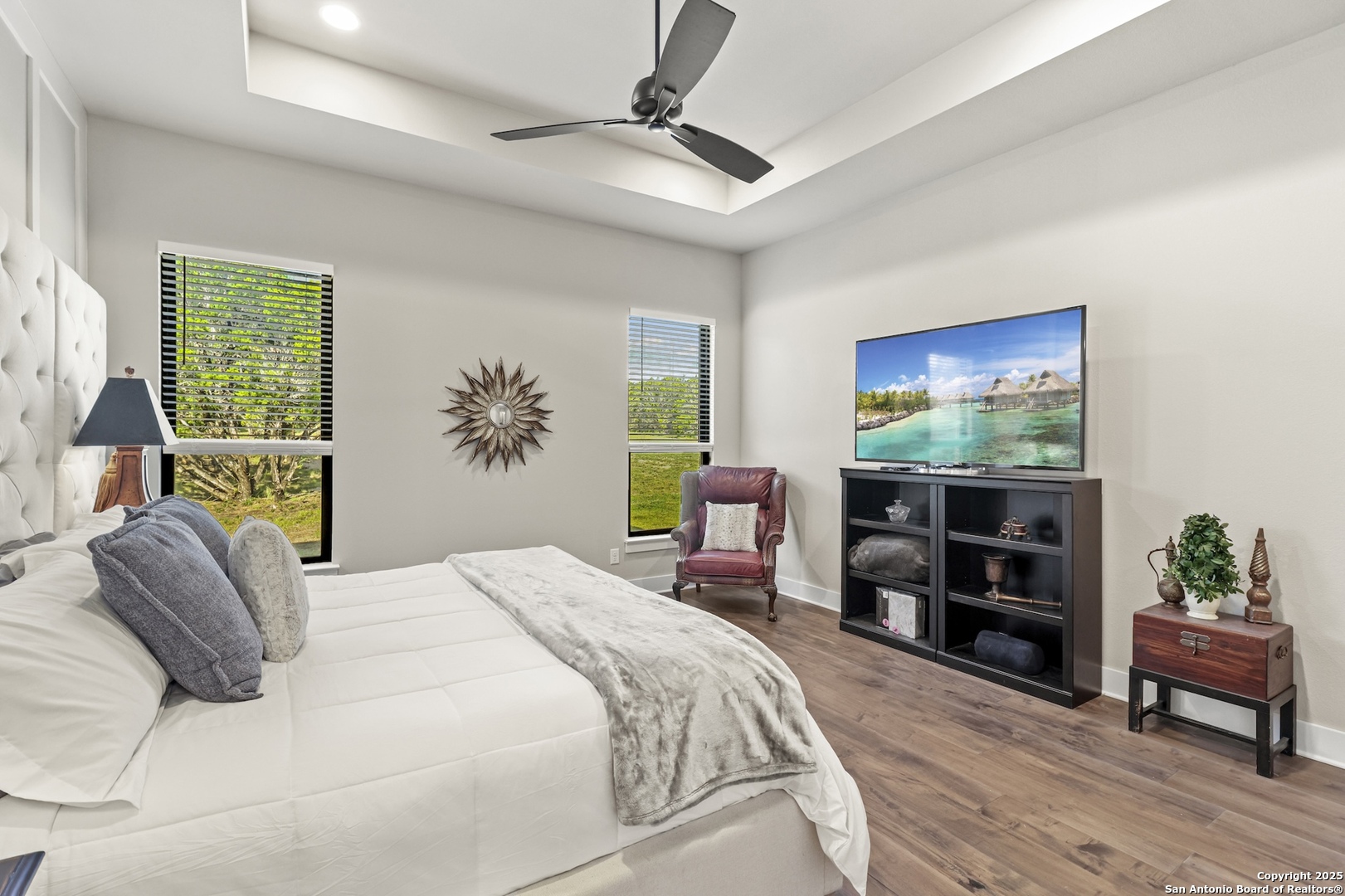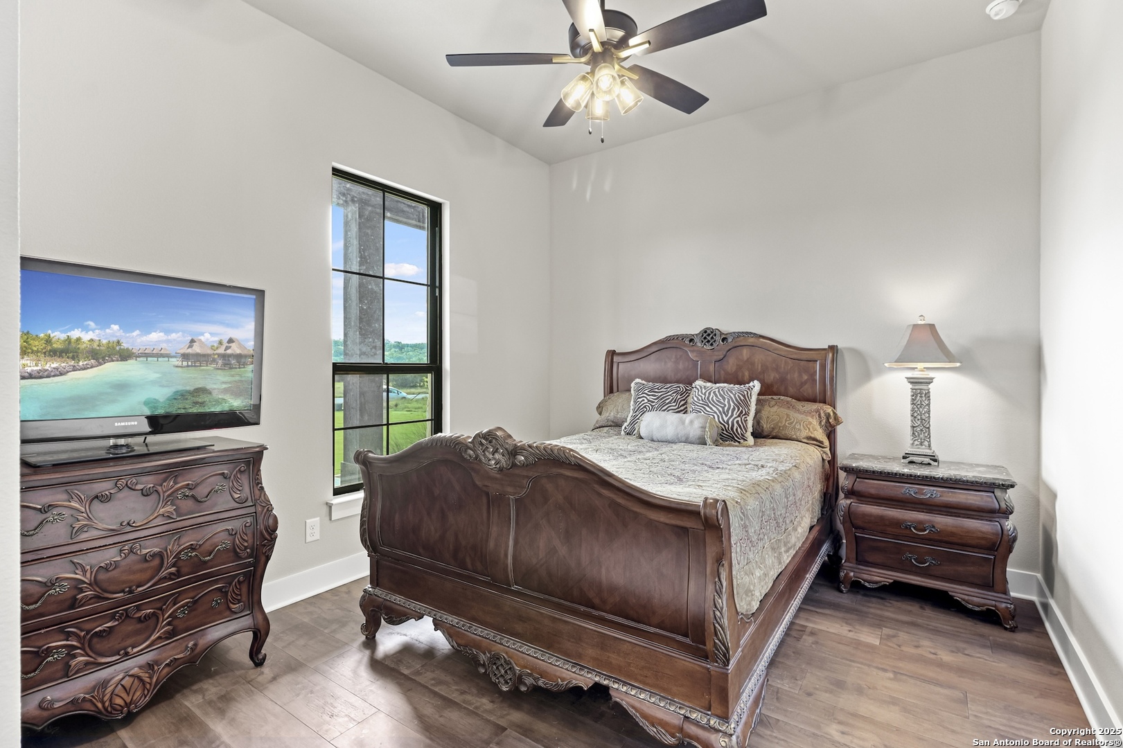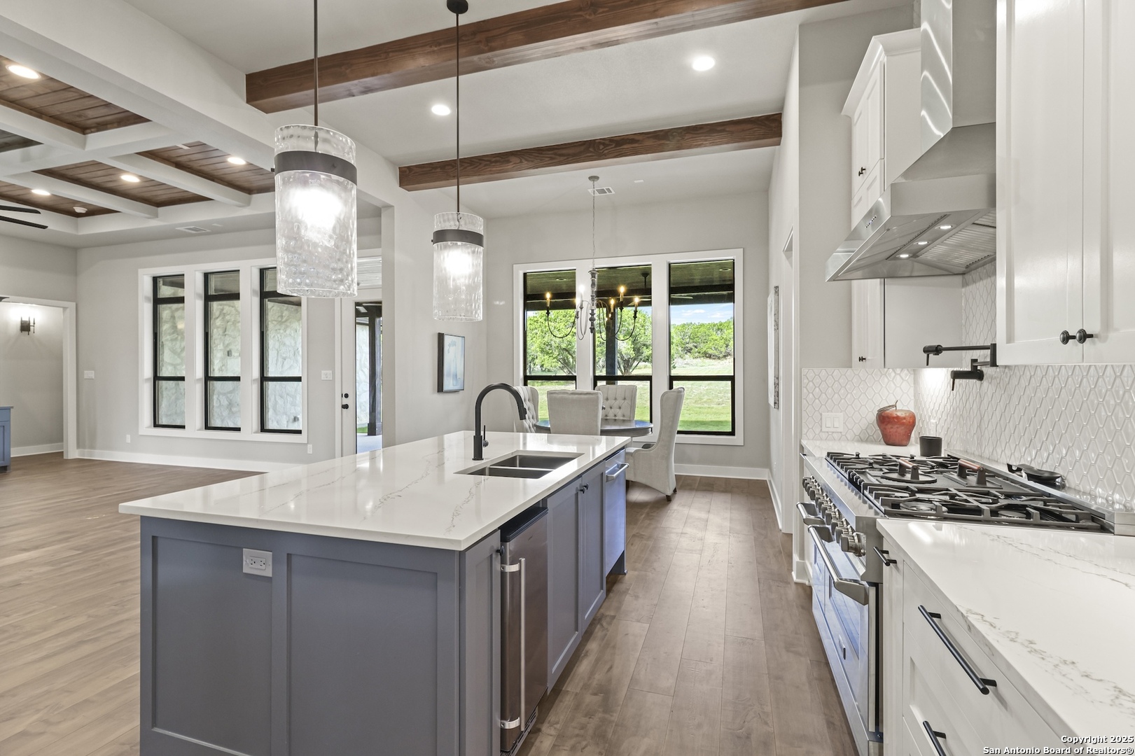 Discover refined Hill Country living at 1687 Noble Trail, located in the sought-after gated community of Paradise on the Guadalupe. Set on over an acre of land, this thoughtfully designed 4-bedroom, 3.5-bath home offers 3,182 square feet of comfortable, well-planned living space. Step inside to find an inviting open floor plan filled with natural light, accented by warm wood-beamed ceilings and quality finishes throughout. The spacious kitchen and living areas are perfect for gatherings, while the upstairs game room provides added space for entertaining, hobbies, or relaxing. The primary suite is tucked away for privacy, featuring a spa-like bathroom with dual vanities, a soaking tub, and a walk-in shower, along with a unique hidden room for extra storage or a personal retreat. Outdoors, enjoy a fully fenced backyard space ideal for relaxing or hosting friends, plus a 3-car garage with room for your vehicles, golf cart, or recreational gear. Paradise on the Guadalupe also offers private river access, hiking and biking trails, and a peaceful, natural setting just minutes from local dining, shopping, and entertainment.