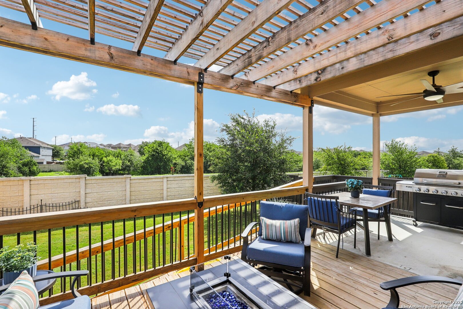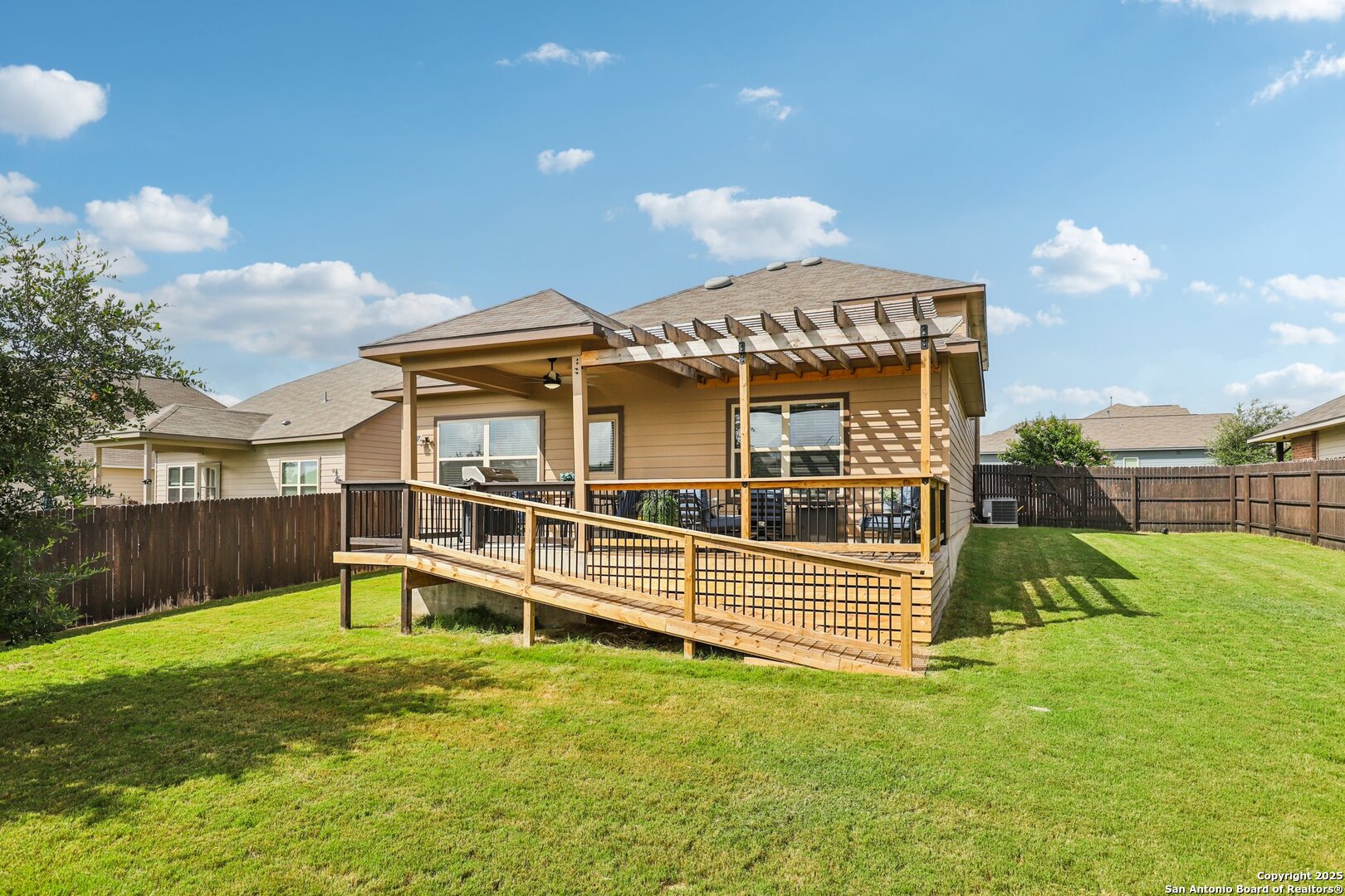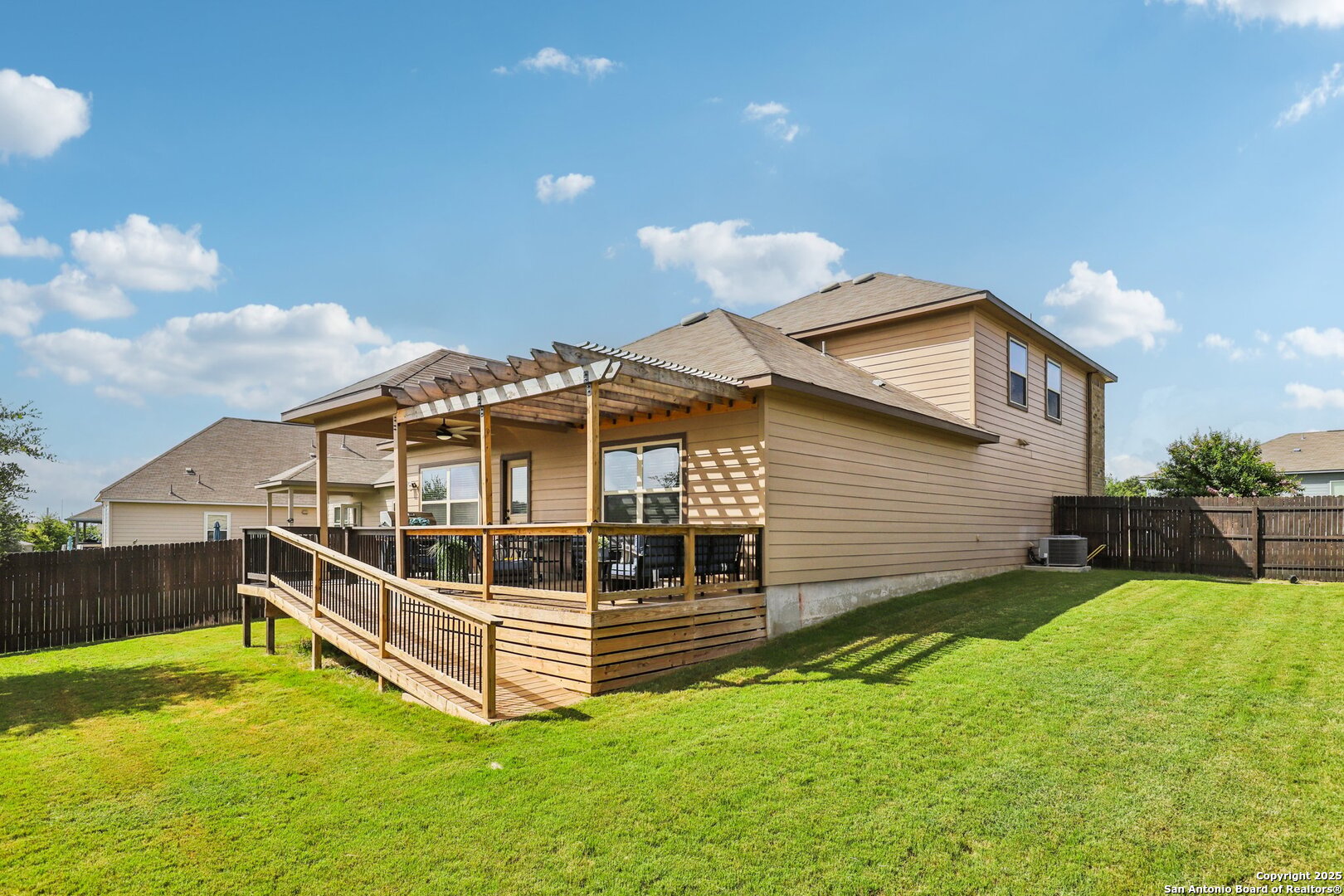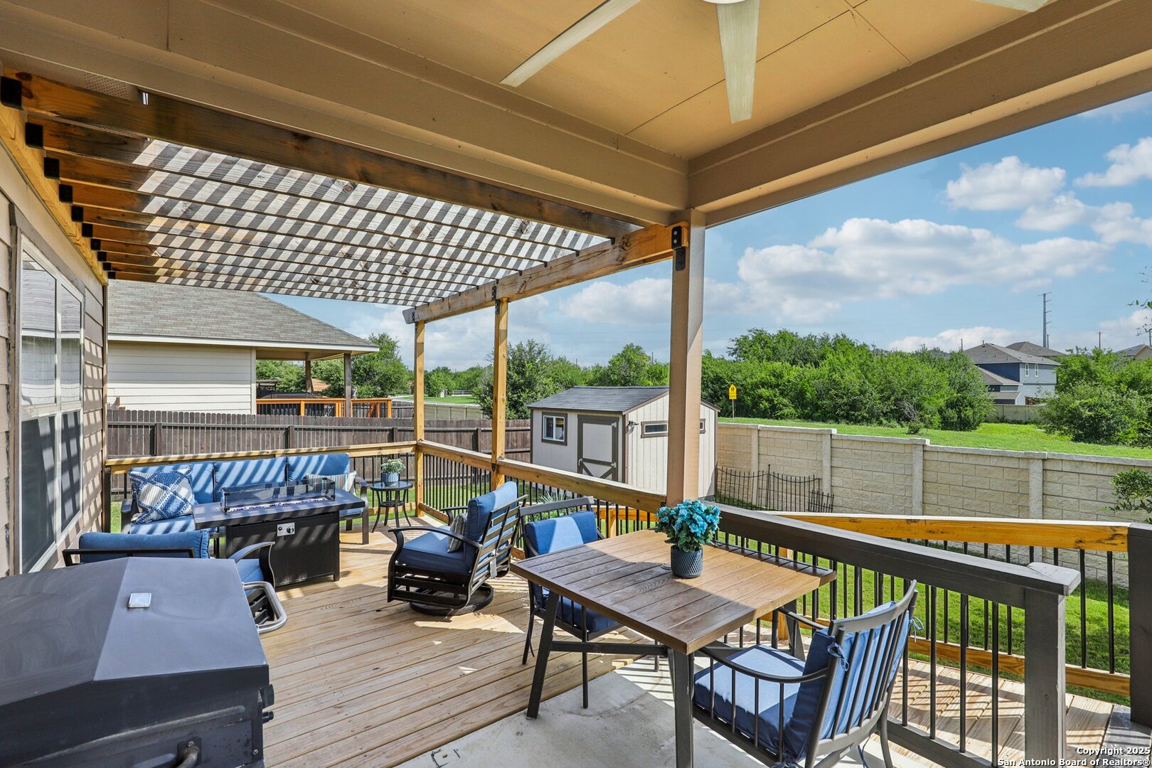 Seller offering $5,000 towards closing costs with an acceptable offer! Step into sophistication with this stunning two-story residence that seamlessly blends elegance with modern functionality. The impressive entrance and grand foyer invite you into this beautifully designed home, setting the stage for what lies ahead. As you enter, you'll discover a bright study/office featuring double glass doors, perfect for privacy and productivity. The spacious dining room, adorned with classic wainscoting, provides an inviting setting for entertaining family and friends. The heart of the home is the gourmet kitchen, boasting ample cabinetry, gleaming granite countertops, and top-of-the-line stainless steel appliances, including a gas range. The breakfast bar and cozy breakfast area make this space an absolute delight for morning gatherings. The family room is a haven of natural light, thanks to large windows that overlook the beautifully landscaped backyard. The main level features a convenient half bath, and just a few steps away, the luxurious primary bedroom awaits. With a custom walk-in closet and a lavish en-suite bath highlighting a walk-in shower, this space serves as your personal retreat, away from the hustle and bustle. Upstairs, discover three additional spacious bedrooms that offer plush living spaces for family or guests. The well-appointed hall bath, featuring double sinks and a combination tub/shower, ensures convenience for everyone. The upper level boasts a versatile media room, ideal for movie nights, gaming, or relaxing with friends. Plus, a dedicated hall alcove computer area provides a perfect spot for homework or remote work, ensuring functionality throughout the home. The covered patio and expansive deck are perfect for alfresco dining or simply enjoying tranquil evenings under the stars. The fenced backyard, complete with a storage shed, offers ample room for outdoor activities. Nestled within a friendly subdivision, this gem comes with access to a playground, basketball court and a swimming pool, making it the perfect place to relax and unwind during those hot summer days. Don't miss the opportunity.