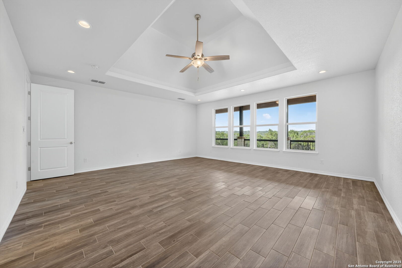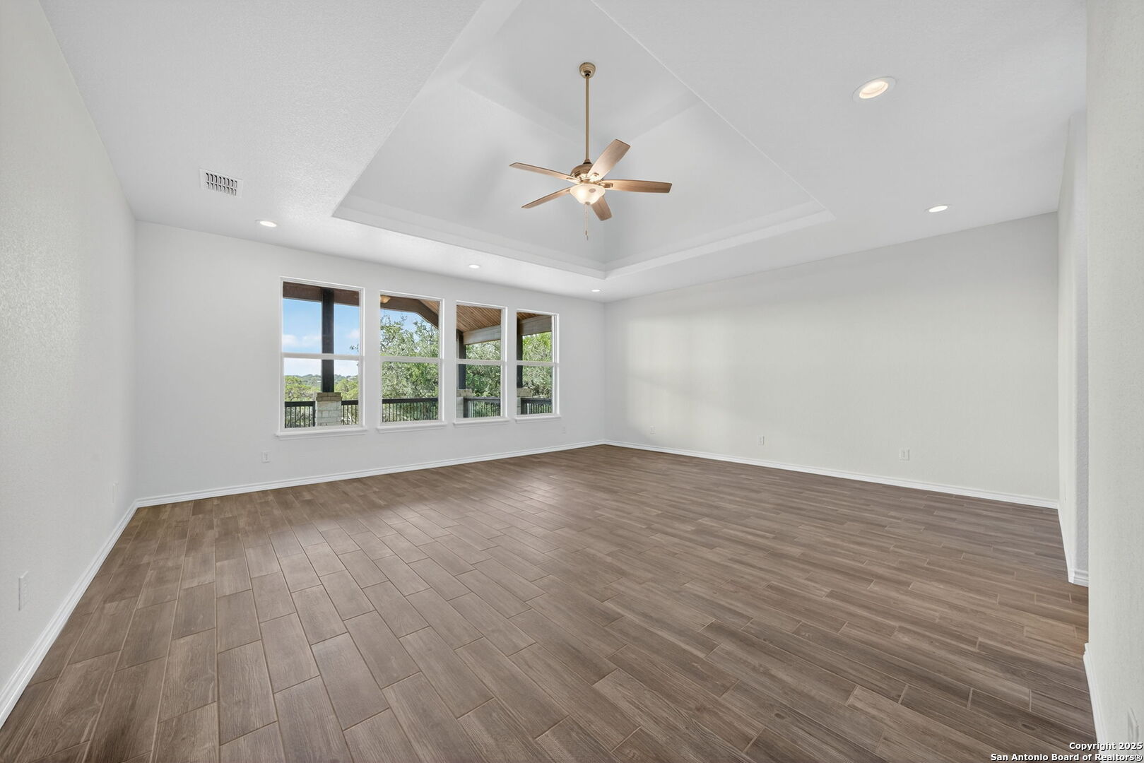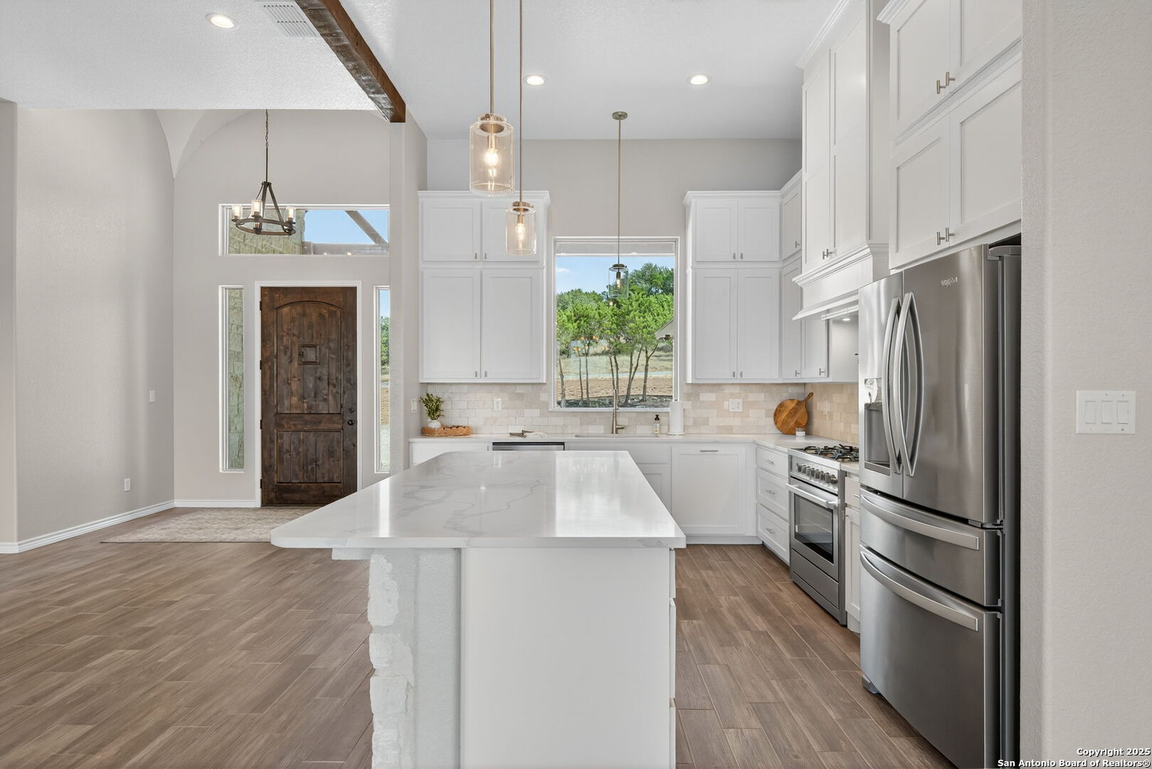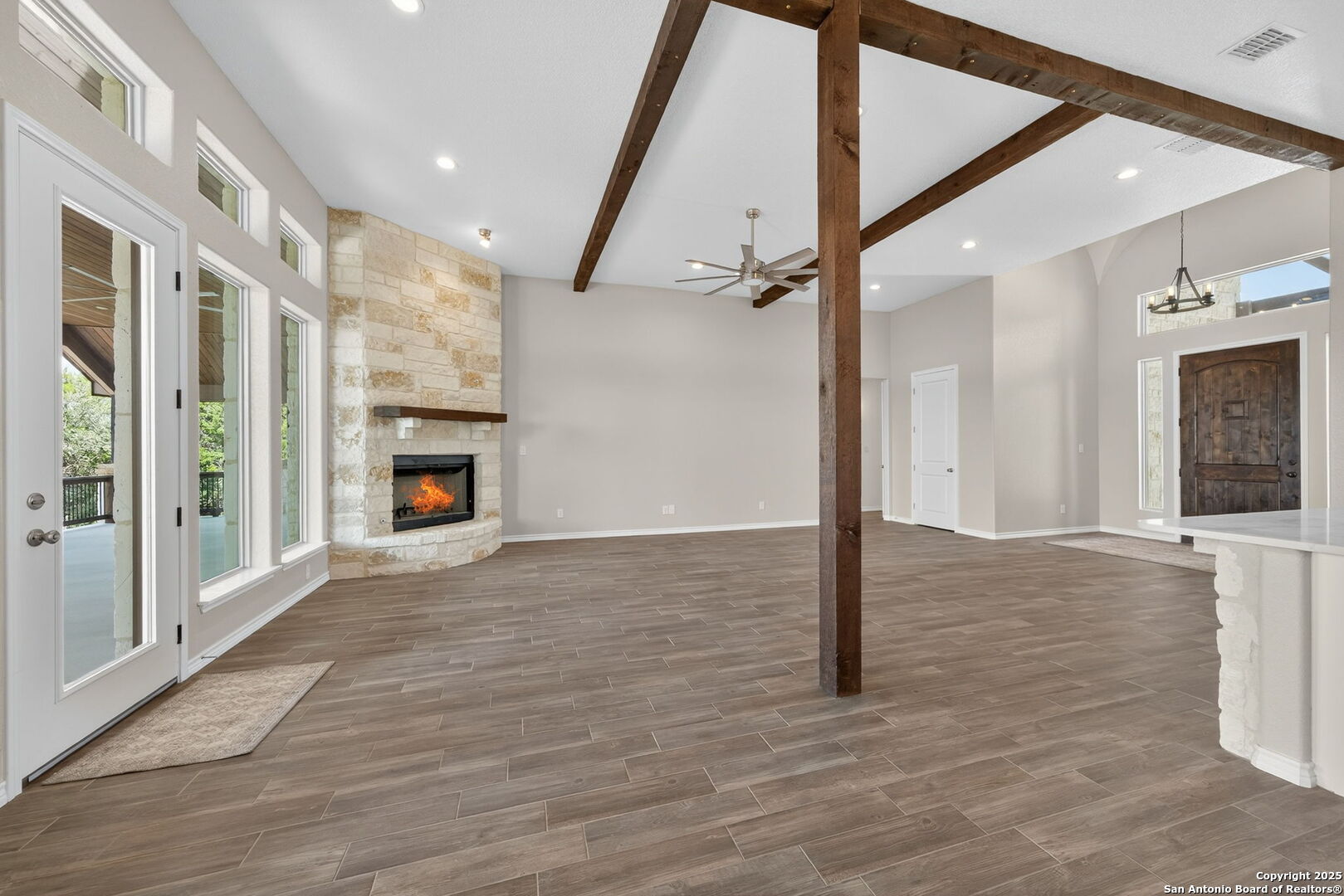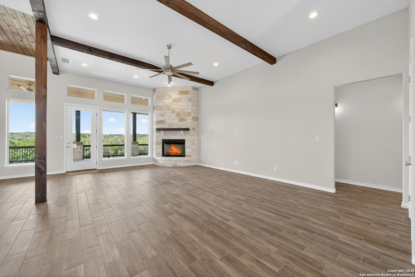 Luxury Hill Country Living in River Chase! Welcome to this brand new custom built estate on almost 2 acres with a view and back patio you have to see to believe. This stunning 4-bedroom, 3.5-bathroom residence offers refined living with breathtaking Hill Country views and exceptional amenities. Step inside and discover spacious, light-filled living areas designed for both comfort and entertaining. The gourmet kitchen flows seamlessly into the open-concept dining and family room, creating the perfect gathering space. A luxurious primary suite provides a serene retreat, while three additional bedrooms offer plenty of room for family or guests. One of the additional bedrooms has its own en suite and the other two share a jack and jill bathroom. Enjoy Texas outdoor living at its finest with a huge covered patio, perfect for evening dinners or weekend barbecues. The covered patio features an electric fireplace, 8' ceiling fans, and is pre-plumbed for an outdoor kitchen. The 3-car garage ensures ample storage and convenience. This home was built with extreme detail with all framing walls on 16" centers, engineered beams, 8' solid core doors, and so many more builder details throughout. As part of River Chase, you'll have exclusive access to a private Guadalupe River water park, neighborhood pools, and community amenities-all just minutes from New Braunfels shopping, dining, and attractions. This home blends luxury, space, and Hill Country charm, making it an exceptional opportunity for your next chapter. Check out the virtual tour and highlight video!