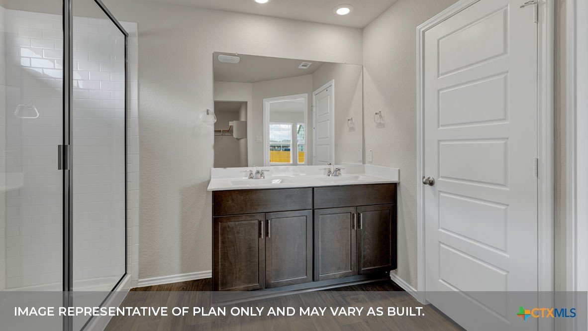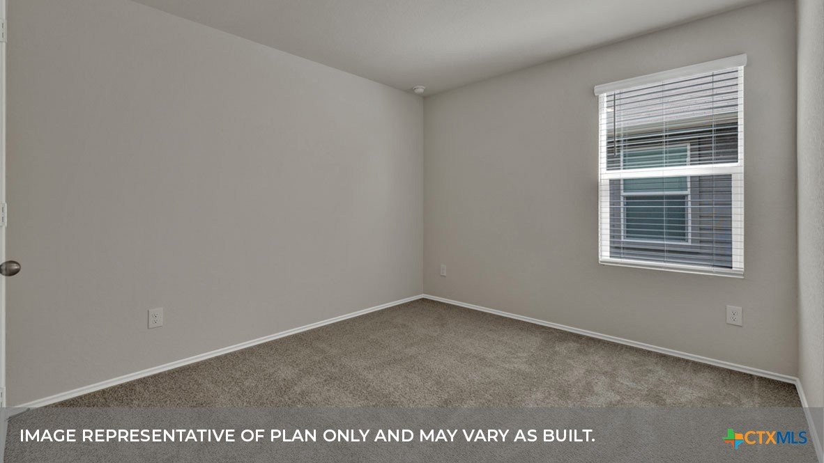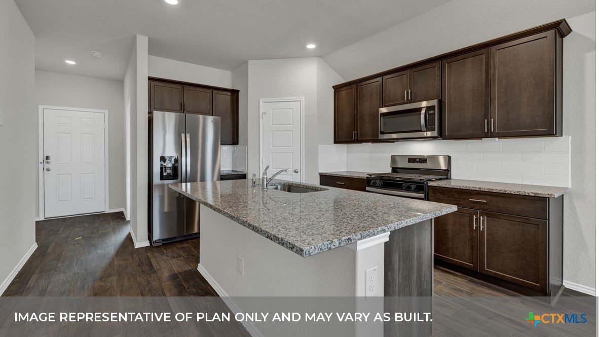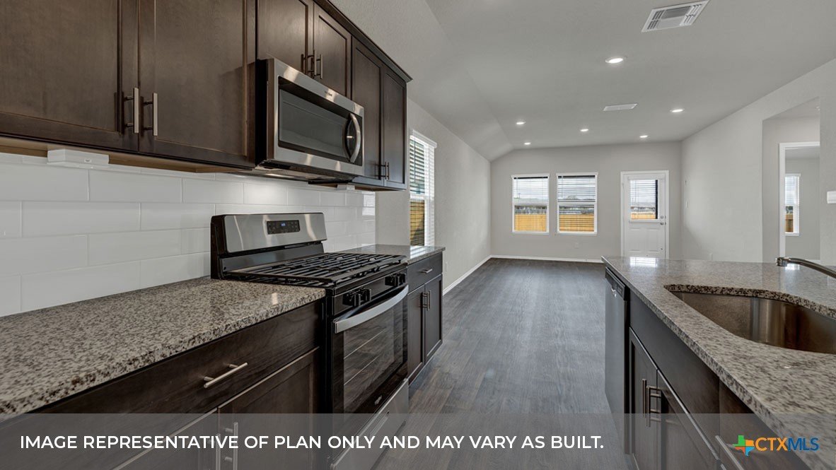 MOVE IN READY INCLUDES BLINDS AND GARAGE DOOR OPENER. Check out our Dalton floorplan, one of our one-story options at Saengerhalle Meadows in New Braunfels, TX. This home is perfect for growing families or homeowners that need extra space. Inside this 1,537 square foot home, you will find 4 bedrooms, 2 bathrooms and a 2-car garage. Our homes in Saengerhalle Meadows feature farmhouse exteriors. Step inside the home from the covered entryway and walk through the foyer to the kitchen, dining, and family room. The open concept design allows for conversations to easily flow between spaces while you prepare your meals and relax at the end of your day. The kitchen includes granite countertops, an island with an undermount sink, a corner pantry closet, stainless-steel appliances and 36’’ upper cabinets. Off the family room is the primary bedroom, with its own private bathroom. This relaxing bathroom space features a 5’ walk in shower, double sink vanity, private toilet area with a door, and a walk-in closet. Two additional bedrooms, a full bathroom, and utility room are down the hall from the kitchen. Our secondary bathrooms include a shower/tub combination and extra shelving for storage or décor. Each secondary bedroom features a closet with shelving. The last additional bedroom is located at the front of the home, off the foyer. The Dalton includes vinyl flooring throughout the common areas of the home, and carpet in the bedrooms. All our new homes feature a covered back patio, full sod, an irrigation system in the front and back yard, and a 6’ privacy fence around the back yard. This home includes our America’s Smart Home base package, which includes the Amazon Echo Pop, Front Doorbell, Front Door Deadbolt Lock, Home Hub, Thermostat, and Deako® Smart Switches.