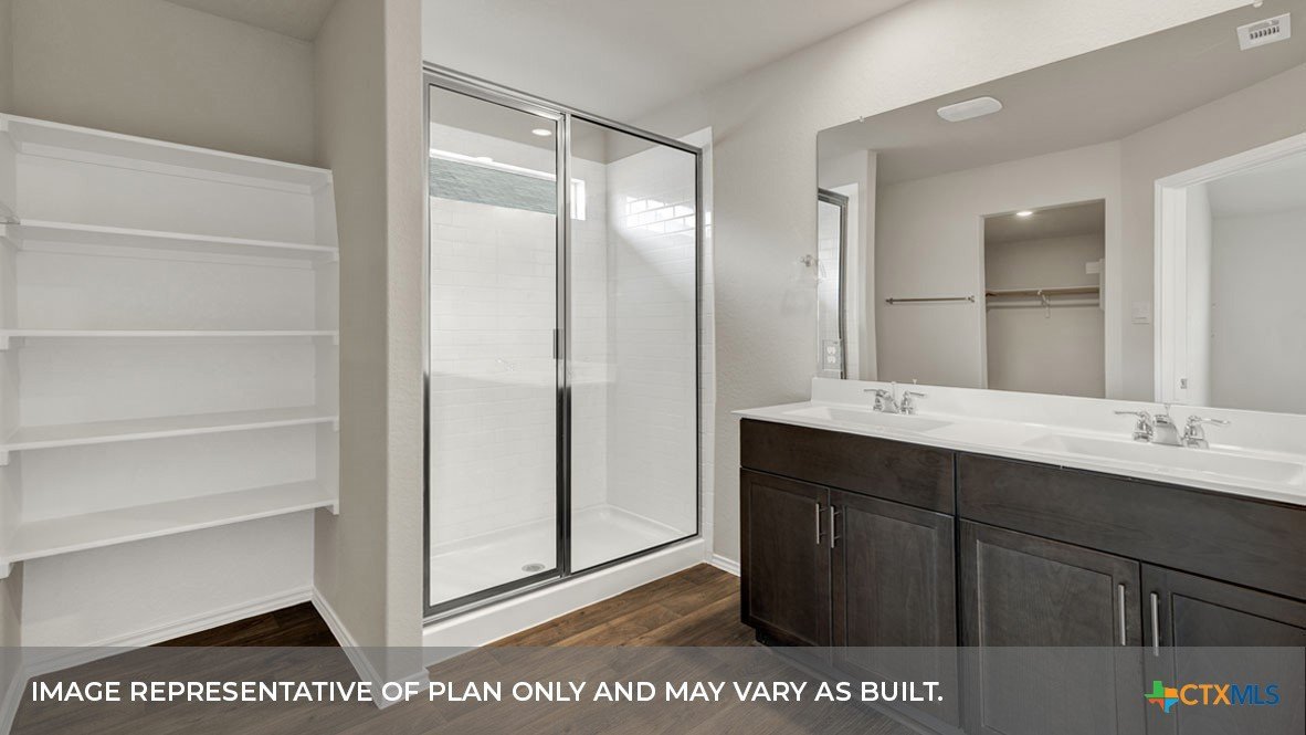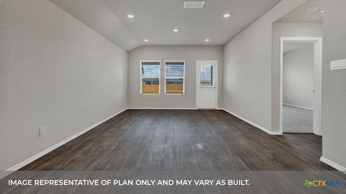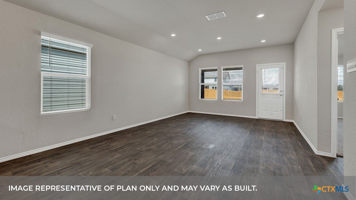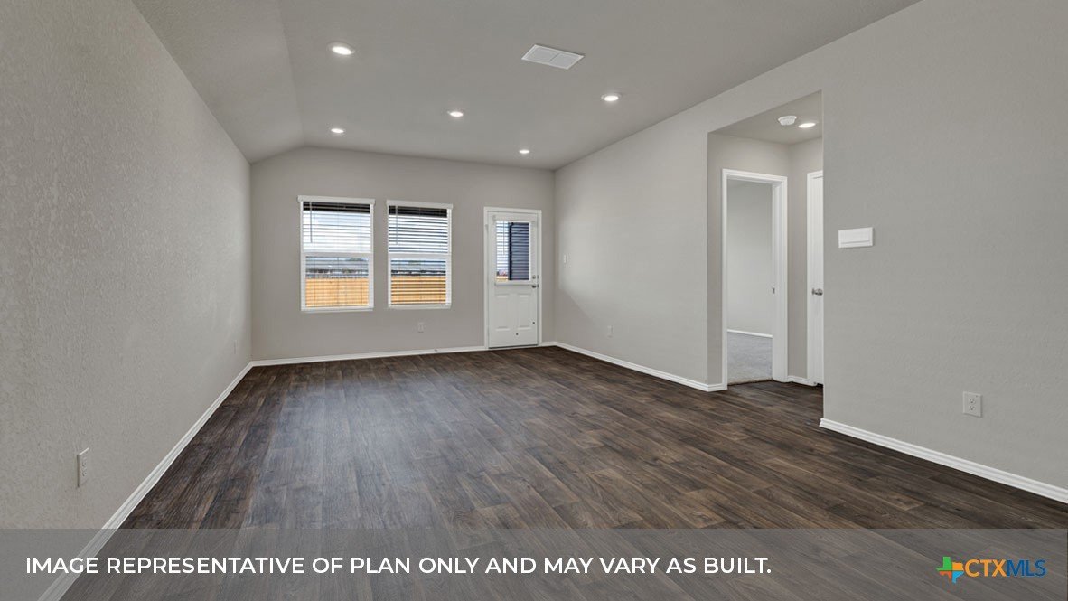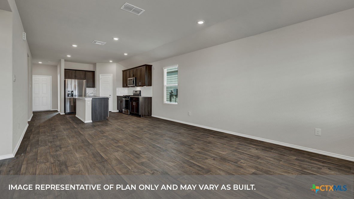 MOVE IN READY INCLUDES BLINDS AND GARAGE DOOR OPENER. Check out our Dalton floorplan, one of our one-story options at Saengerhalle Meadows in New Braunfels, TX. This home is perfect for growing families or homeowners that need extra space. Inside this 1,537 square foot home, you will find 4 bedrooms, 2 bathrooms and a 2-car garage. Our homes in Saengerhalle Meadows feature farmhouse exteriors. Step inside the home from the covered entryway and walk through the foyer to the kitchen, dining, and family room. The open concept design allows for conversations to easily flow between spaces while you prepare your meals and relax at the end of your day. The kitchen includes granite countertops, an island with an undermount sink, a corner pantry closet, stainless-steel appliances and 36’’ upper cabinets. Off the family room is the primary bedroom, with its own private bathroom. This relaxing bathroom space features a 5’ walk in shower, double sink vanity, private toilet area with a door, and a walk-in closet. Two additional bedrooms, a full bathroom, and utility room are down the hall from the kitchen. Our secondary bathrooms include a shower/tub combination and extra shelving for storage or décor. Each secondary bedroom features a closet with shelving. The last additional bedroom is located at the front of the home, off the foyer. The Dalton includes vinyl flooring throughout the common areas of the home, and carpet in the bedrooms. All our new homes feature a covered back patio, full sod, an irrigation system in the front and back yard, and a 6’ privacy fence around the back yard. This home includes our America’s Smart Home base package, which includes the Amazon Echo Pop, Front Doorbell, Front Door Deadbolt Lock, Home Hub, Thermostat, and Deako® Smart Switches.