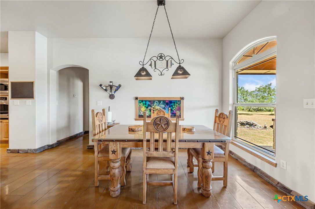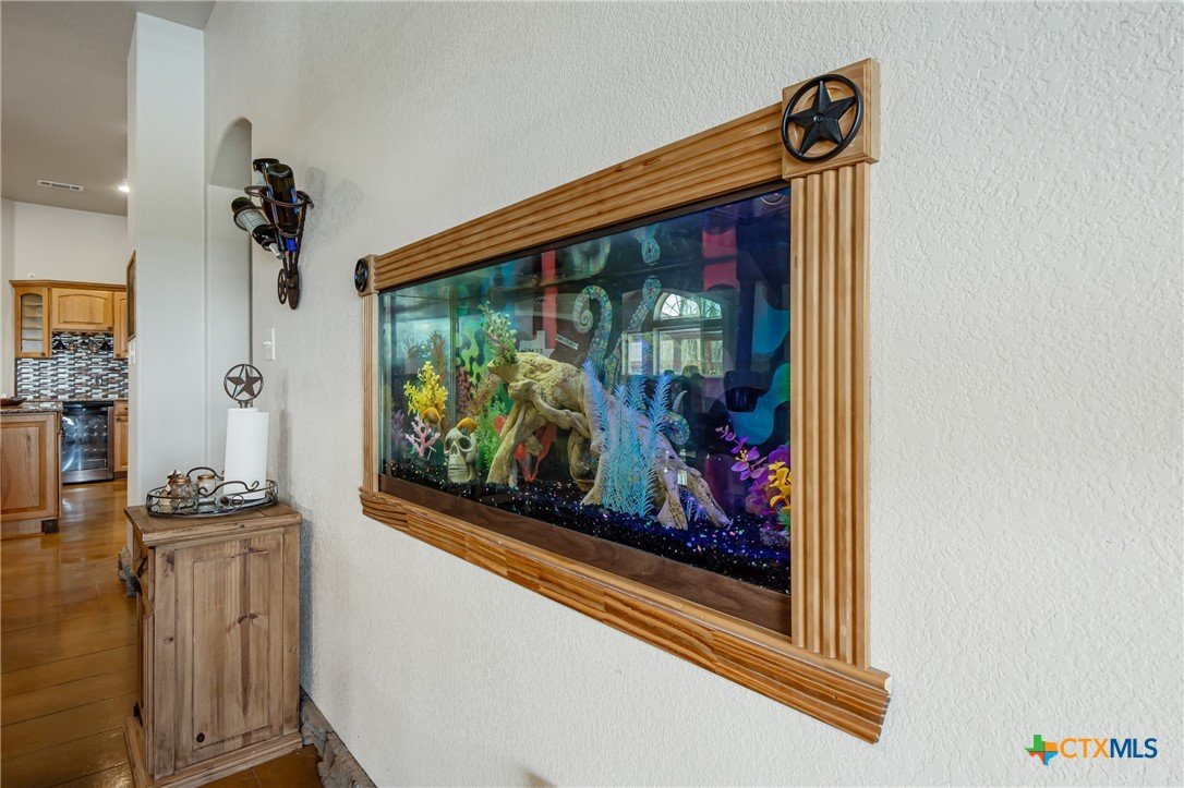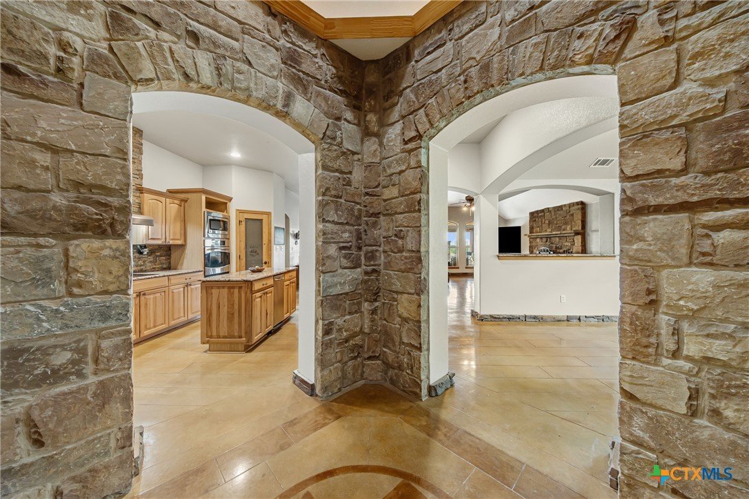On more than 24 acres of wide-open Texas land, this estate is where luxury and peace come together. The views stretch for miles, and the only sounds you’ll hear are the ones you choose—laughter by the pool, the crackle of the firepit, or the soft trickle of the backyard water feature. Life here moves at your pace, surrounded by space and privacy that most only dream of. The enormous covered patio is built for living outdoors, with a stone fireplace and a kitchen ready for summer cookouts, quiet mornings with coffee, or evenings entertaining friends as the sun sets over your land. Step inside, and the sense of custom craftsmanship continues, from striking stone walls to fine details like the baseboards that ground every room in style. The kitchen is the kind of place that makes cooking a joy, with granite counters, stainless steel appliances, a built-in wine fridge, and more than enough space for gathering around the island or breakfast bar. Even dinner feels like an event in the dining room, where a built-in aquarium adds life and beauty to the setting. When it’s time to unwind, the theater room offers movie nights that rival the big screen, while the spacious owner’s suite promises rest and relaxation with a spa-like bath that features a corner jetted tub and dual shower heads in the separate walk-in shower. This property isn’t about checking boxes—it’s about creating a life. One filled with quiet mornings, unforgettable evenings, and a home designed to celebrate every moment in between.