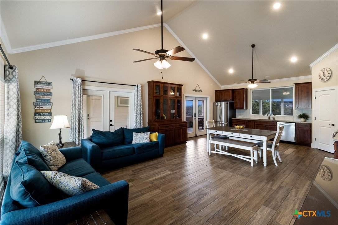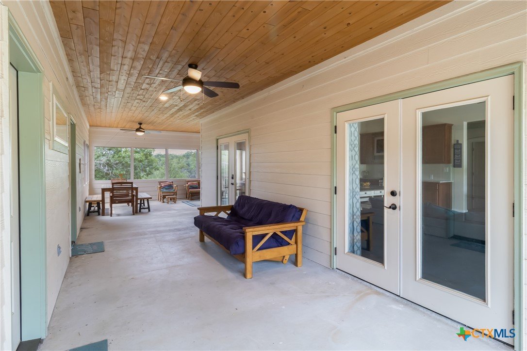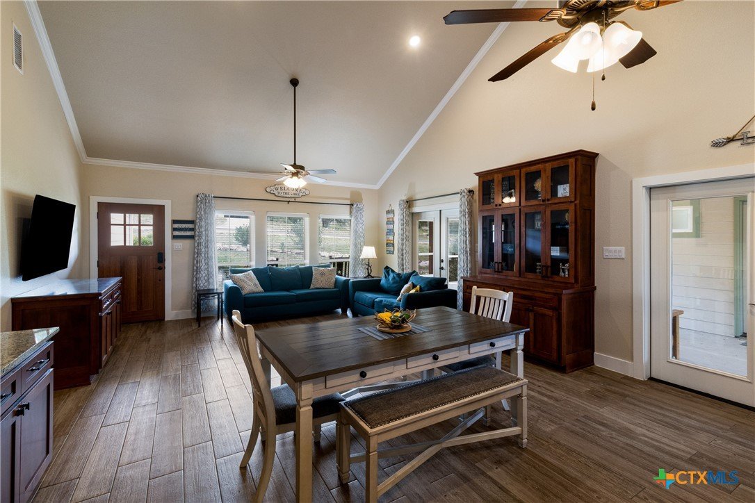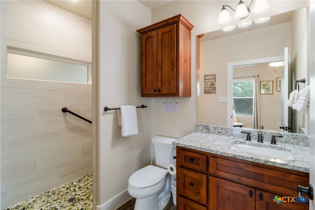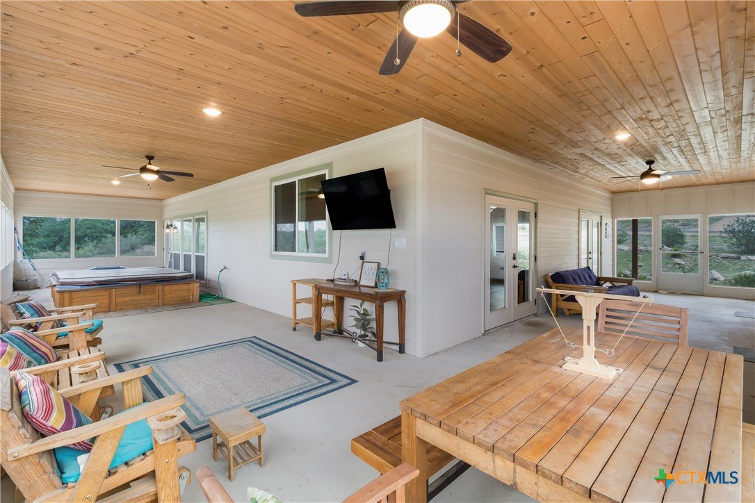 This unique, well maintained Canyon Lake home was built in 2019 is being sold FULLY FURNISHED & is approved for SHORT TERM RENTALS! Home is truly unique with separate guest quarters (2 bedrooms with their own in-suite full baths) for family & friends to come visit or could be used as Short Term Rentals. There is a separate entrance to these bedrooms from the Breezeway. Home is just minutes to boat ramp 22 at Potters Creek to enjoy beautiful Canyon Lake & the TX Hill Country. The under roof square footage of the home is approx. 2460 SF & sits on 1.31 beautiful Hill Country acres. Floor plan includes 900+ square feet of breezeway featuring lots of sitting areas & a refreshing SWIM SPA. Amenities include a metal roof, solar panels (owned) electric car charging station, gas cooking, NO CARPET, water softener new April 2025, ceiling fans throughout, neighborhood pool just down the street & much more. Don't miss this great opportunity to own a piece of the TX Hill Country & make this house "YOUR" home.