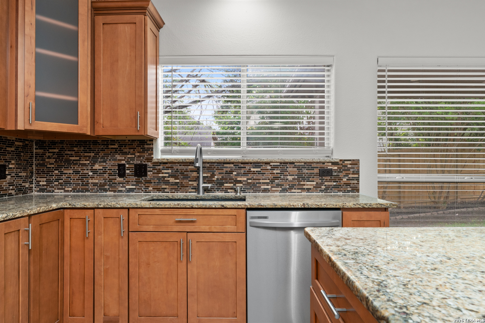 **Open House** Saturday April 18th 11am-3pm & Sunday April 19th 2pm-5pm! Exquisite two-story residence in the prestigious gated community of Rosewood Gardens, ideally positioned on a private cul-de-sac. Thoughtfully updated, this home showcases a stunning designer kitchen with custom pull-out cabinetry, granite countertops, a glass-mosaic backsplash, and sleek stainless-steel appliances. Freshly reimagined with sophisticated designer tones, the interior is enhanced by statement lighting, elegant finishes, and a warm gas fireplace. The well-appointed layout offers multiple living spaces, including dual living areas, an expansive upstairs game room, and a secluded primary suite with a versatile adjoining space-ideal for a private study or nursery. Step outside to a covered patio with extended entertaining space, surrounded by a fully irrigated landscape. Enjoy the rare convenience of private gated access to Huebner Elementary. Recent upgrades include a 2021 roof and a 2022 water softener, completing this exceptional offering.