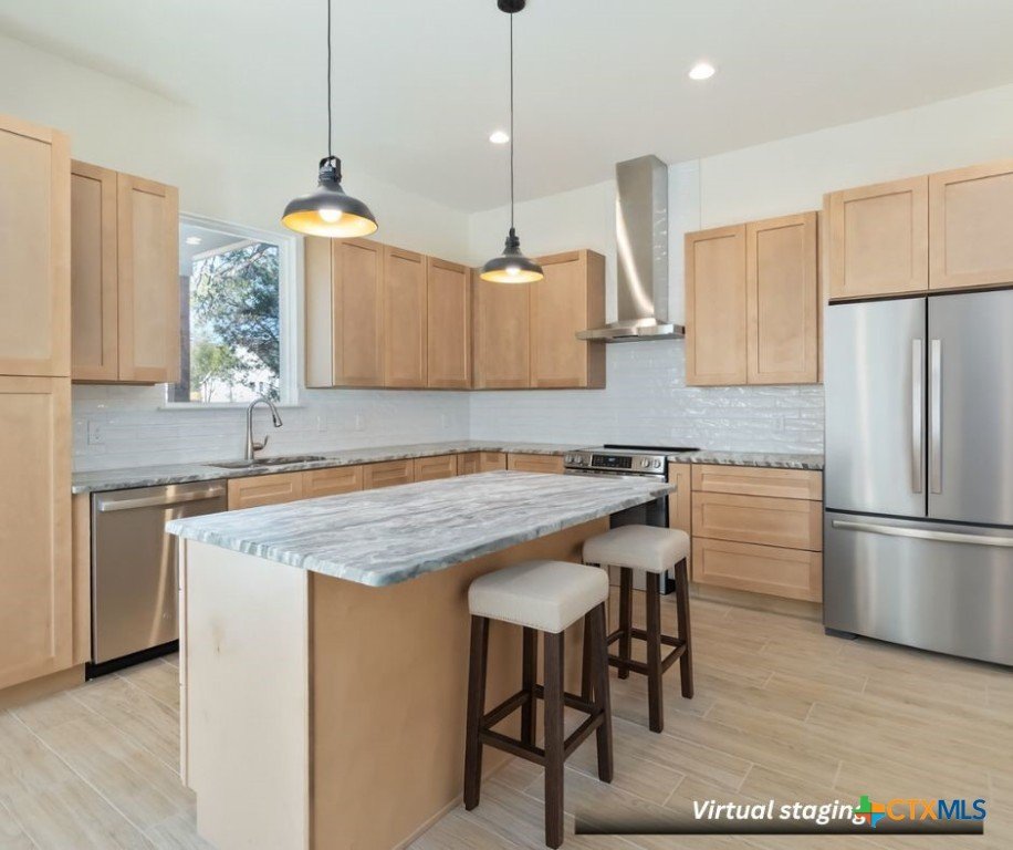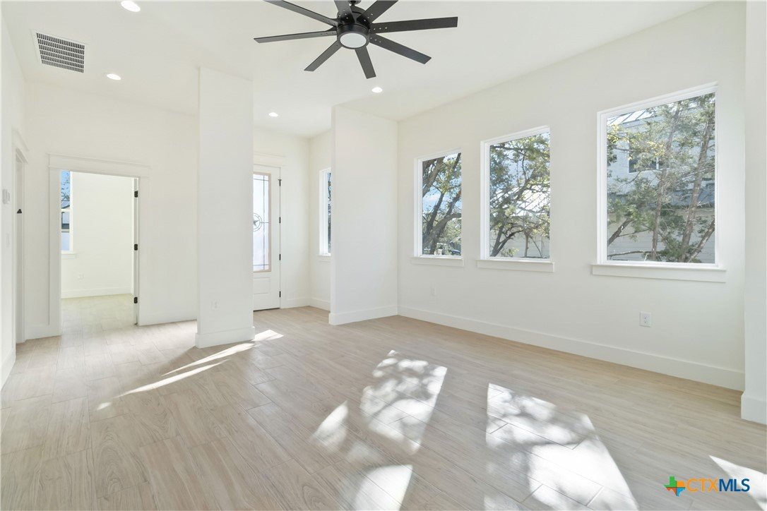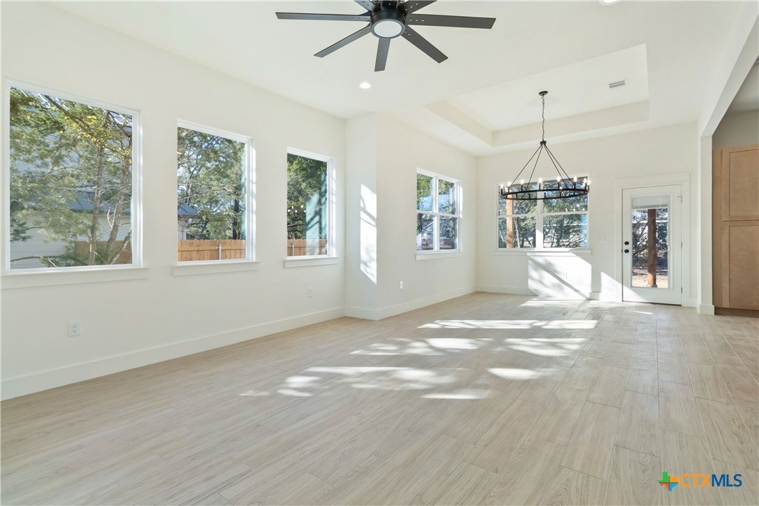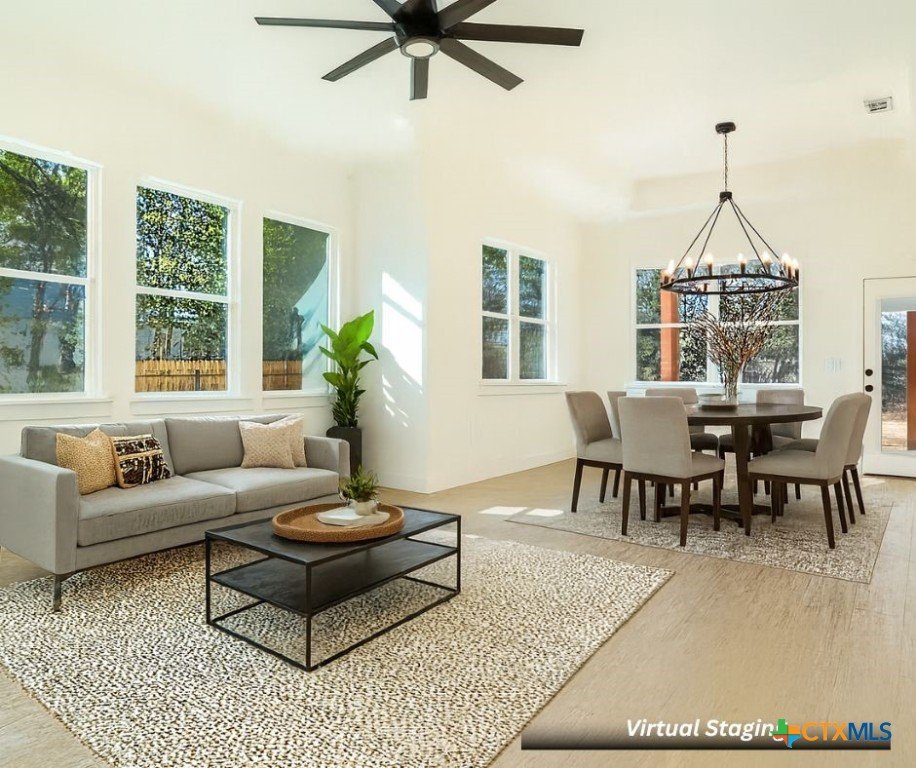 Modern farmhouse with a bold elevated roofline, located on a quiet cul-de-sac and surrounded by mature oak trees. This 1.5-story home offers over 2,000 sqft of living space, featuring 3 bedrooms, 2.5 bathrooms, and a dedicated office with cathedral ceilings. The home sits on a spacious 0.275-acre lot, providing room to spread out while still feeling connected. The primary suite is on the main level and includes a double vanity and walk-in shower. The exterior features stone accents, a front porch, and a deep covered back patio—ideal for relaxing in the shade or enjoying clear night skies. Inside, the kitchen is equipped with butcher block countertops and open to the living area. Buyers still have the opportunity to choose interior wall colors—act fast to personalize your finishes. Estimated completion:October.