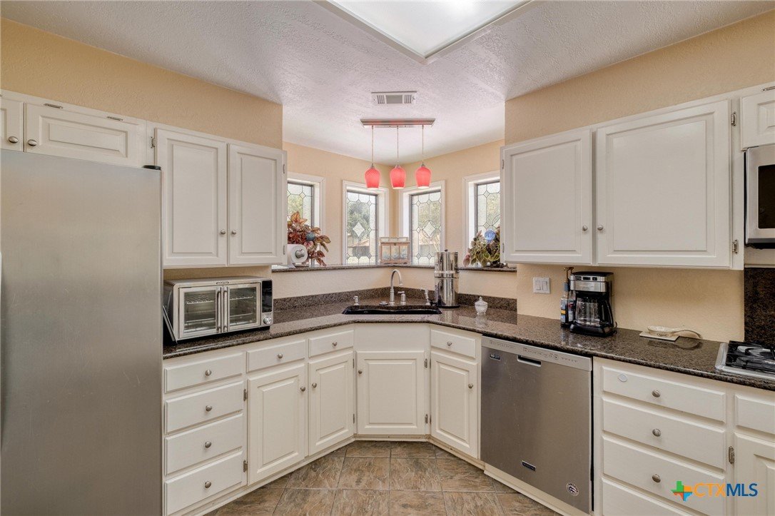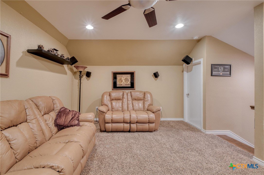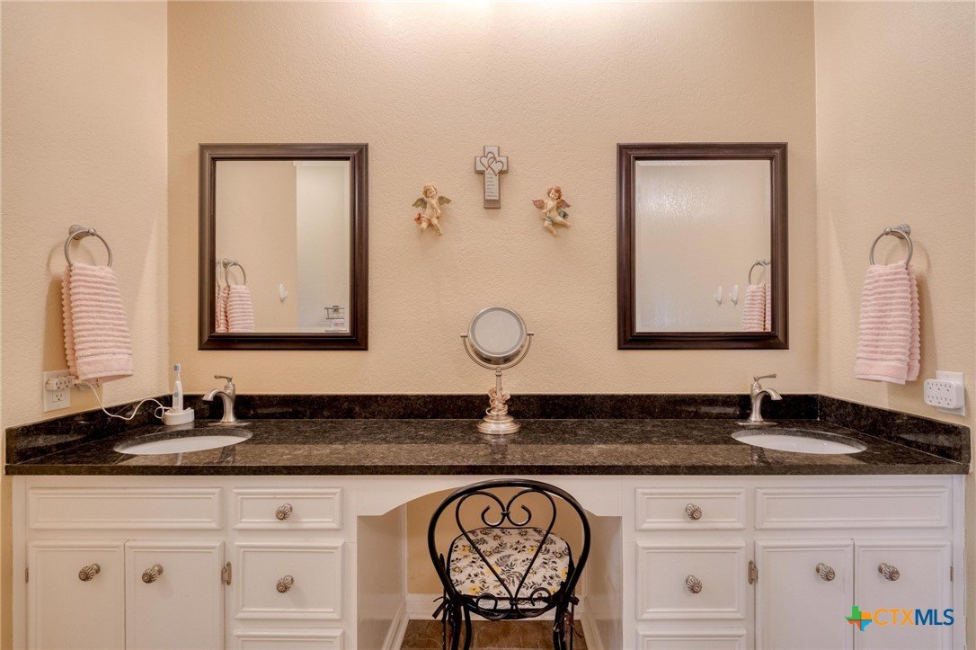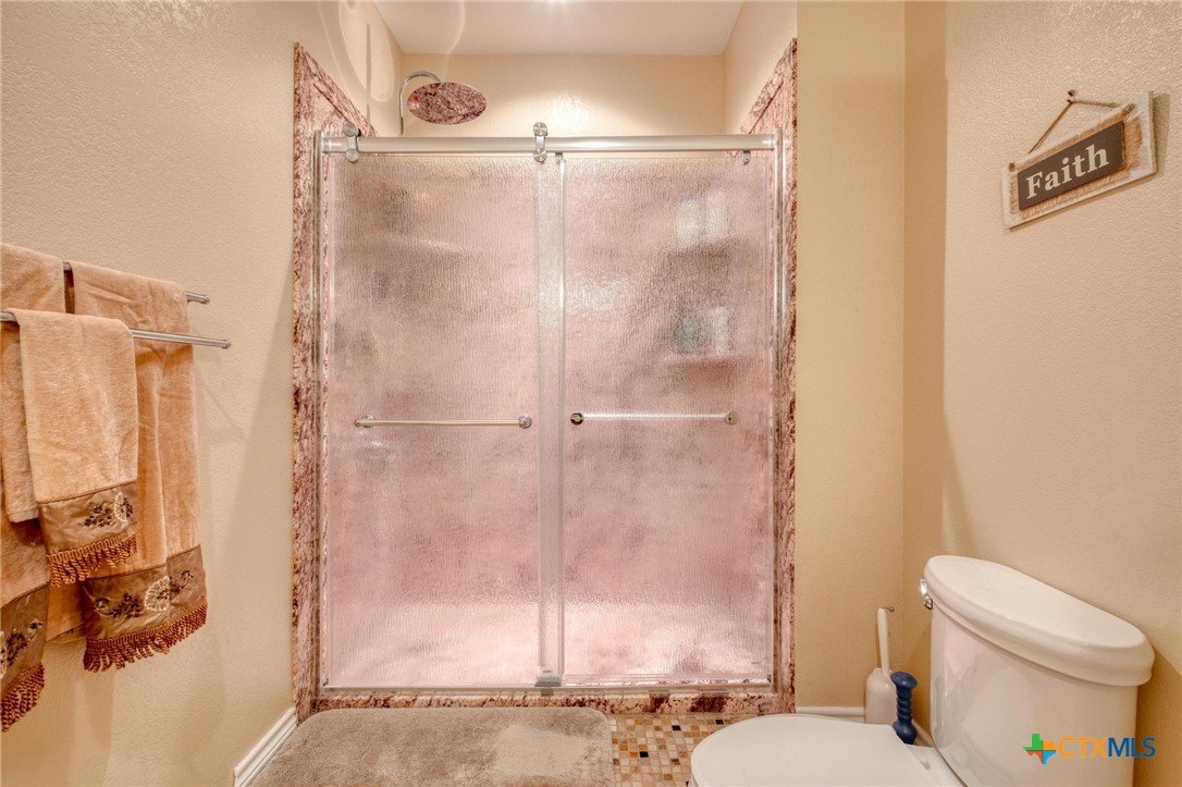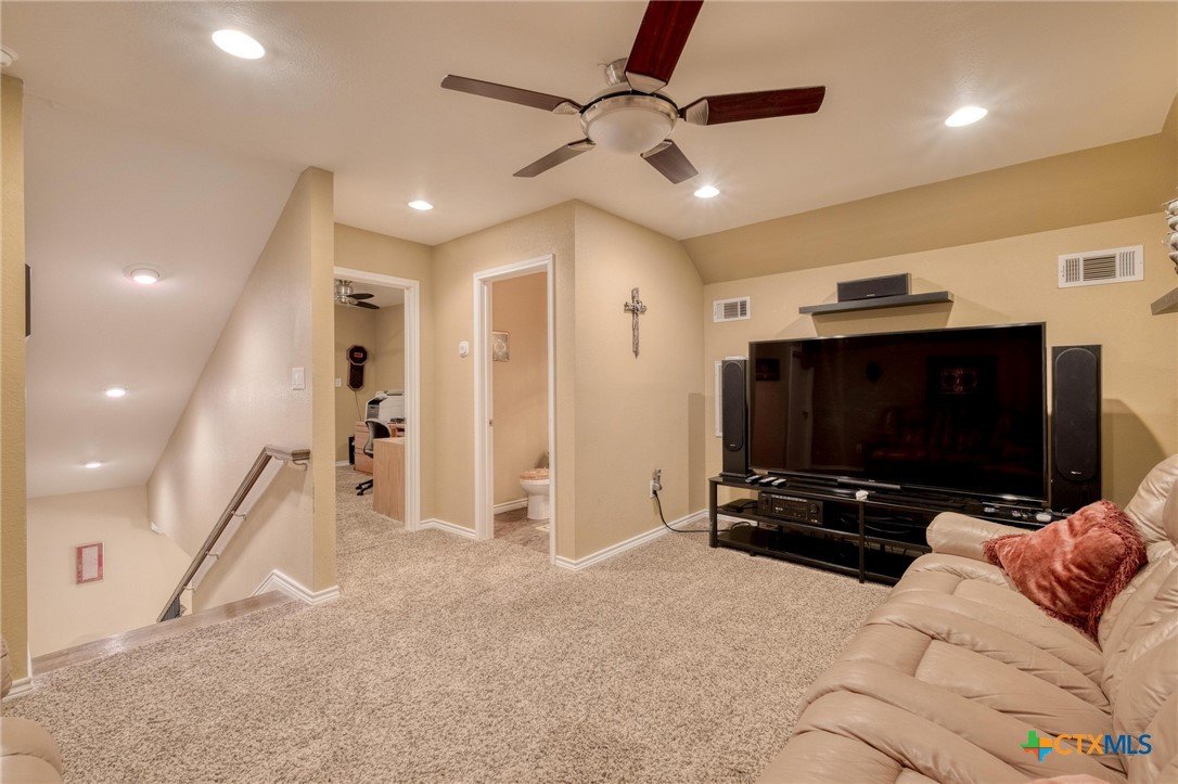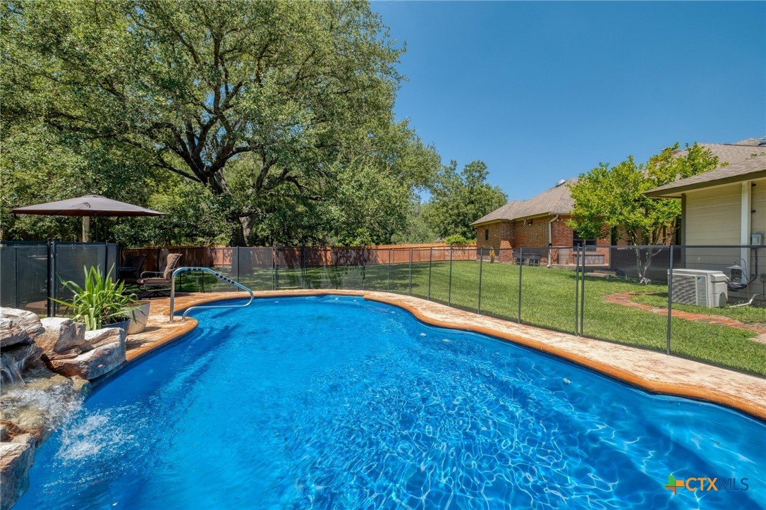 Discover comfort and elegance in this beautifully designed residence featuring a private backyard with an in-ground pool—perfect for unwinding after a long day. The main level offers 4 spacious bedrooms and 2.5 bathrooms, including the primary suite with dual vanities, two walk-in closets, and a full bath. Upstairs, enjoy a versatile second living area (ideal as a game/media room), a private office, and a convenient half bath. The home provides multiple dining areas, a breakfast bar, abundant built-ins, and generous storage throughout. The downstairs living area is enhanced by a cozy fireplace and tile flooring. The kitchen comes fully equipped with all appliances, and the washer/dryer convey with the sale. The detached 2-car garage features a mini-split AC system and an EV charging station. Additional amenities include a sprinkler system, screened-in back porch, open patio, and more. Set on a 0.65-acre lot with mature oak, crape myrtle, and other trees, this property combines natural beauty with modern convenience. Located just east of Luling, with easy access to Hwy 183 and IH-10. An additional 2+ acres are also available for purchase. Schedule your private showing today!