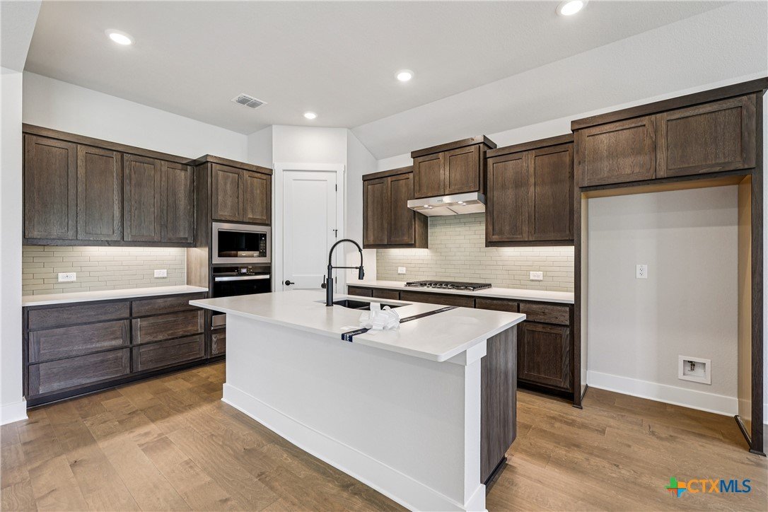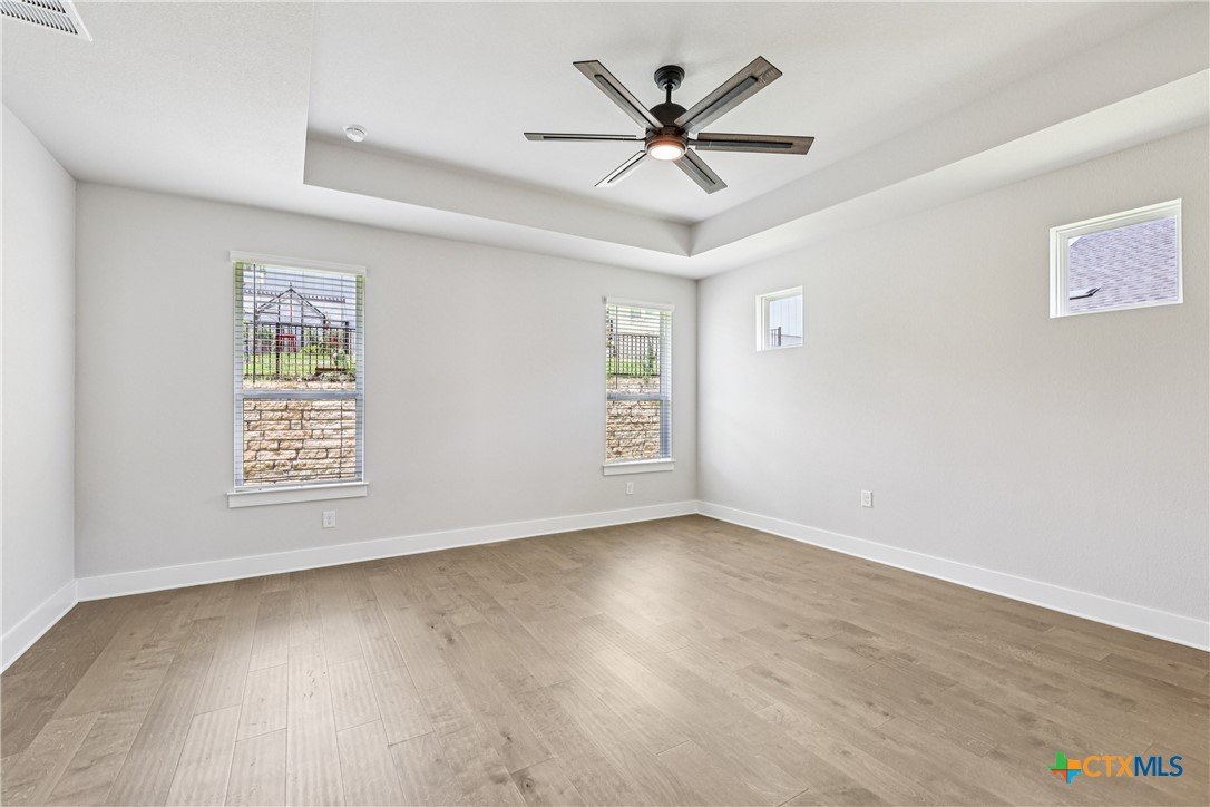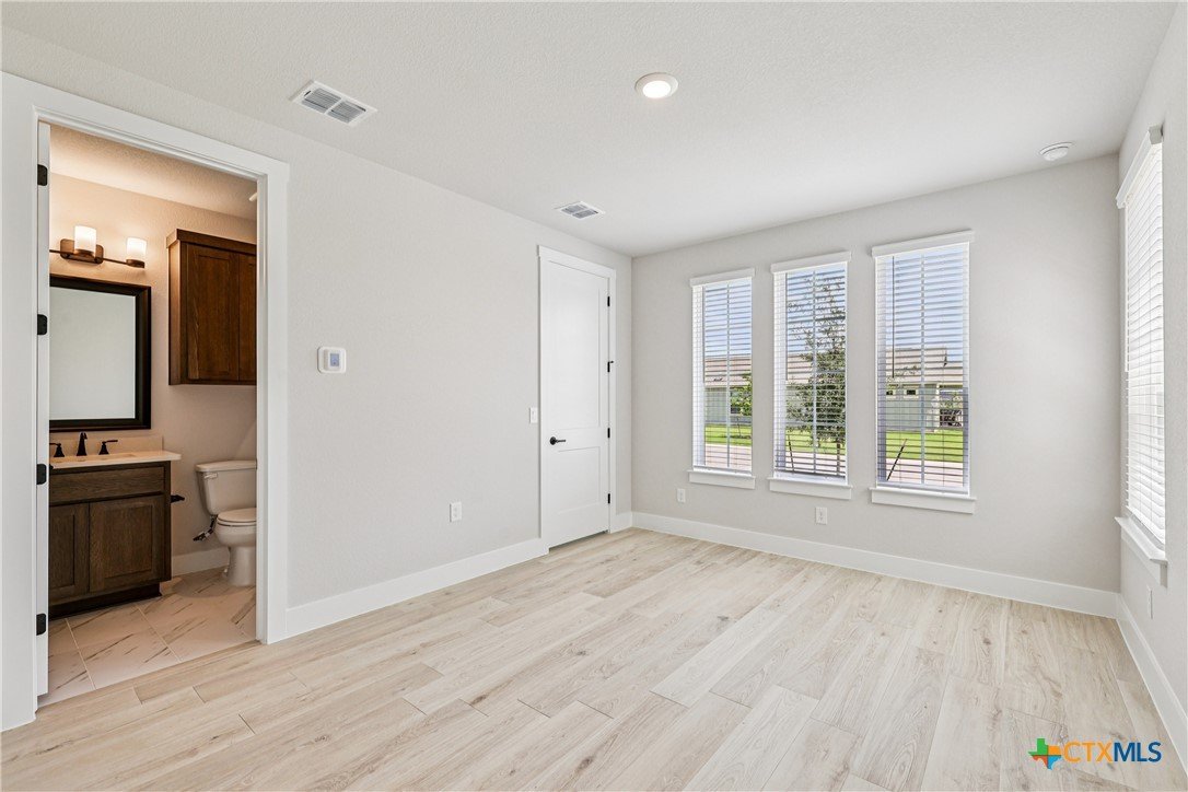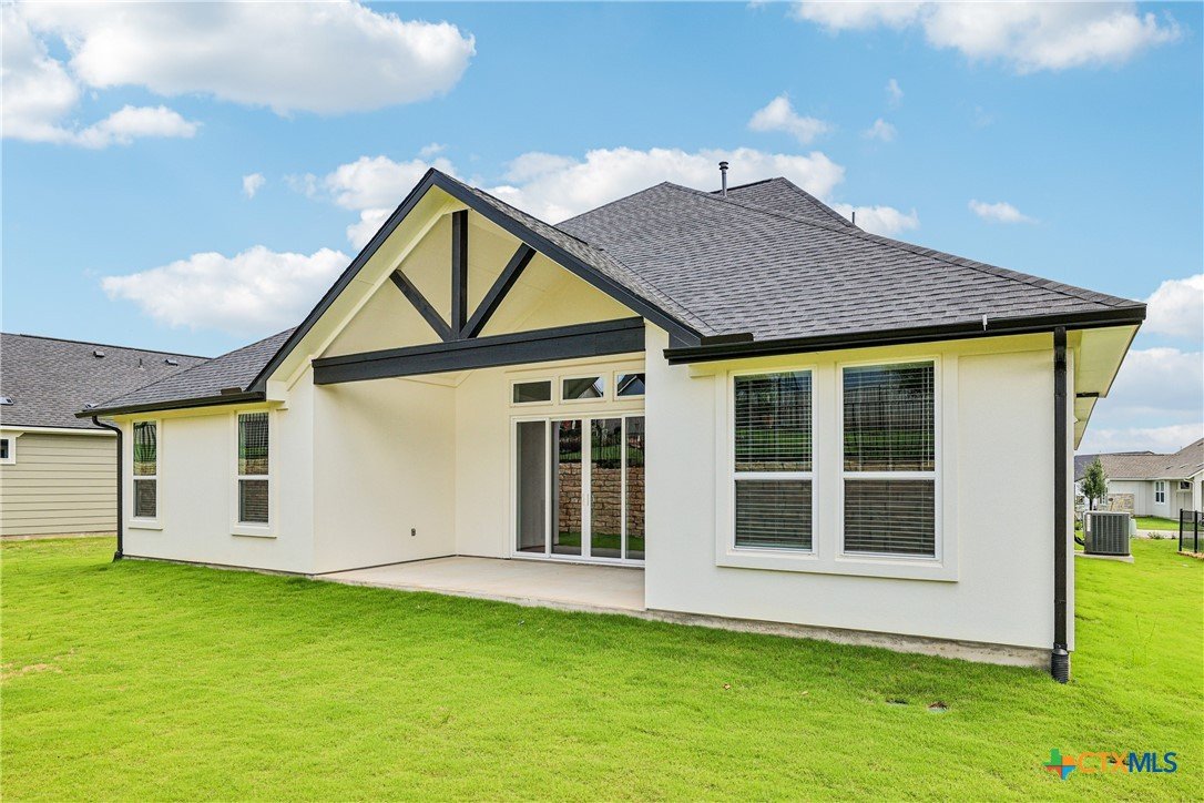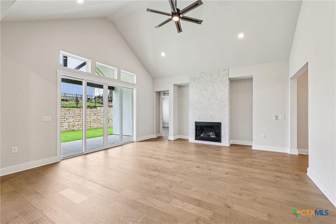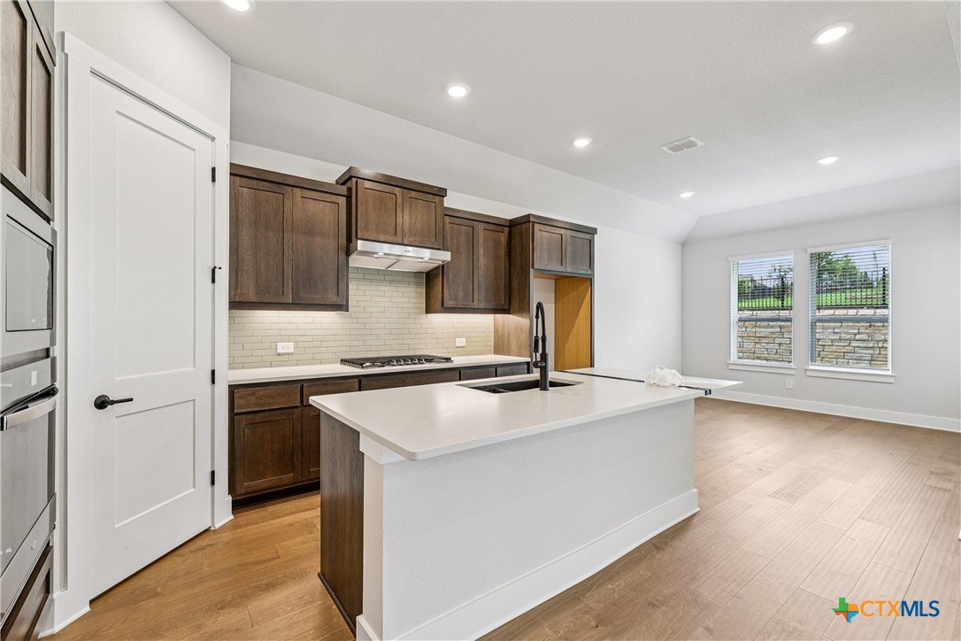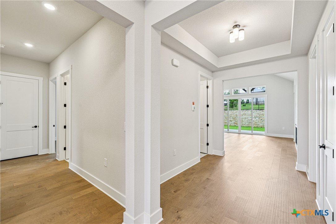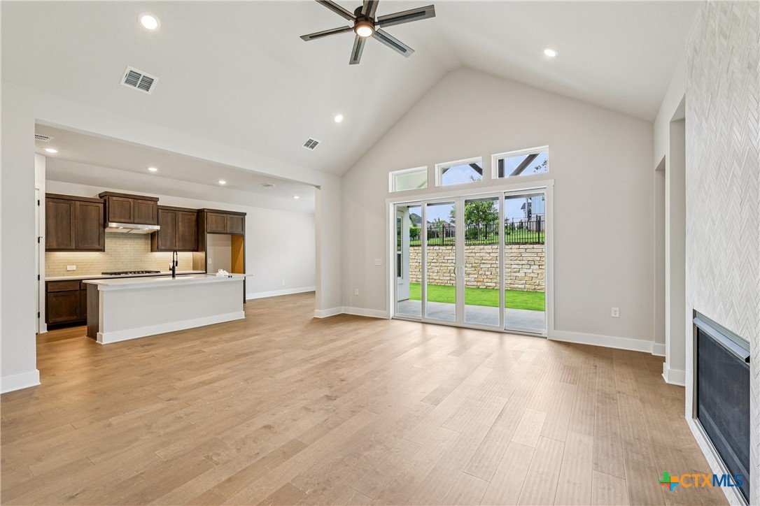 Spelman plan with upgraded kitchen, quartz countertops, hardwood flooring, optional tray ceilings in foyer, entry and master, sliding glass door in living, optional study, 42" fireplace in living, Express cordless blinds, casita with full bath