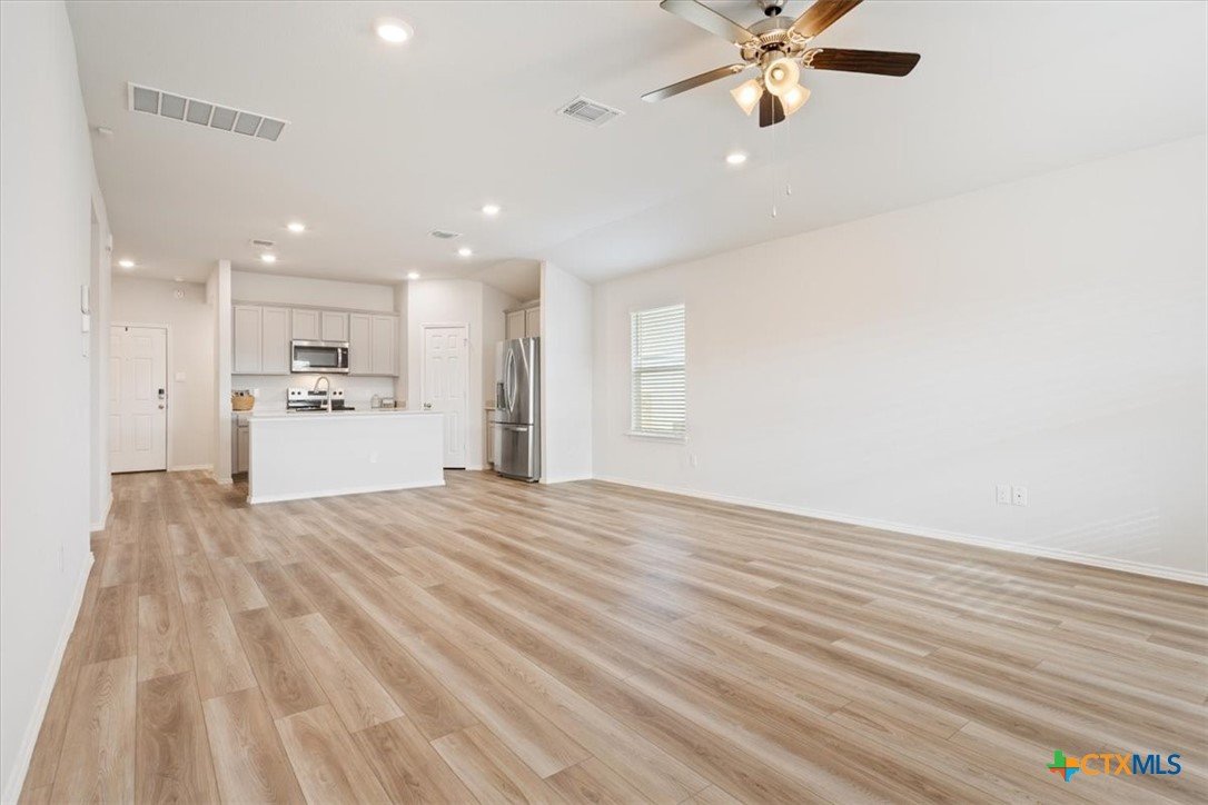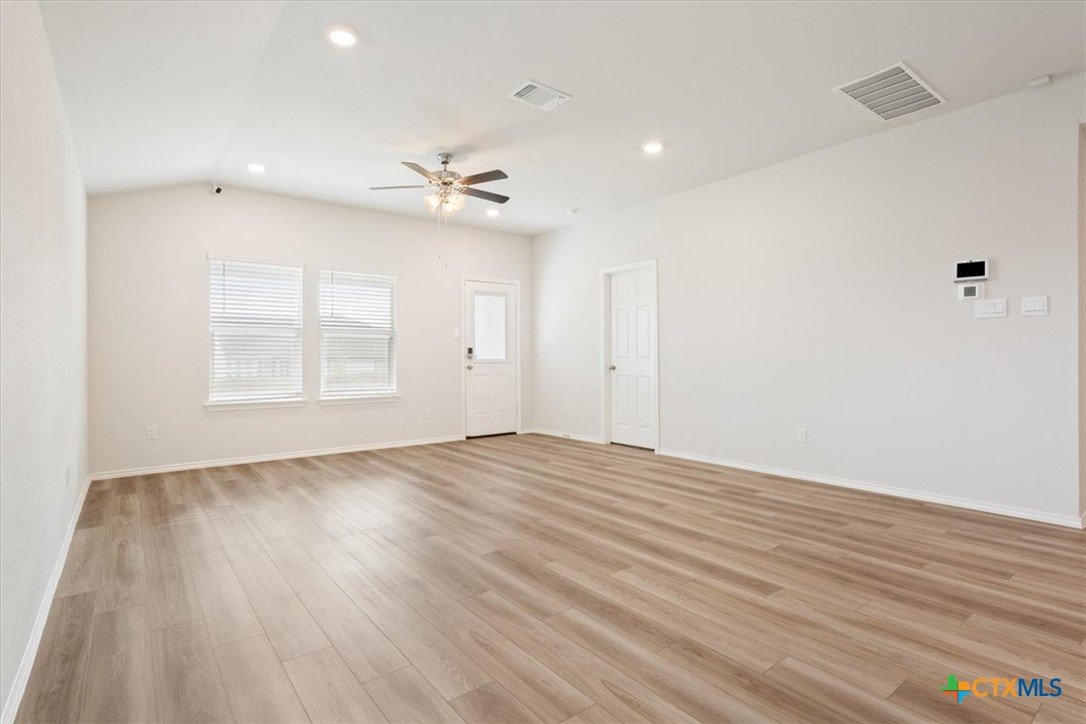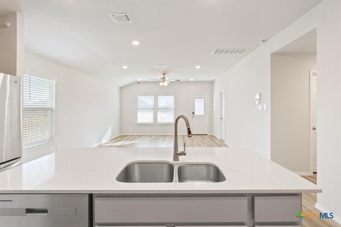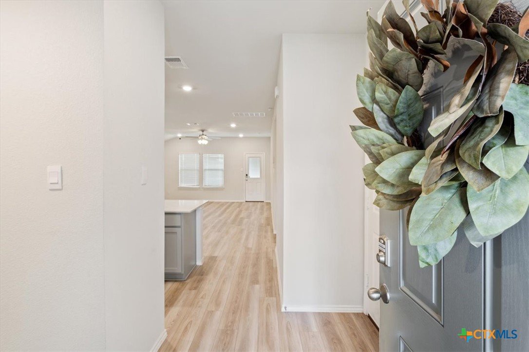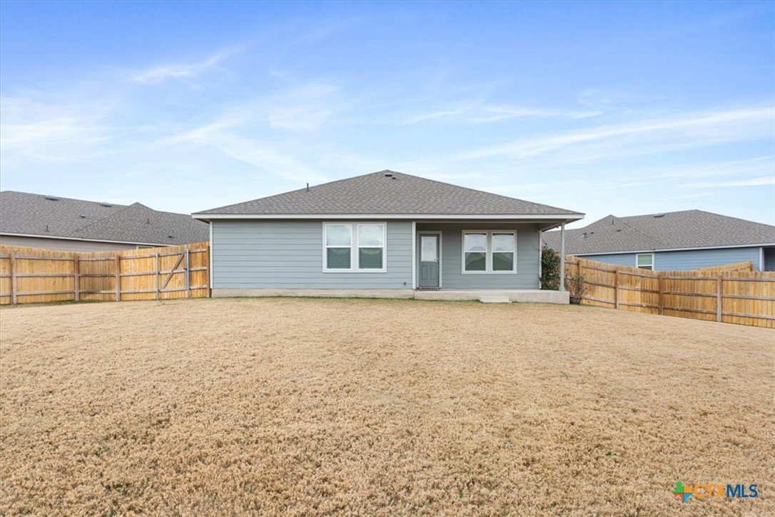 Beautifully maintained 4-bedroom, 2-bathroom single-story home in like-new condition—only 1 owner and just 1.5 years old! This popular Elgin floor plan offers approximately 1,612 sq. ft. of thoughtfully designed living space. The home welcomes you with a spacious foyer that opens into the light-filled, open-concept kitchen and living area. The kitchen features granite countertops, a breakfast bar, stainless-steel appliances, and a generous corner pantry. The private primary suite includes a sloped ceiling, large vanity, and a large walk-in closet. Off the family room, you’ll find a covered patio overlooking the very large backyard, offering plenty of space for play, pets, or future outdoor upgrades. Smart home features include Home Is Connected® system, allowing you to control lights, thermostat, and door locks from your phone.