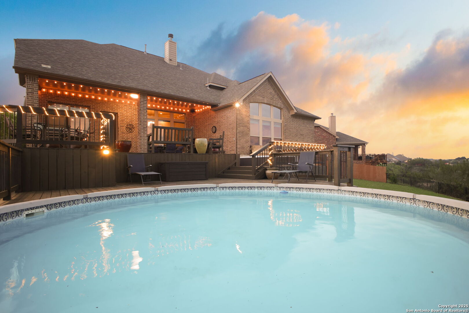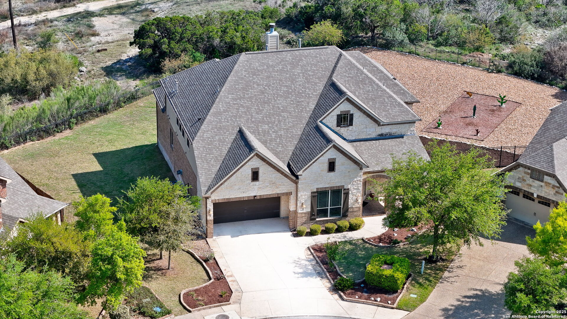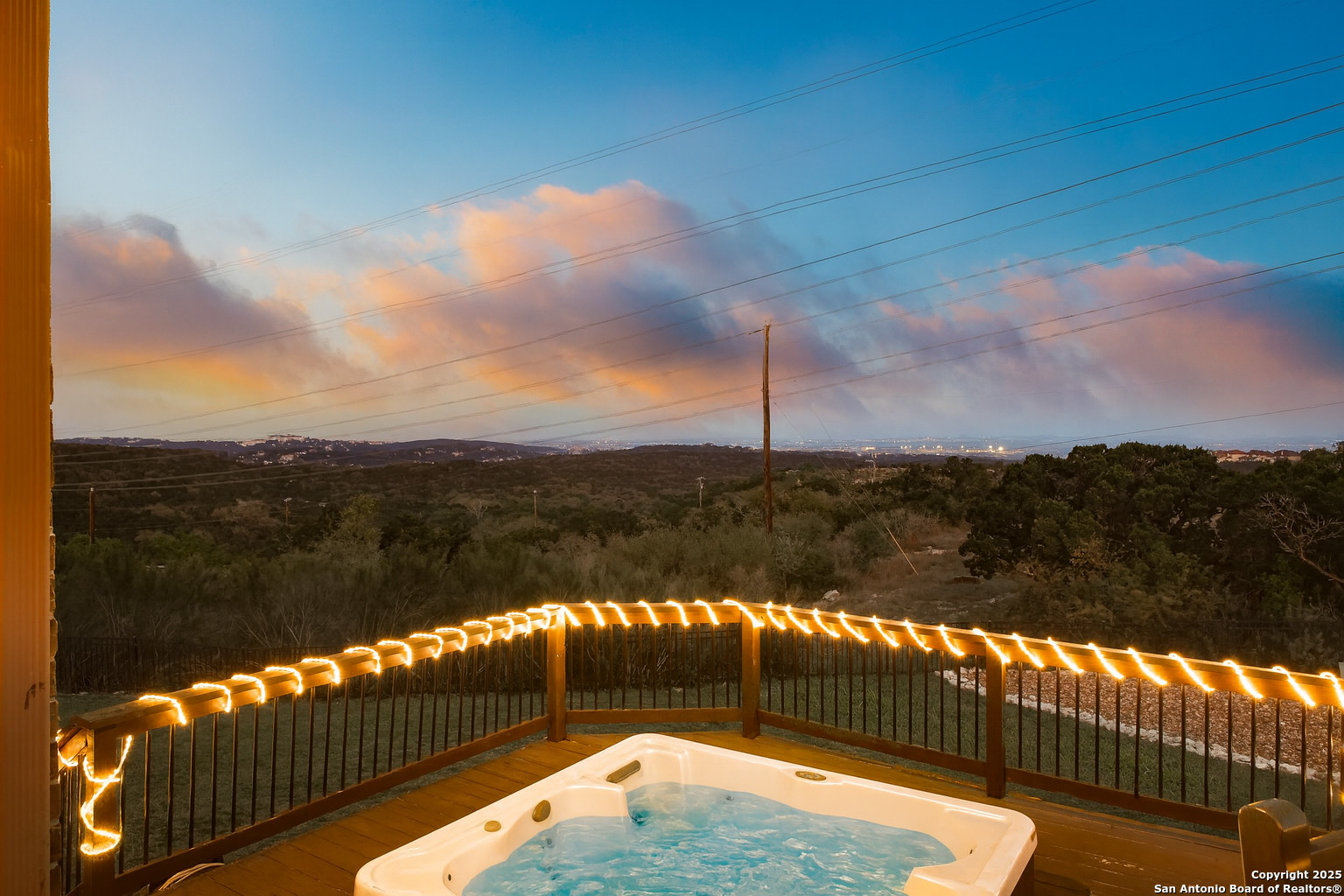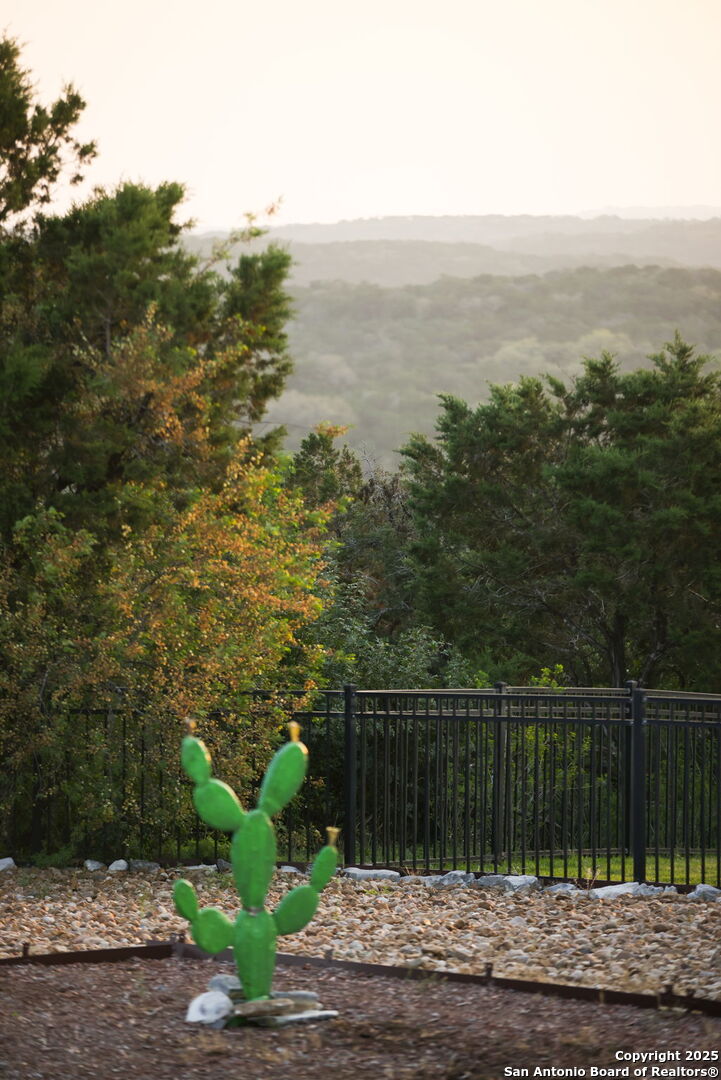 Perched at one of the highest elevations in gated Sonoma Mesa, this home captures sweeping 180 greenbelt and downtown San Antonio views from a .64-acre cul-de-sac lot. With 3,750 sq. ft., 4 bedrooms, 3.5 baths, and multiple living areas, the layout blends comfort and entertaining. A dramatic two-story foyer with hand-scraped wood floors, soaring ceilings, and crown molding sets the tone. Formal dining and a private office with French doors add function, while the open living area flows into a gourmet kitchen with granite countertops, gas cooktop, stainless appliances, custom cabinetry, walk-in pantry, and breakfast nook overlooking a fireplace with built-ins. The main-level primary suite offers incredible views, a jetted tub, tiled shower, dual vanities, and two walk-in closets. Upstairs features a game room with built-ins, media room with projector, and three bedrooms including a Jack-and-Jill bath. Outdoor living includes an expansive deck, spa with landscaped surround, breathtaking sunsets, and ample yard space for a pickleball court or outdoor kitchen. Extras: new roof (2019), sprinkler, gutters, floodlights, water softener, zeroscaping, and 3-car garage with attic storage. Minutes to La Cantera, The Rim, Palmer Golf, Six Flags, Valero, and USAA, with top-rated Northside ISD.