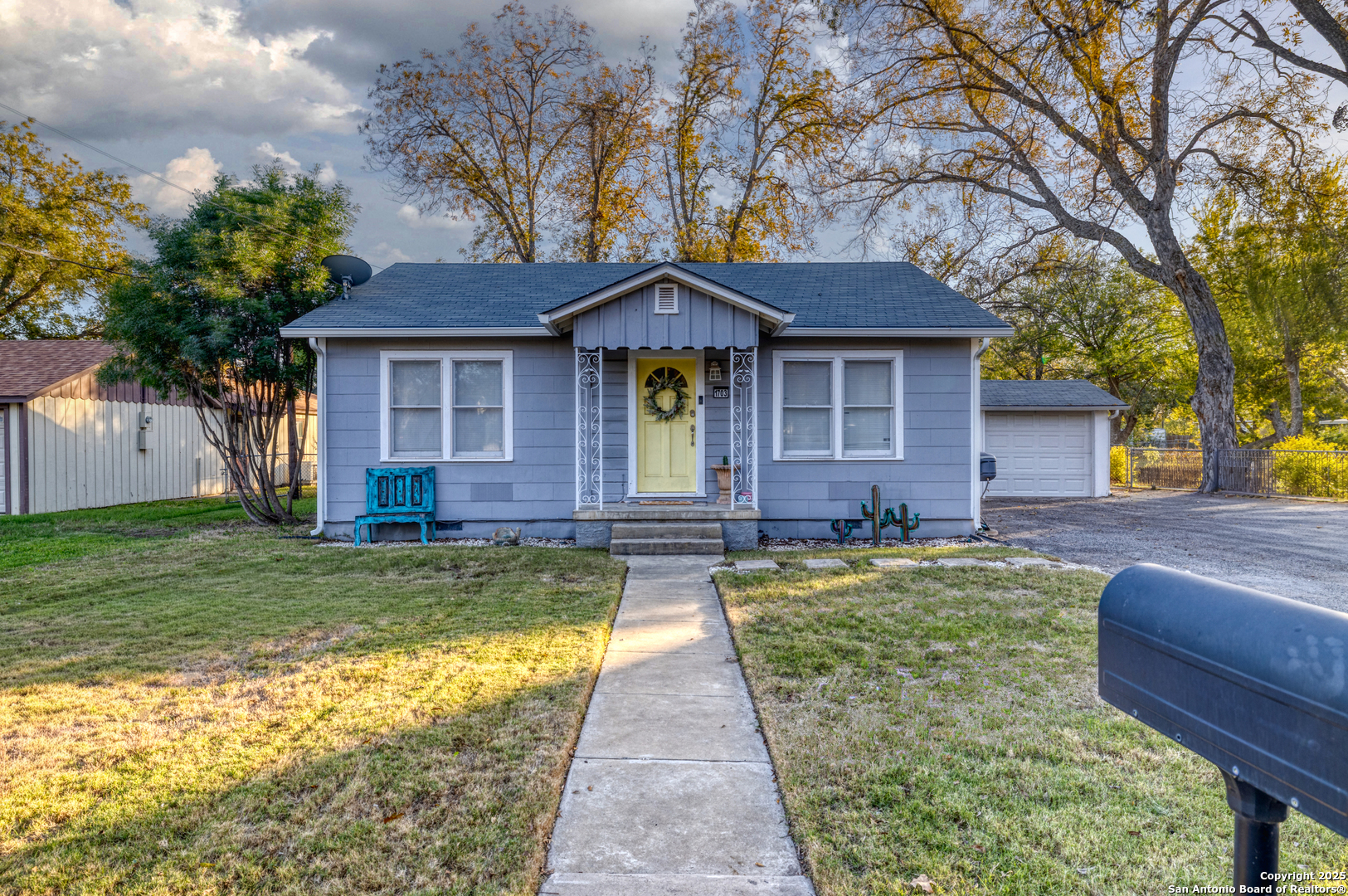 Welcome home to this inviting, refreshed charmer in the heart of Hondo! This delightful 3-bedroom, 1-bathroom residence perfectly balances a cozy, modern farmhouse feel with practical Texas living. Step inside to discover light-filled living spaces featuring beautiful hardwood floors and a thoughtfully updated kitchen and bathroom. A fresh coat of paint provides a crisp, clean atmosphere throughout. The kitchen comes fully equipped with sleek stainless steel appliances and elegant finishes that enhance the desired aesthetic. Outside, enjoy the true essence of outdoor living on the spacious, fully fenced 0.33-acre lot. The property is shaded by mature trees and features an extended patio, perfect for entertaining or quiet relaxation. A brand new roof adds peace of mind. Functionality meets space with a generous two-car garage that includes a large, dedicated laundry area, plus an additional storage room. The home's prime location offers easy access to local schools and all city conveniences. This move-in-ready property is a rare find!