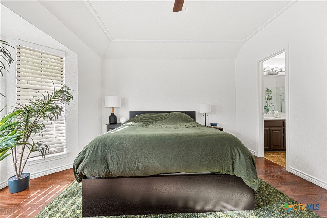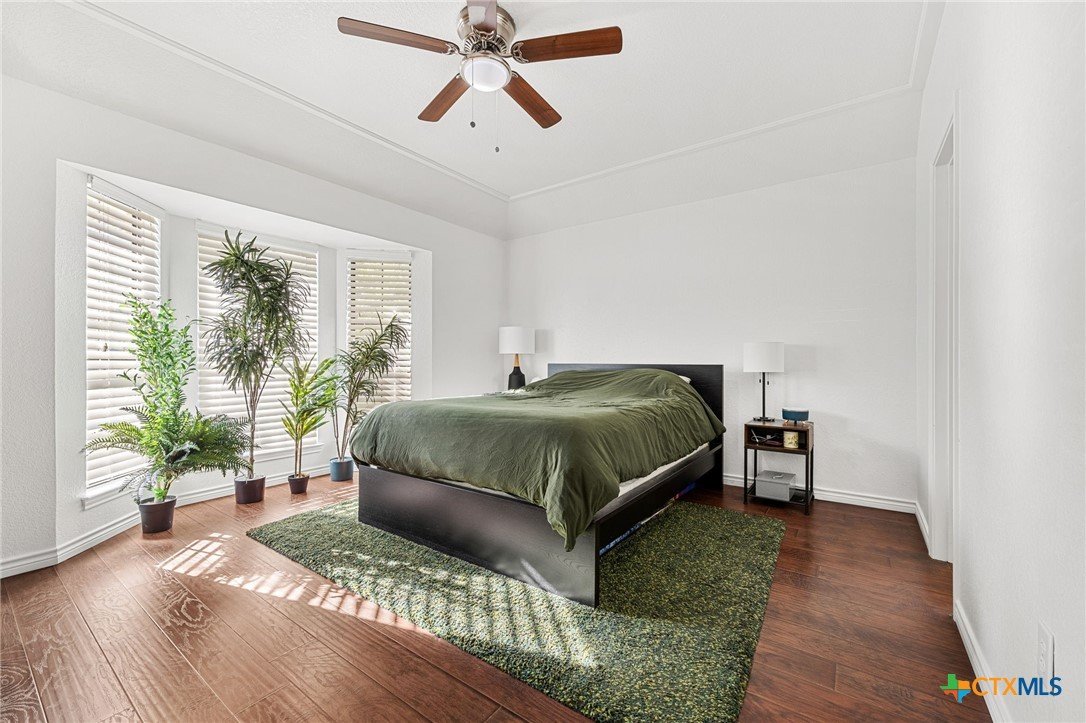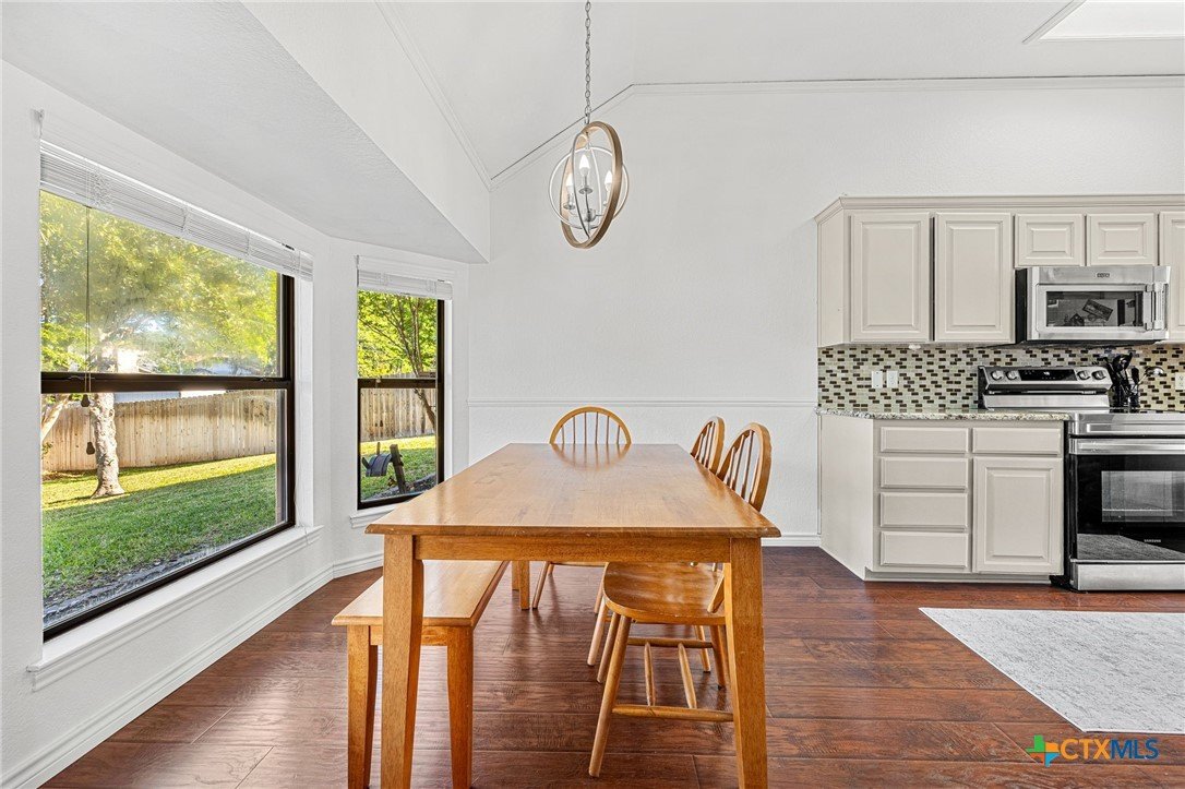 Situated on a quiet limited access street in the highly coveted Country Trails neighborhood, this beautiful three bedroom two bath home offers an exceptional split floor plan plus a dedicated 9x13.11 private office. The interior is completely carpet free, with wood floors flowing seamlessly from a massive living room anchored by a cozy wood burning fireplace into a kitchen featuring granite countertops and French country style painted cabinets. Both the dining area and the primary suite are bathed in natural light through elegant bay windows, while the secondary bedrooms offer impressive scale with one measuring a generous 14.6x10.6 and the other a spacious 11x11. The primary retreat is further enhanced by a modern frameless glass shower and a deep garden tub, creating a true spa like atmosphere. Outside, the tree adorned lot provides a private backyard sanctuary with a wood deck for entertaining, along with the rare convenience of an individual mailbox in an established community.