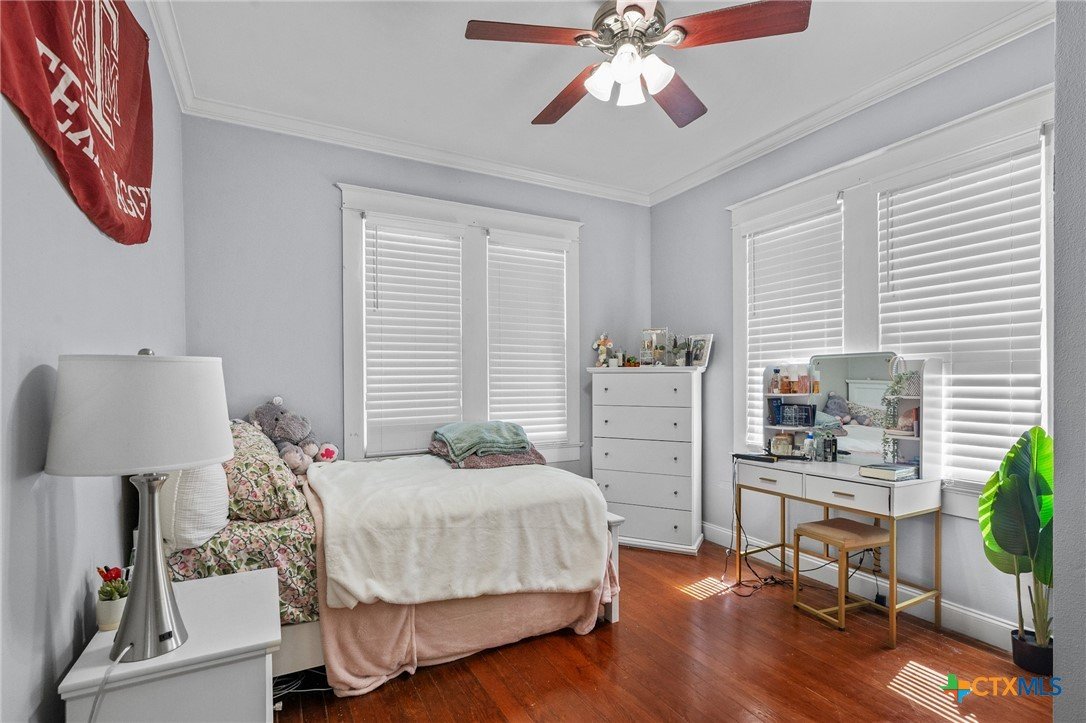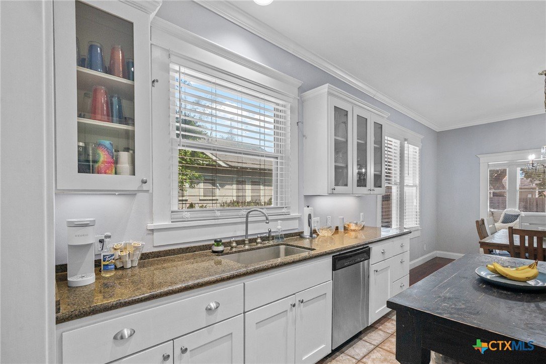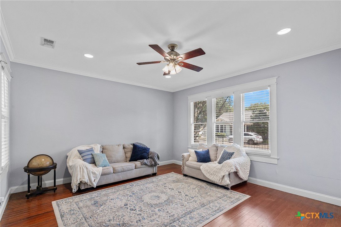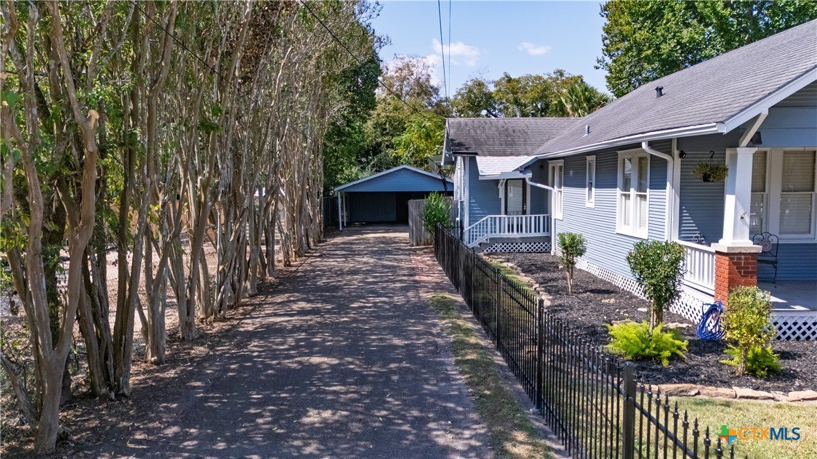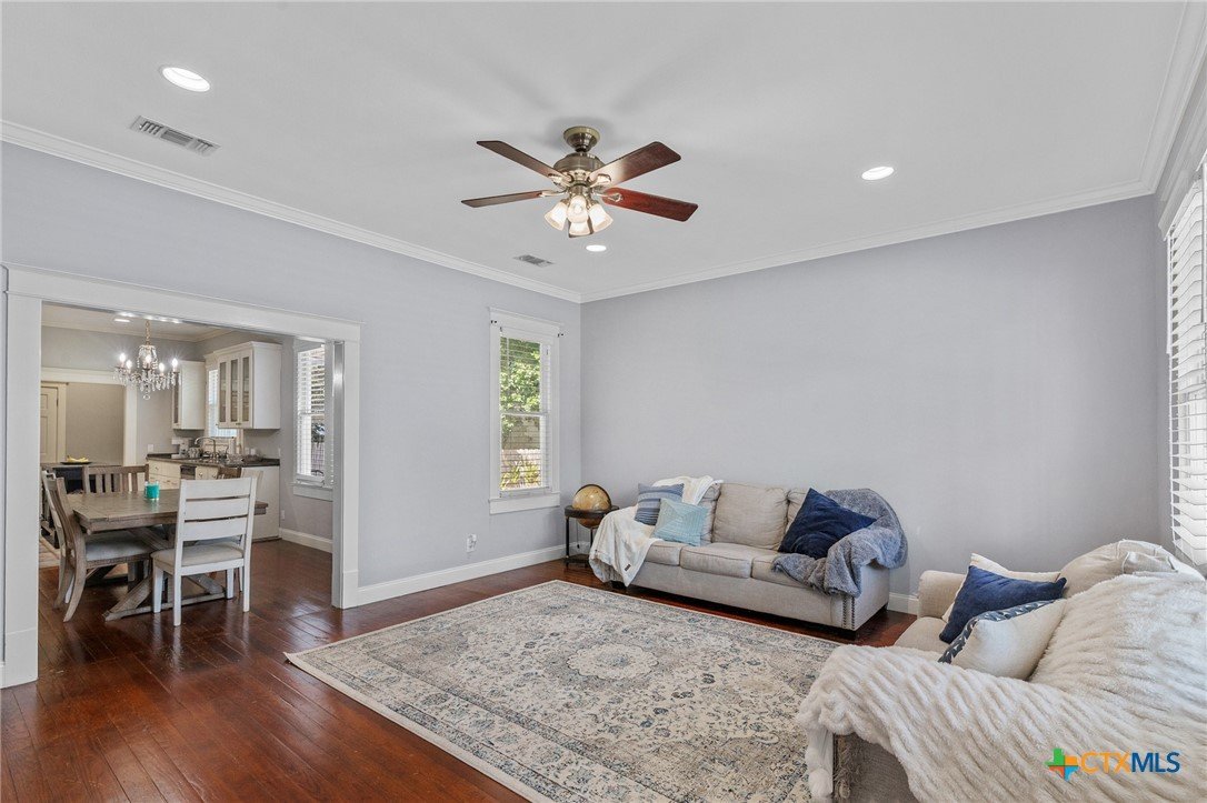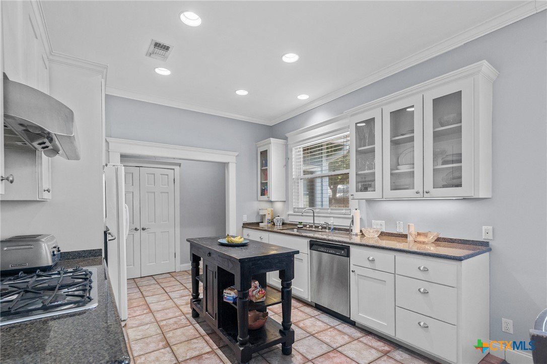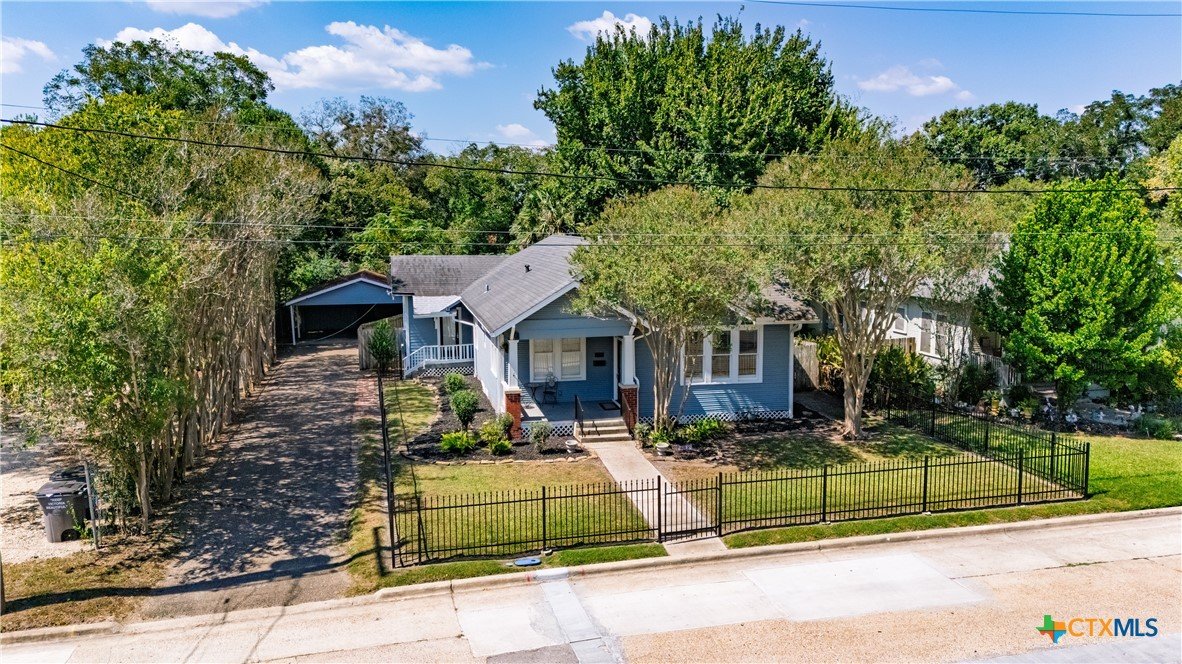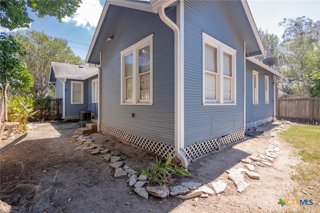 The George De Villeneuve House, A Piece of Victoria History, Beautifully Restored. Winner of the 2006 Victoria Preservation Restoration Award, this remarkable 4 bedroom, 2 bath Victorian home perfectly blends the charm and craftsmanship of Old Victoria with the modern comforts of today. Step inside and be welcomed by high ceilings, crown molding, recessed lighting, and a seamless mix of hardwood and tile floors throughout. The spacious kitchen is a dream, featuring granite countertops, custom cabinetry, and stainless steel appliances. The primary suite includes its own private door to the outdoors and a spa inspired bath with a floor to ceiling tiled walk-in shower. The guest bath features a relaxing jetted tub, adding a touch of luxury for family and visitors alike. Outside, you’ll find a long, shaded driveway, a two car carport with storage, and a completely fenced backyard offering privacy and plenty of space for gatherings. The exterior of the home has been freshly repainted, and mature trees line the property, giving it that timeless Southern charm. Recent updates include a brand new HVAC system, giving buyers peace of mind for years to come. Located in the heart of Old Victoria, this home sits among other beautifully maintained historic properties, just minutes from downtown shops, dining, and the vibrant cultural district. Where history meets modern living, The George De Villeneuve House is a timeless Victoria treasure that beautifully blends past and present.