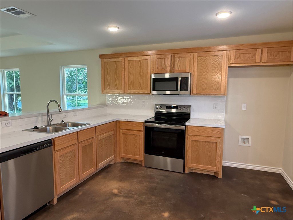 Welcome home! This new built home offers 1250 square feet with 3 bedrooms, 2 bathrooms and a one car garage. The home welcomes you with stained concrete floors throughout, custom cabinets, storage, split floor plan, pantry and natural light. Enjoy the outdoor living space that offers a privacy fence and a covered patio to enjoy with entertaining or enjoying your morning coffee. This home is in a great location that is close to the public pool and city parks.
