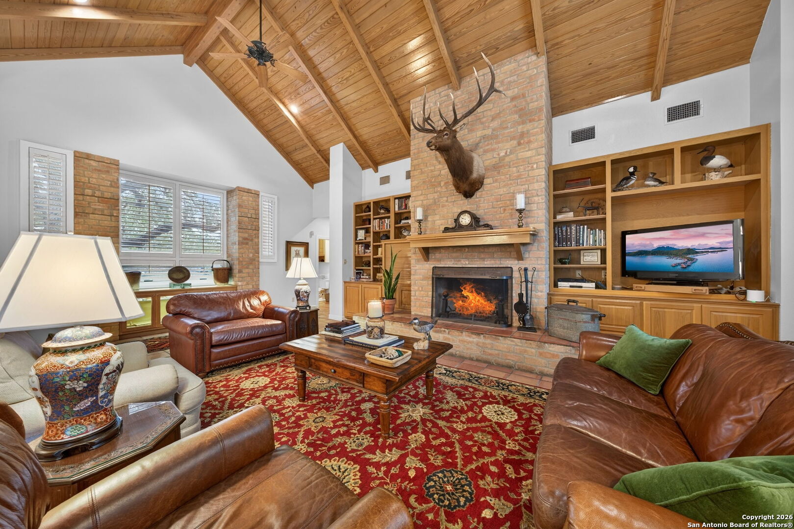 Welcome to this luxury estate nestled in the desirable Jamestown neighborhood. The property sits on an oversized 1.18 acre double lot featuring an all brick 2-story home with 4,658 sqft of refined living space. This Home Boasts vaulted and wood laid ceilings, a wood burning brick centerpiece fireplace, plantation shutters, and extensive custom cabinetry throughout. The Chef's kitchen offers stainless steel Wolf appliances and induction cooktop. There are 4 bedrooms with 3 full and 2 half baths. Huge walk-in and multiples closets situated at seemingly every turn. Oversized attached game room with custom showcase tract lighting and full service wet bar. All metal standing seam roof, expansive covered front and back porches with a private courtyard. Full front and back yard irrigation with St. Augustine grass. Resort Style Keith Zars pool and spa with custom rock water features/trimming. This property shows exceptional craftsmanship and outdoor living/entertainment. Come see how this house can become your home.