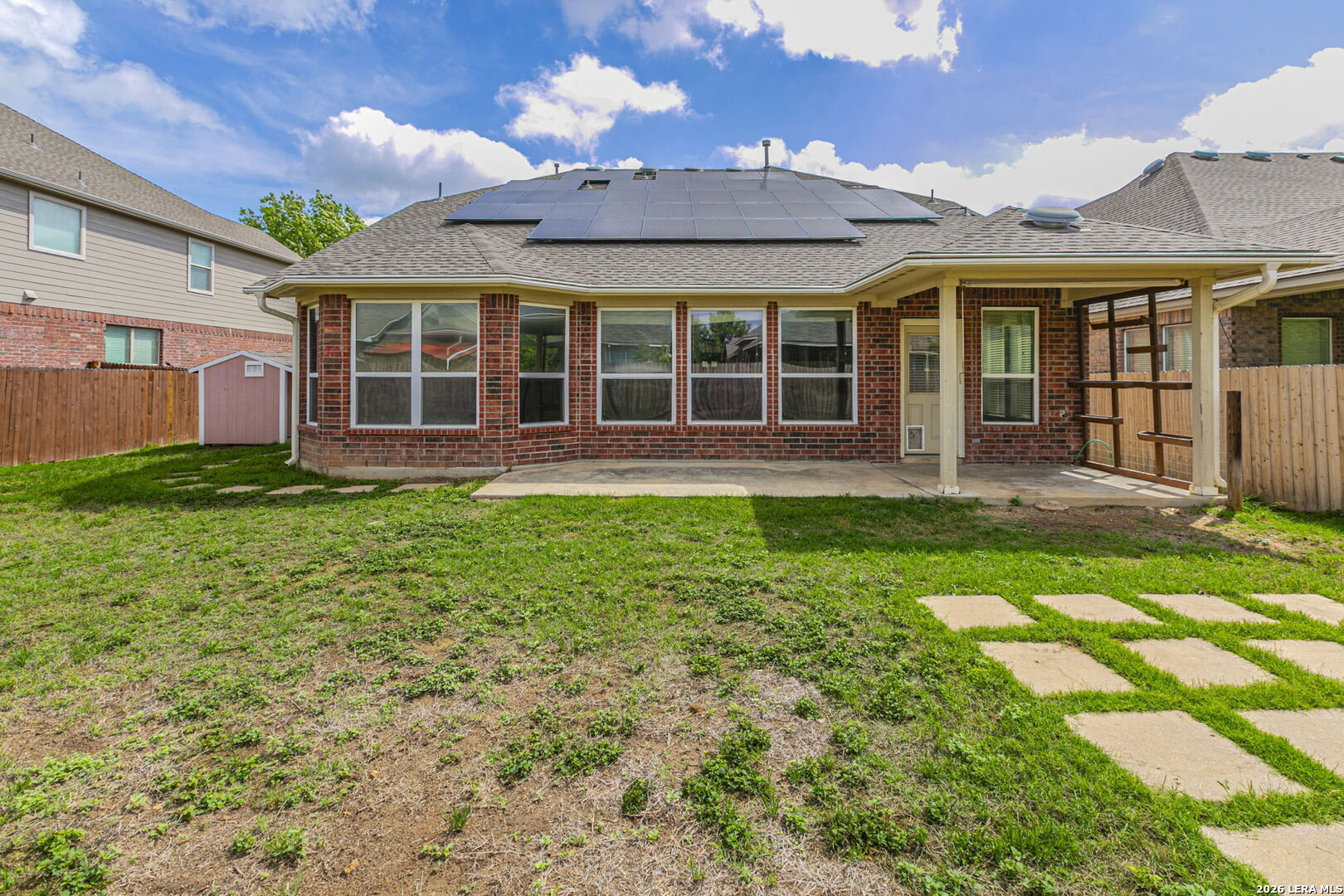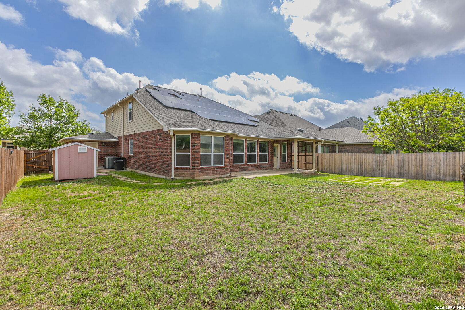 Get that WOW factor in this breathtaking all sides brick David Weekley home that offers easy commute to Lackland AFB & NSA as well as great shopping and restaurants on 151. This open concept home showcases your elegant crown molding, sleek granite counters, GAS, brushed stainless steel appliances, dramatic rod iron stair, tile flooring throughout the first floor! MB features dual vanities, garden tub, & shower. Solar panels installed to aid the electricity charges, an outdoor shed for lawn and garden equipment in addition to lifetime guaranteed gutters that do not required annual servicing. You'll feel like you're on vacation with a resort like pool, park with playground and walking trails!