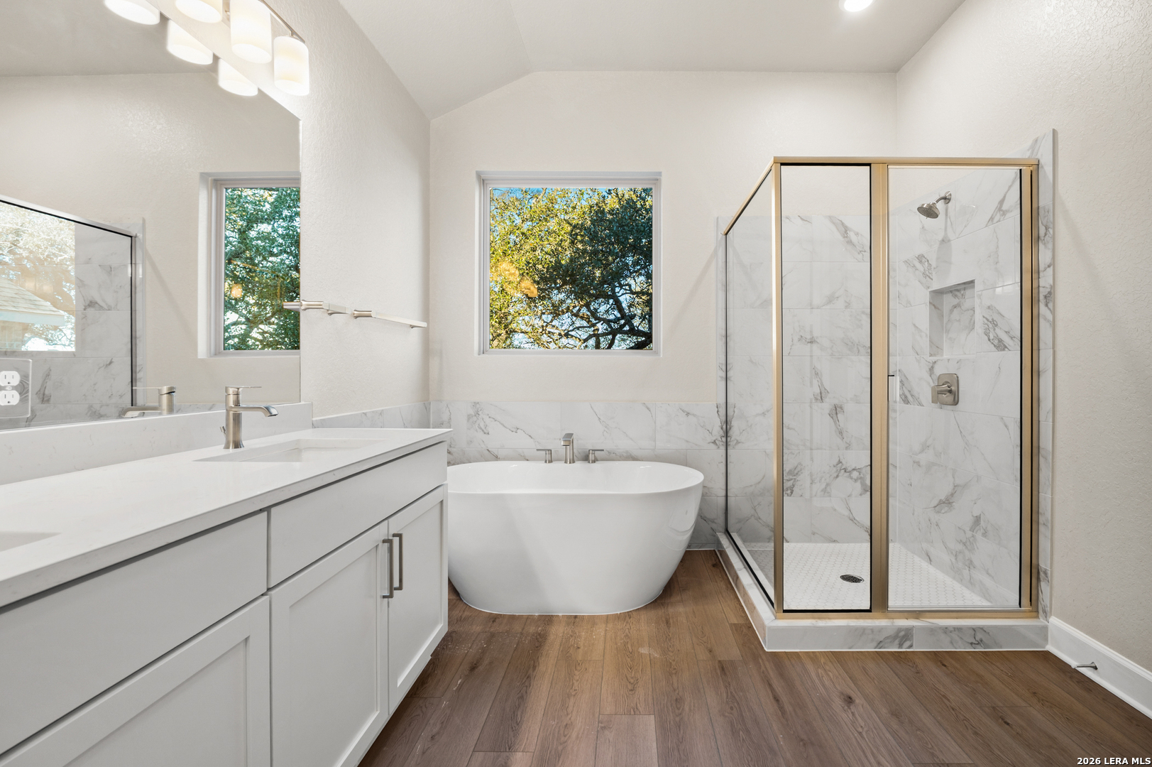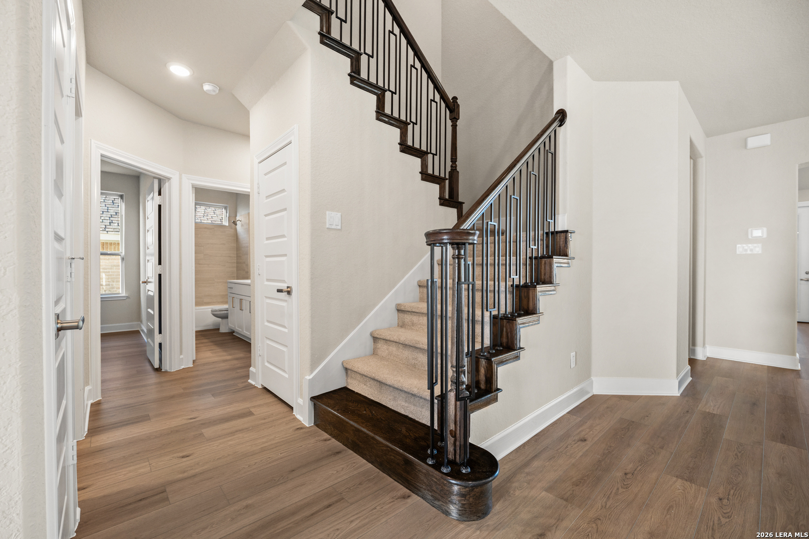 ***BUILDER OFFERING RATE BUYDOWN!! CLOSING COST PAID!!*** Welcome to this stunning 1.5-story home in the highly sought-after Ventana community off Highway 46 in Bulverde. Thoughtfully designed, this residence offers the convenience of most living spaces on the main floor with the flexibility of a full suite upstairs. The main level features three spacious bedrooms and two full baths, along with a separate dining room, butler's pantry, and a massive kitchen island that is perfect for entertaining. Luxury vinyl plank floors, soaring ceilings, and an abundance of natural light create a warm, inviting atmosphere throughout. The chef's kitchen with gas cooking opens seamlessly to the dining and living areas, making gatherings effortless. Upstairs, a private bedroom, full bathroom, and game room provide the ideal setup for guests, multigenerational living, or a dedicated play or work space. The primary suite is designed for relaxation, complete with a spa-like bath featuring a freestanding soaking tub, separate shower, and generous walk-in closet. Outdoor living is just as impressive with a covered patio that extends the entertaining space or offers a quiet retreat after a long day. From the open floor plan to the stylish finishes, this home perfectly blends comfort and elegance. Schedule your showing today and experience all this beautiful property has to offer. Disclaimer: This home is currently under construction. Photos shown are from a previous listing and for illustrative purposes only.